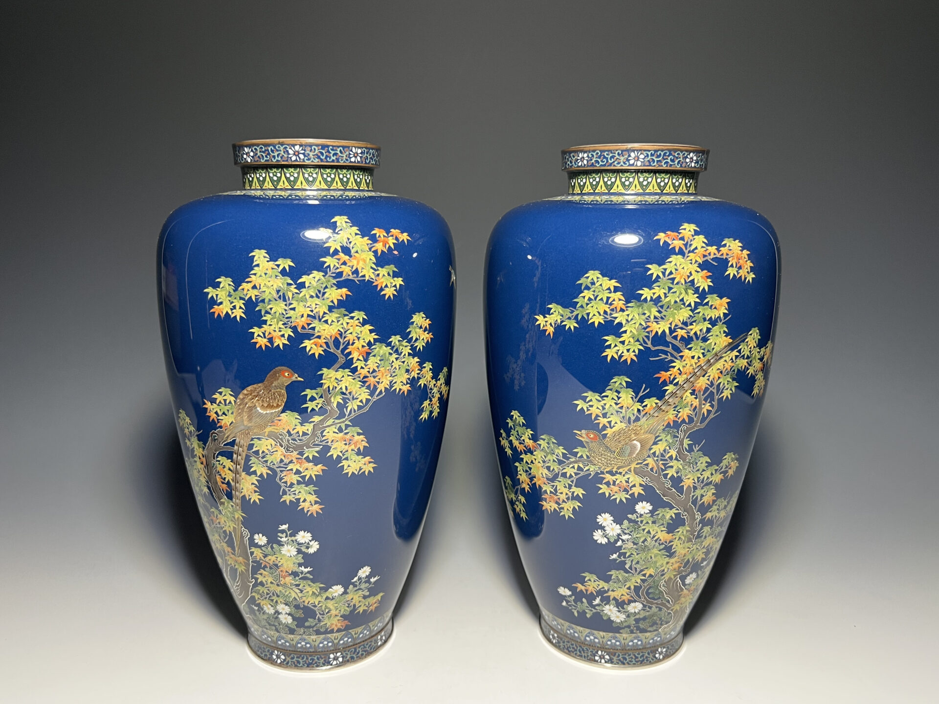 C011 林小伝治造 花鳥図花瓶一対【SOLD】