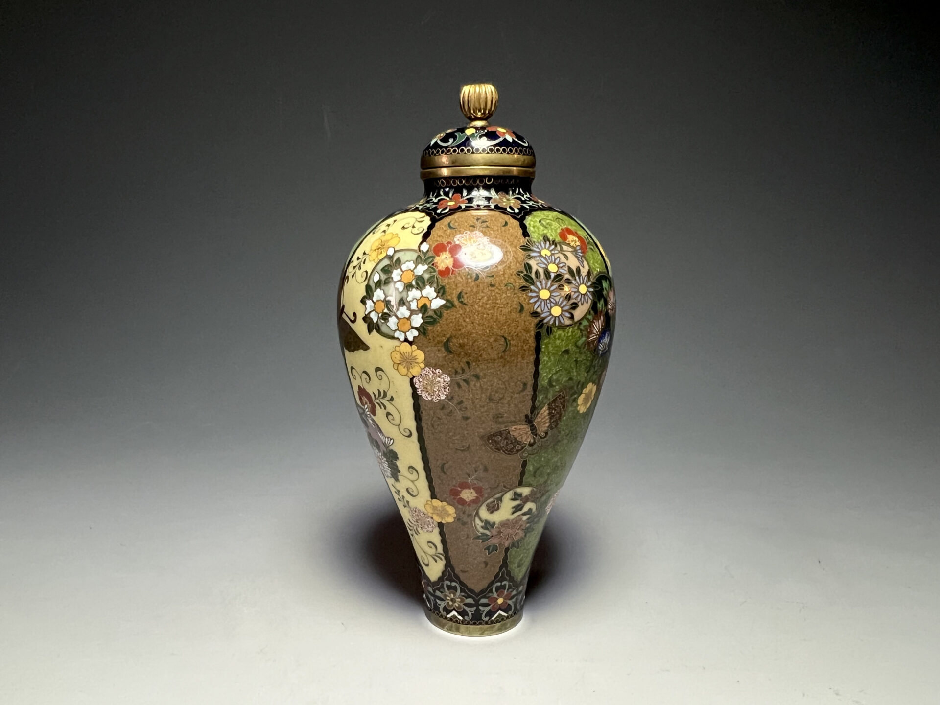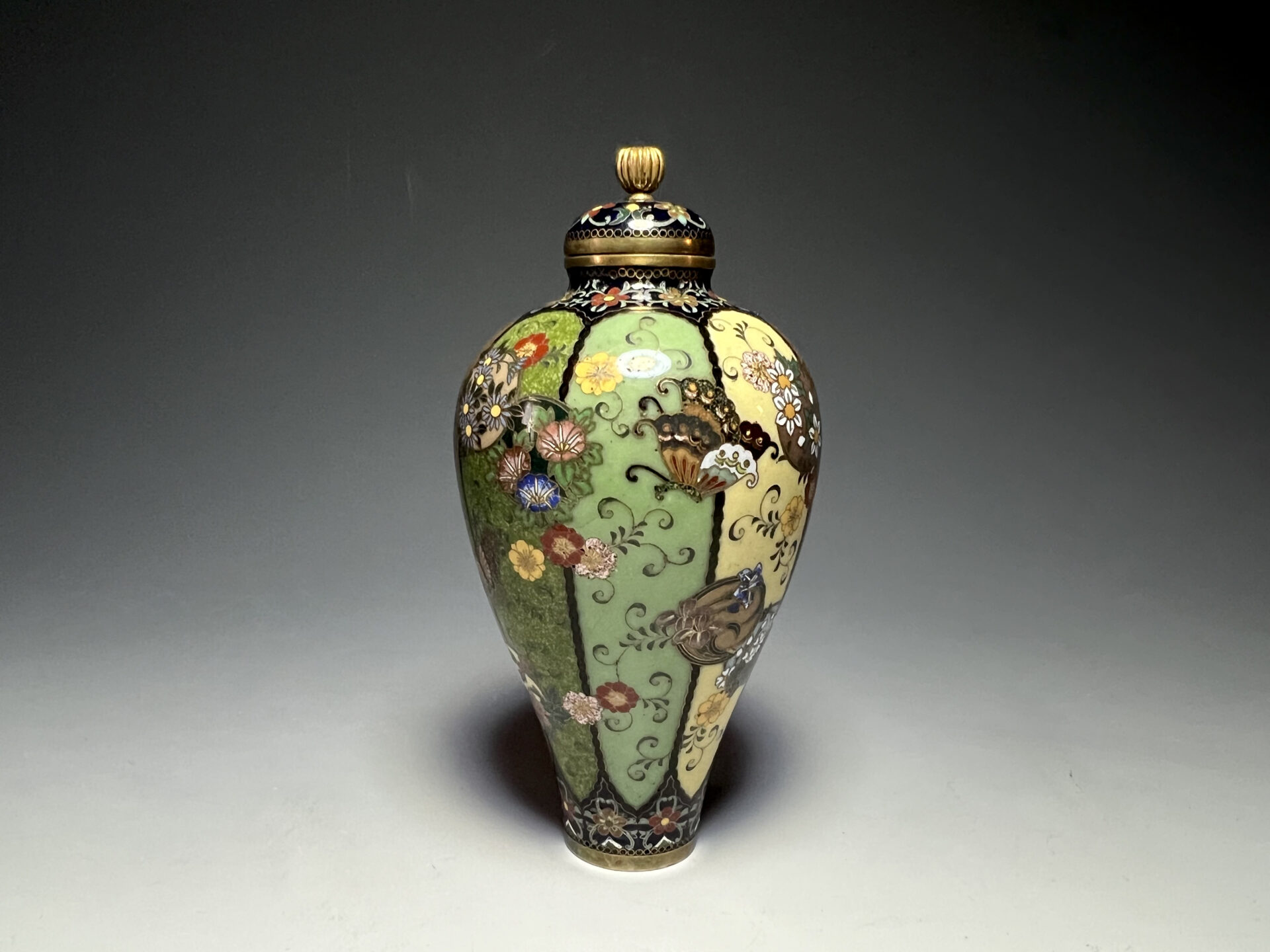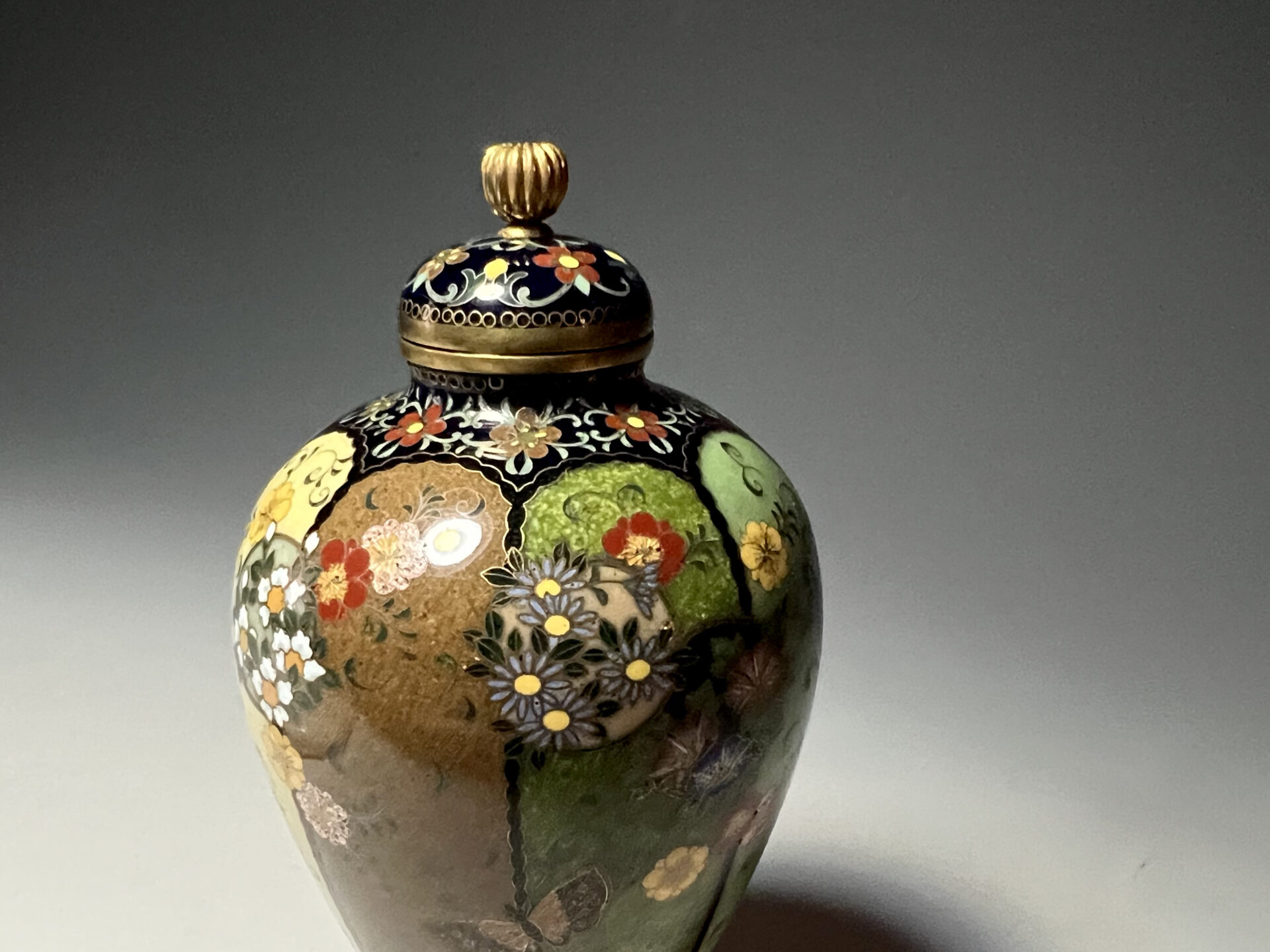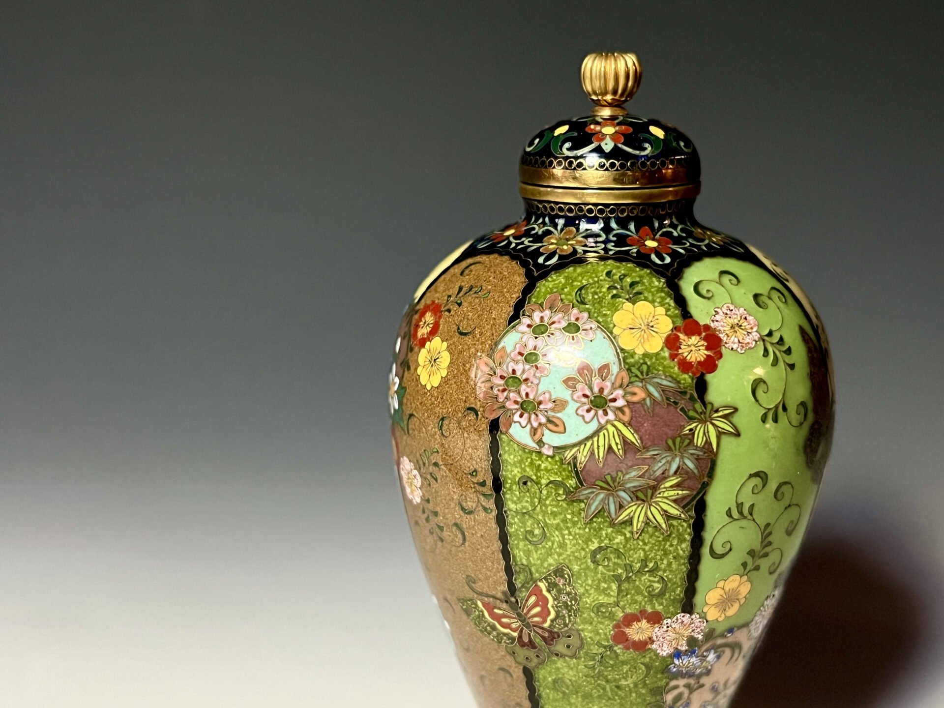 C015 並河靖之花蝶文蓋付壷【SOLD】