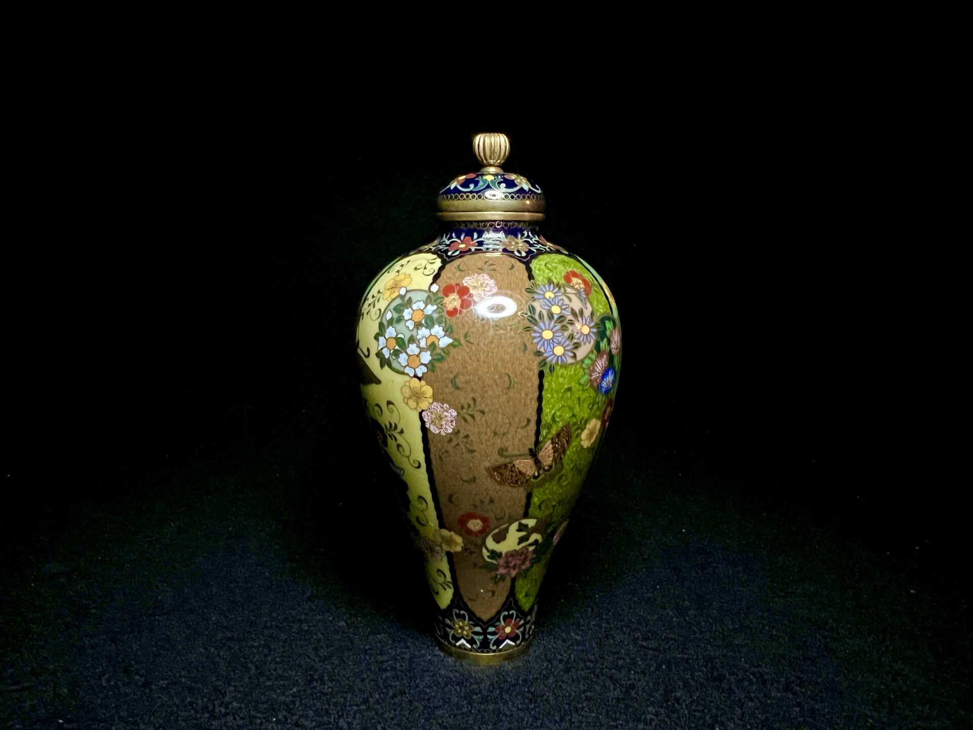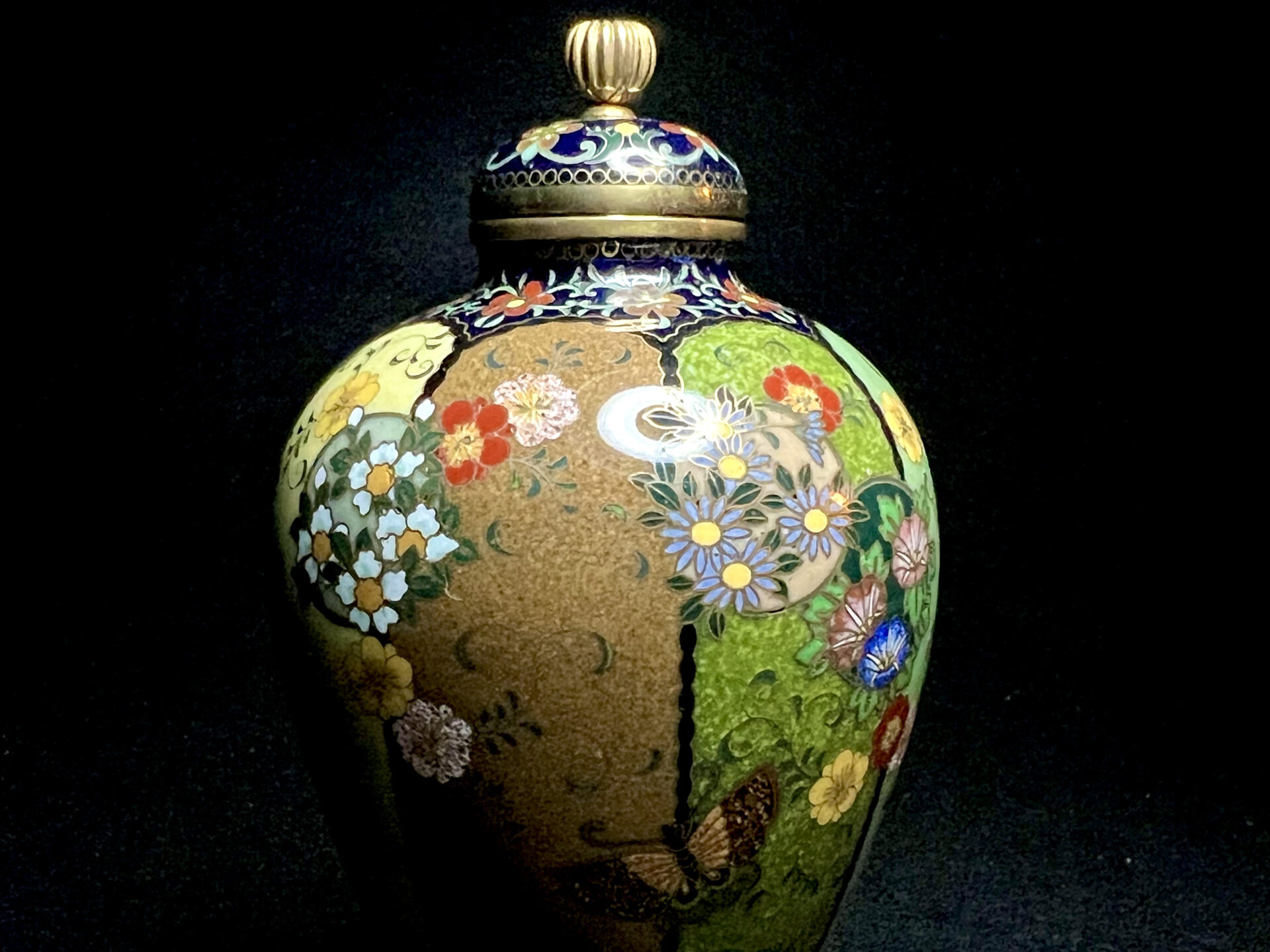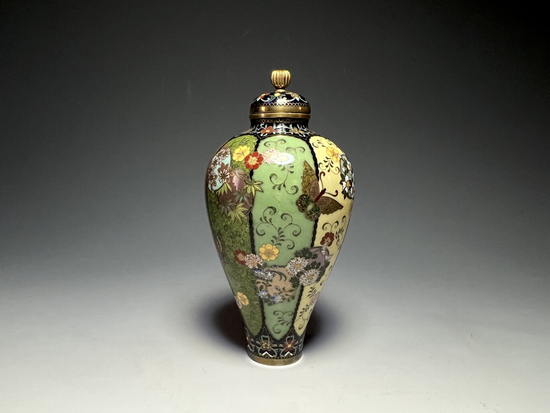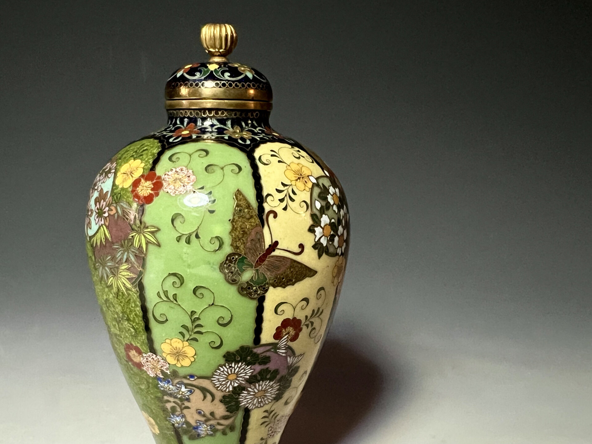 C015 並河靖之花蝶文蓋付壷【SOLD】