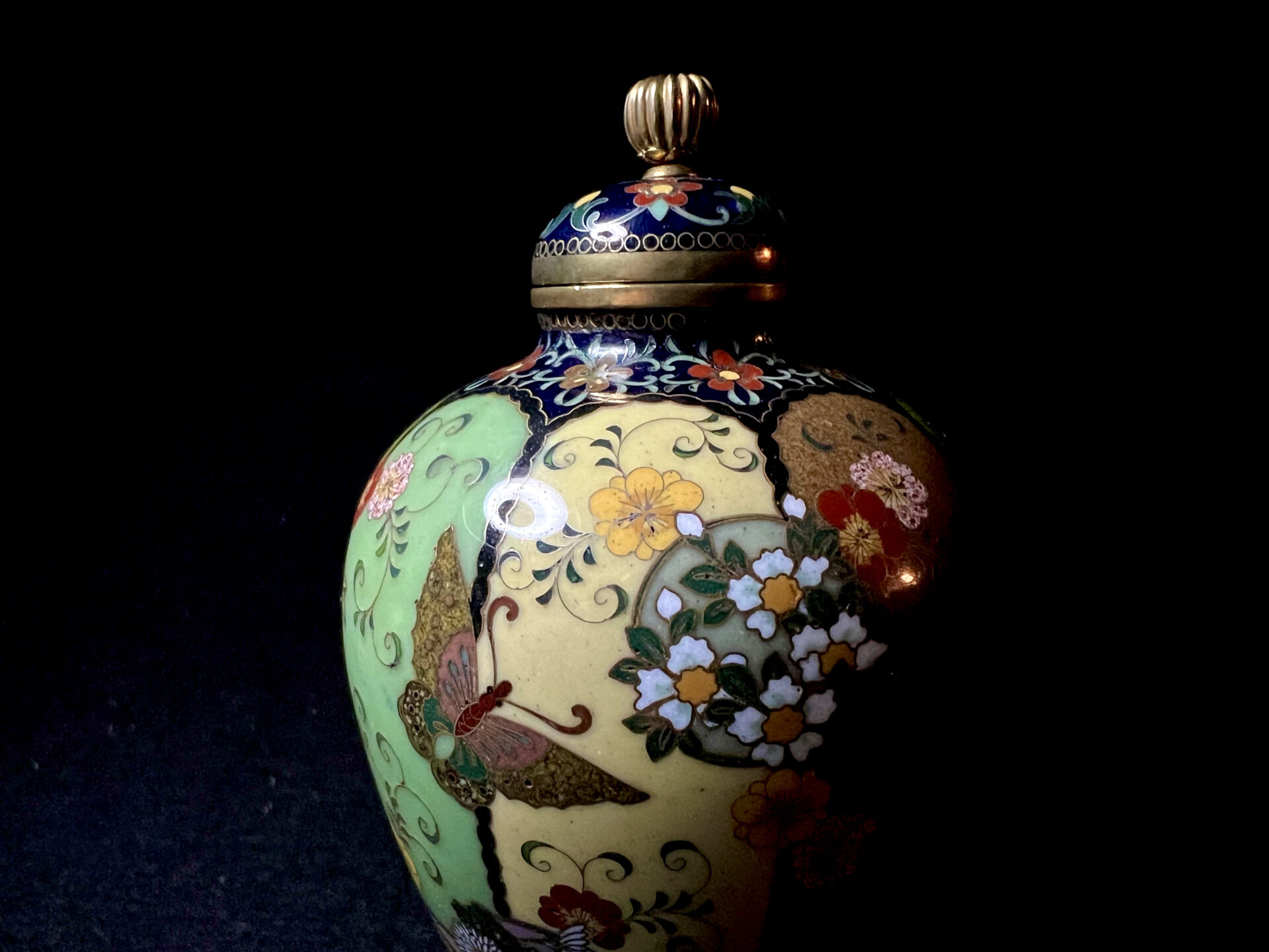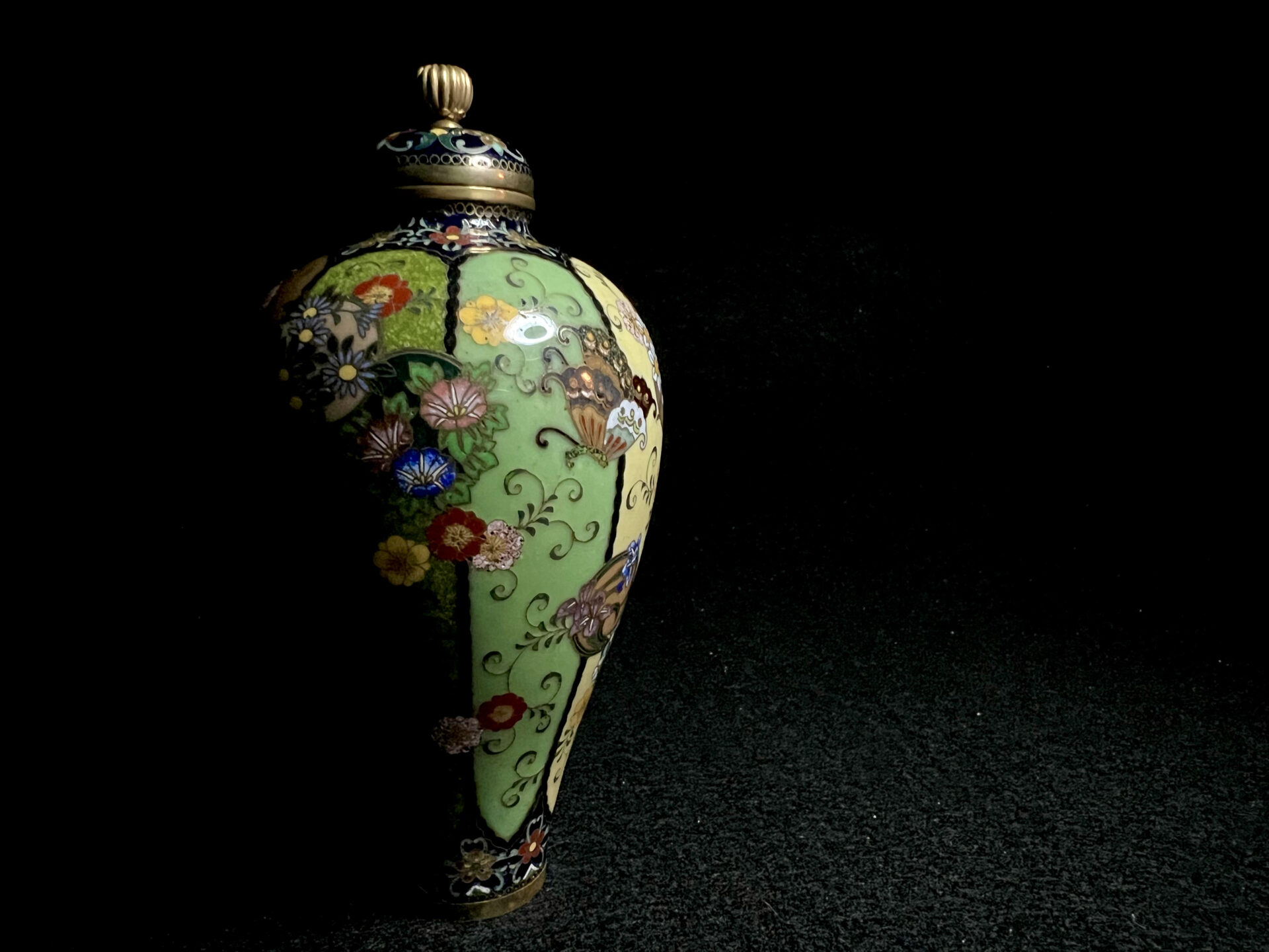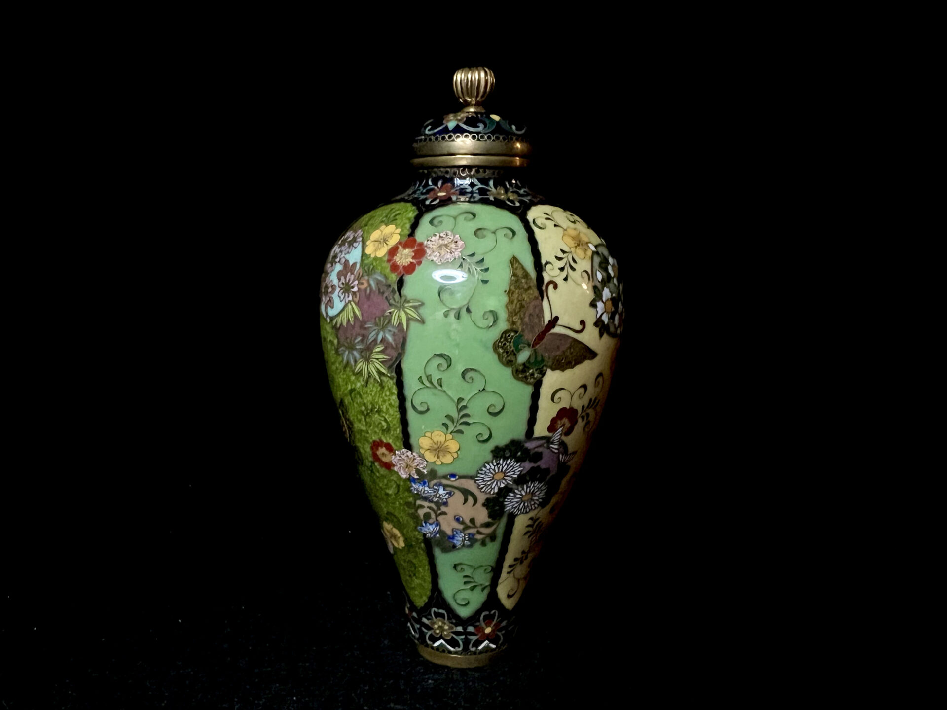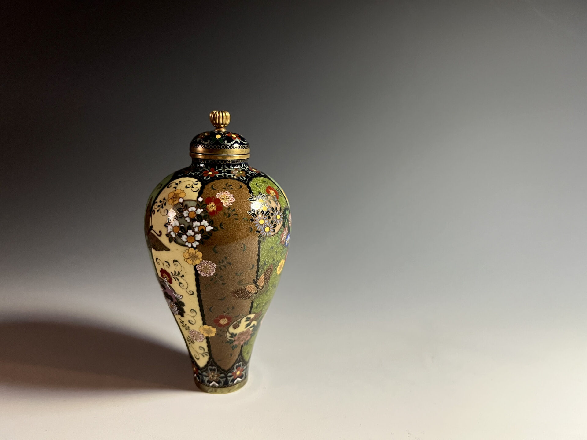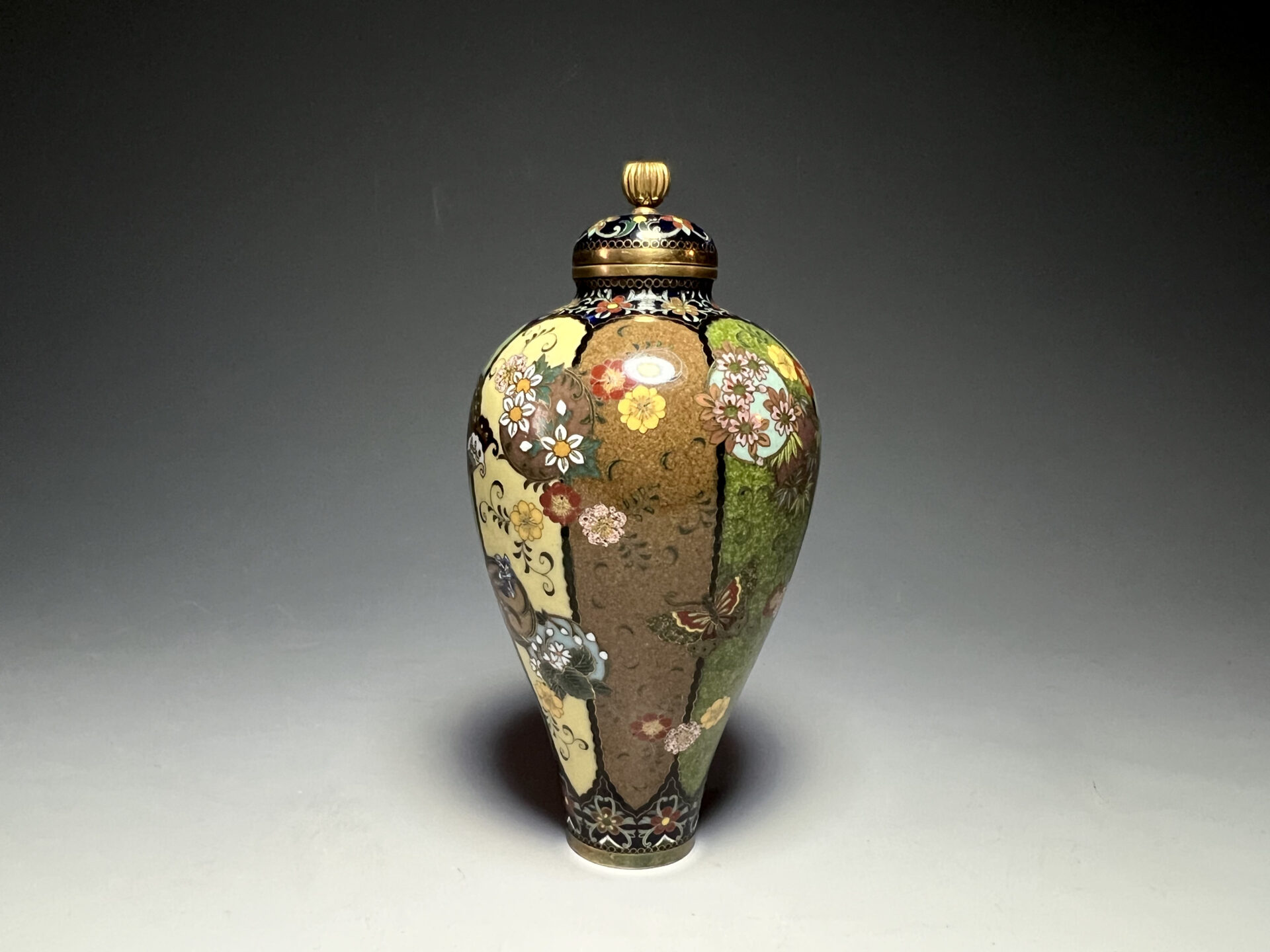 C015 並河靖之花蝶文蓋付壷【SOLD】
