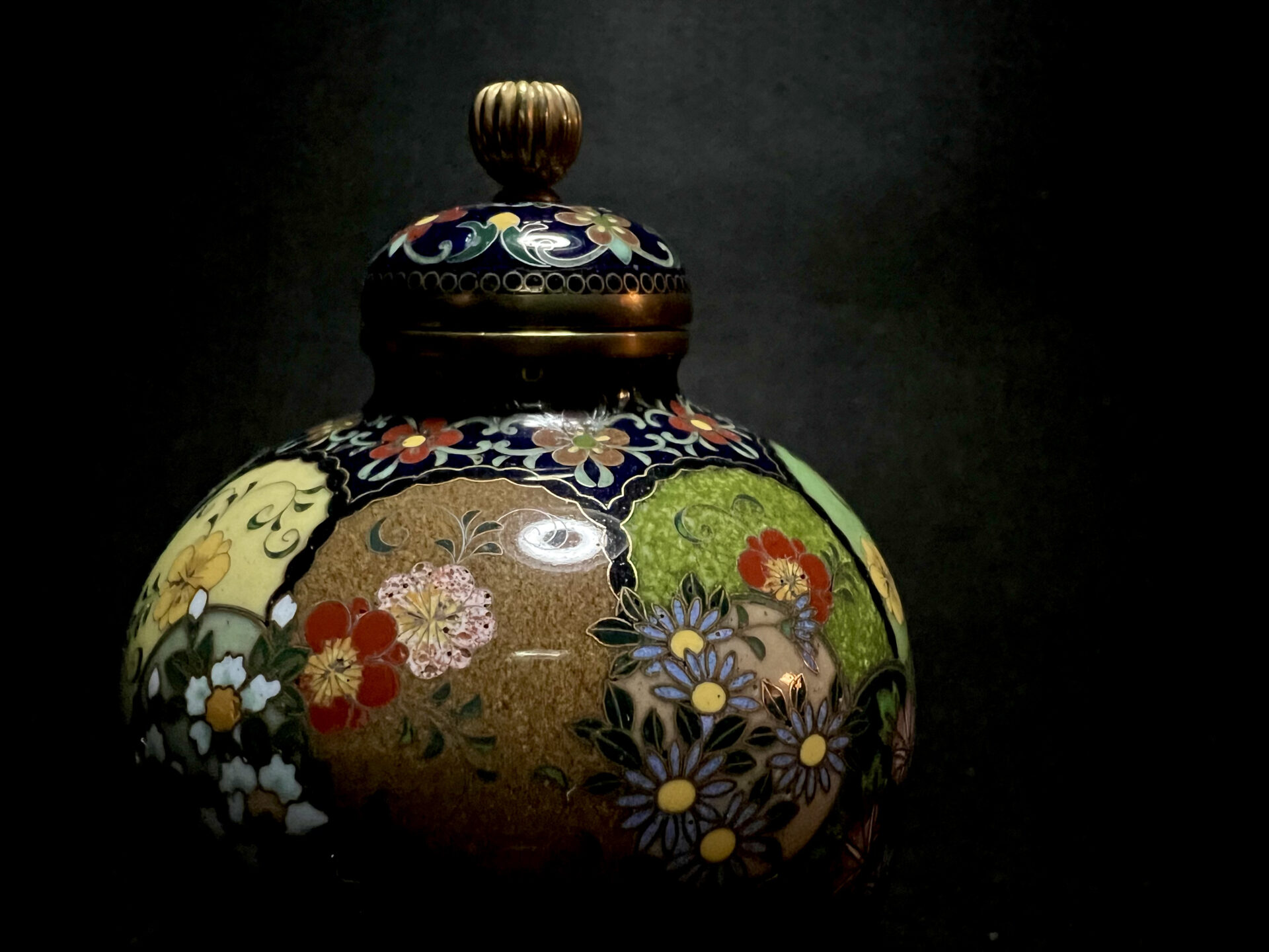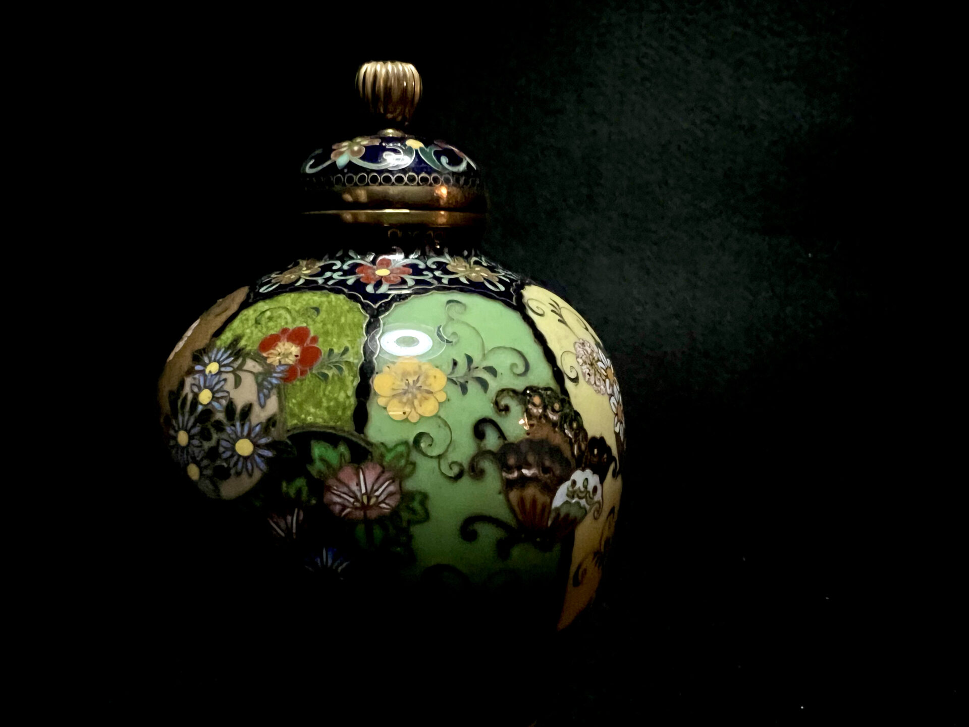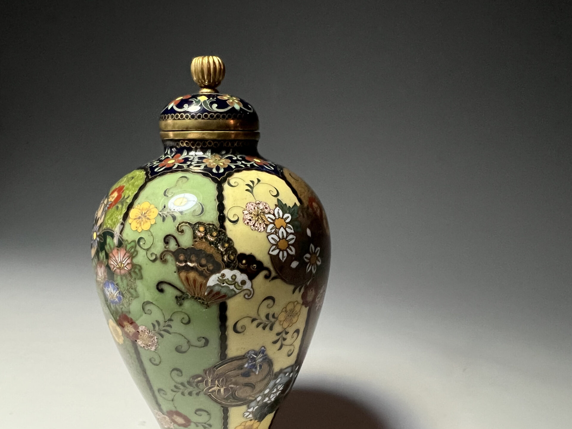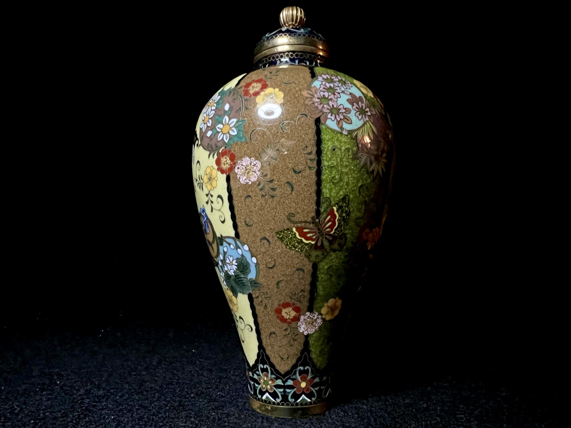 C015 並河靖之花蝶文蓋付壷【SOLD】
