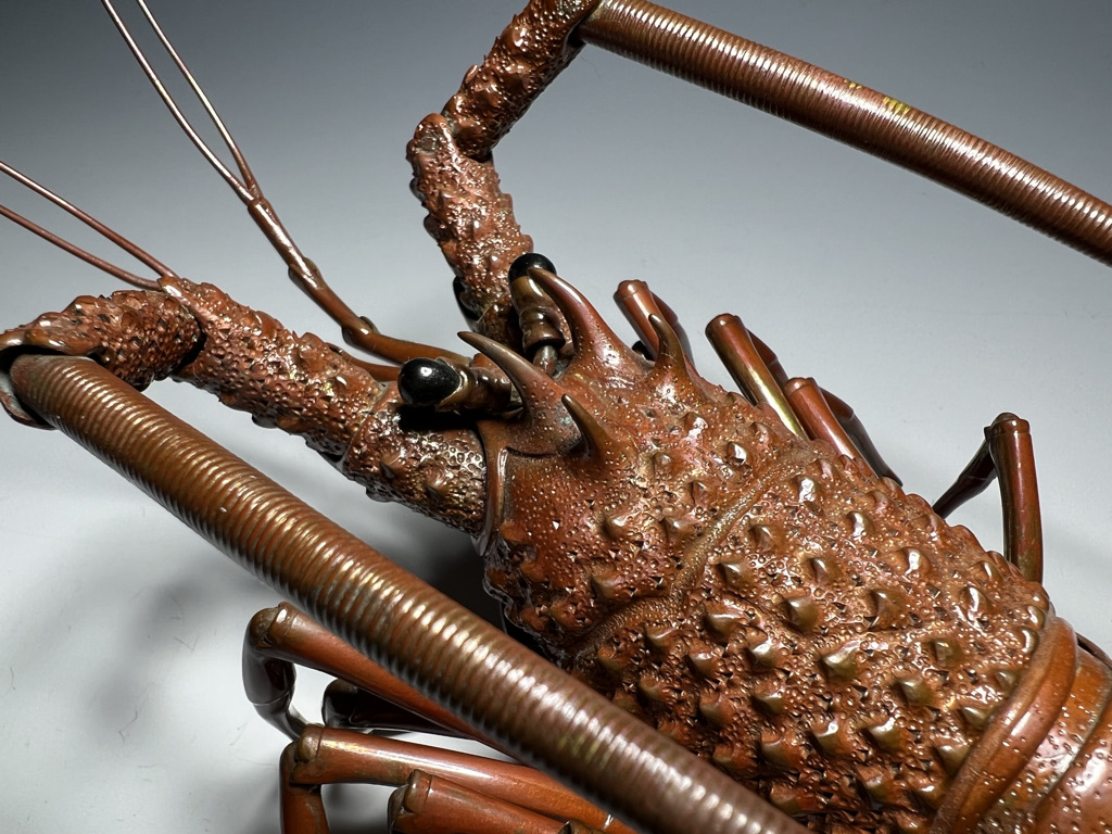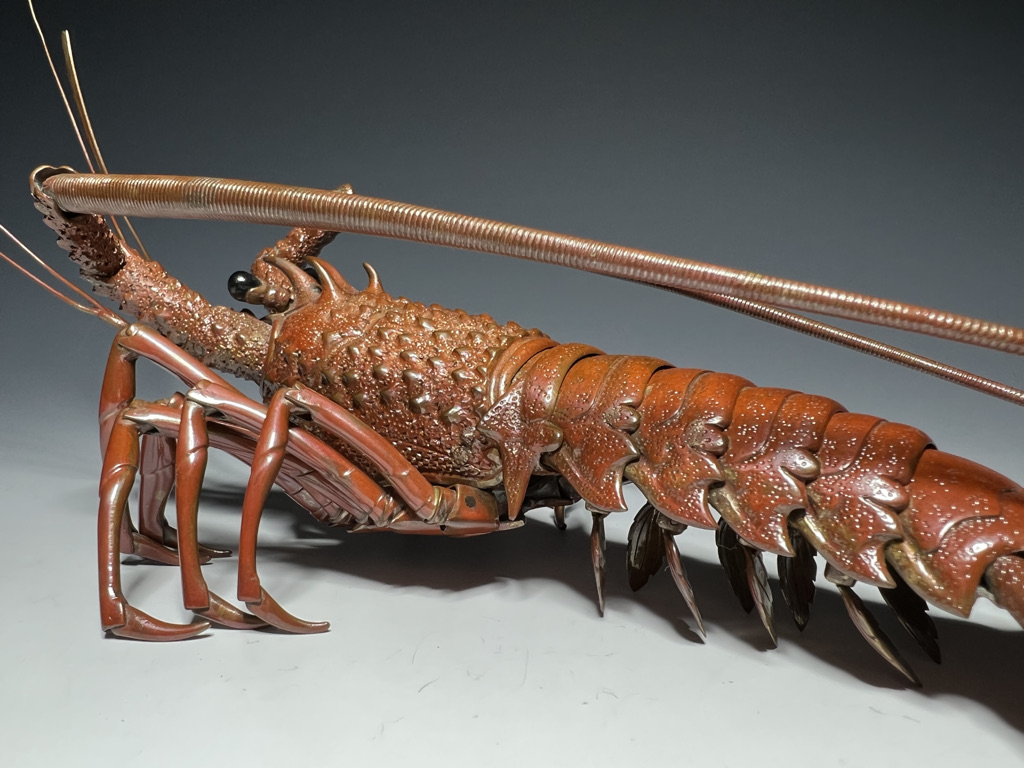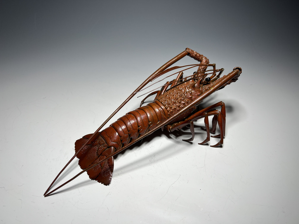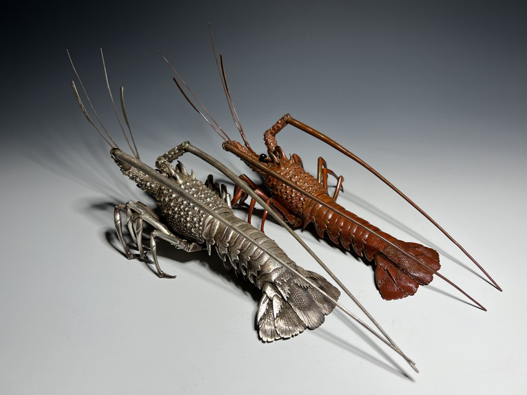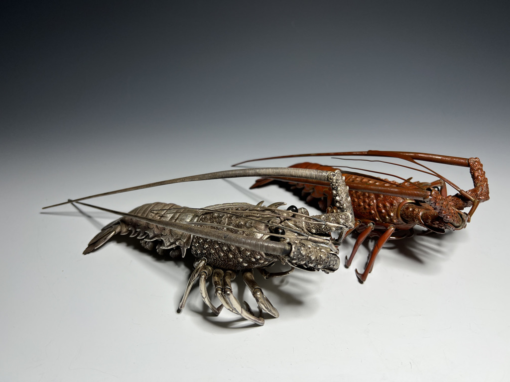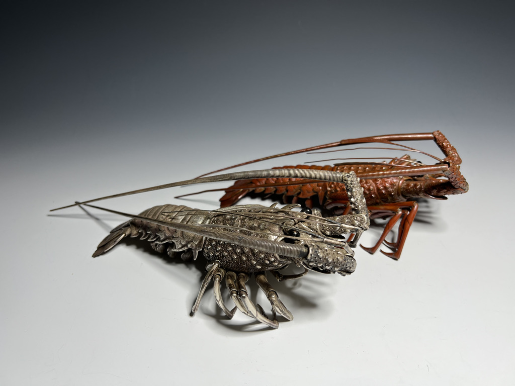 M005 高瀬好山 銀銅製伊勢海老自在置物一対 共箱【SOLD】