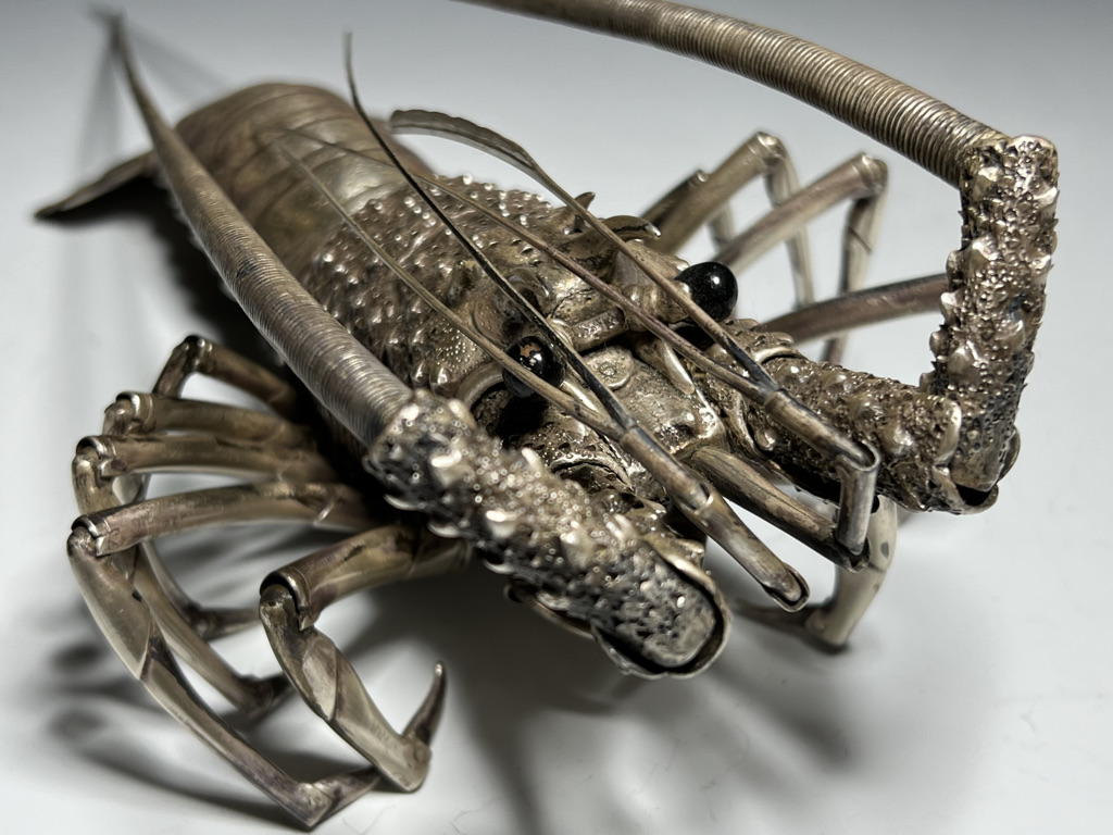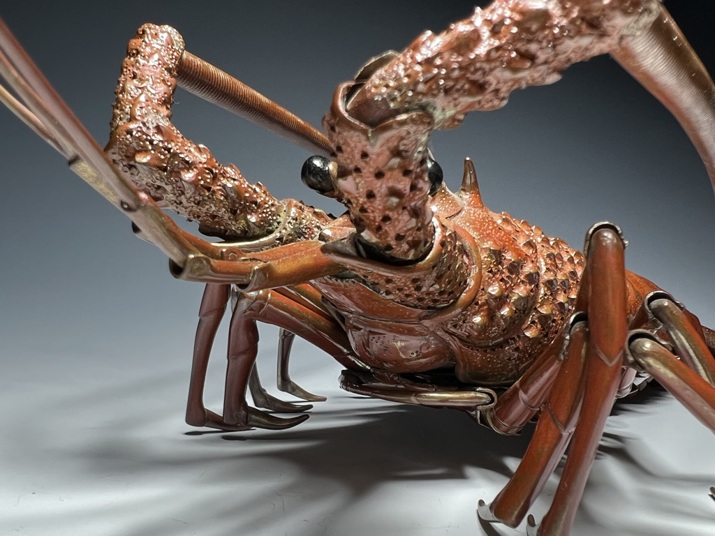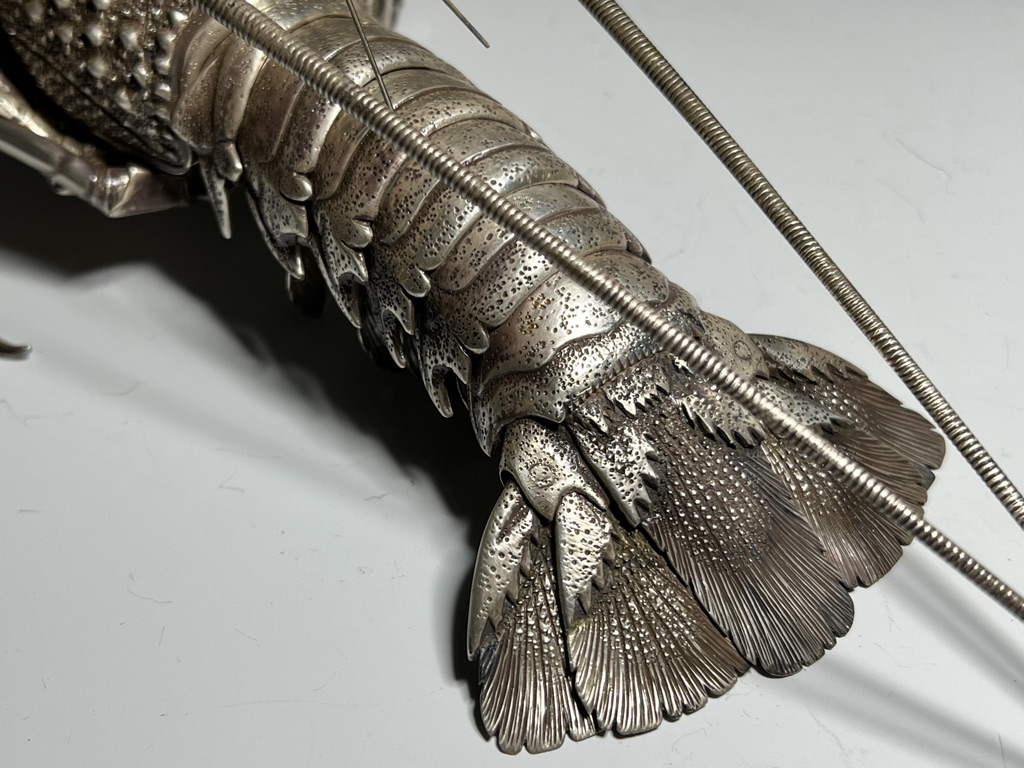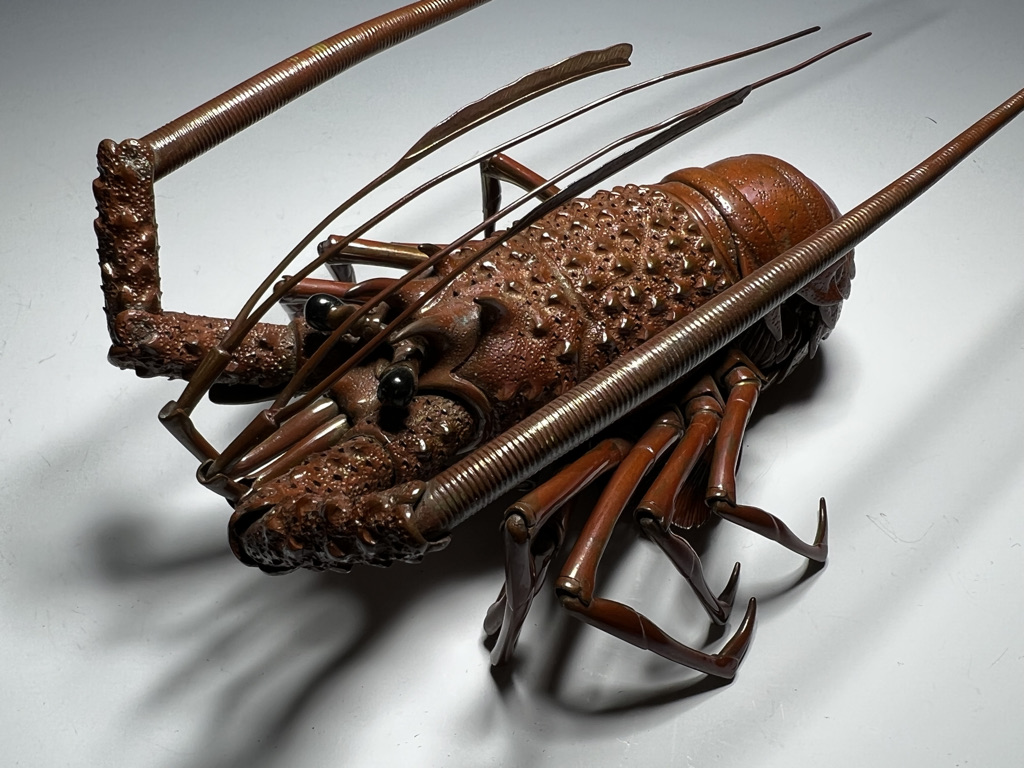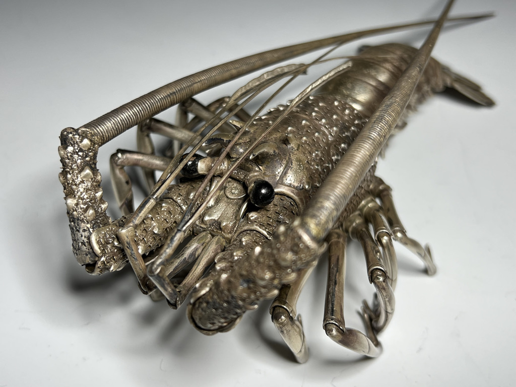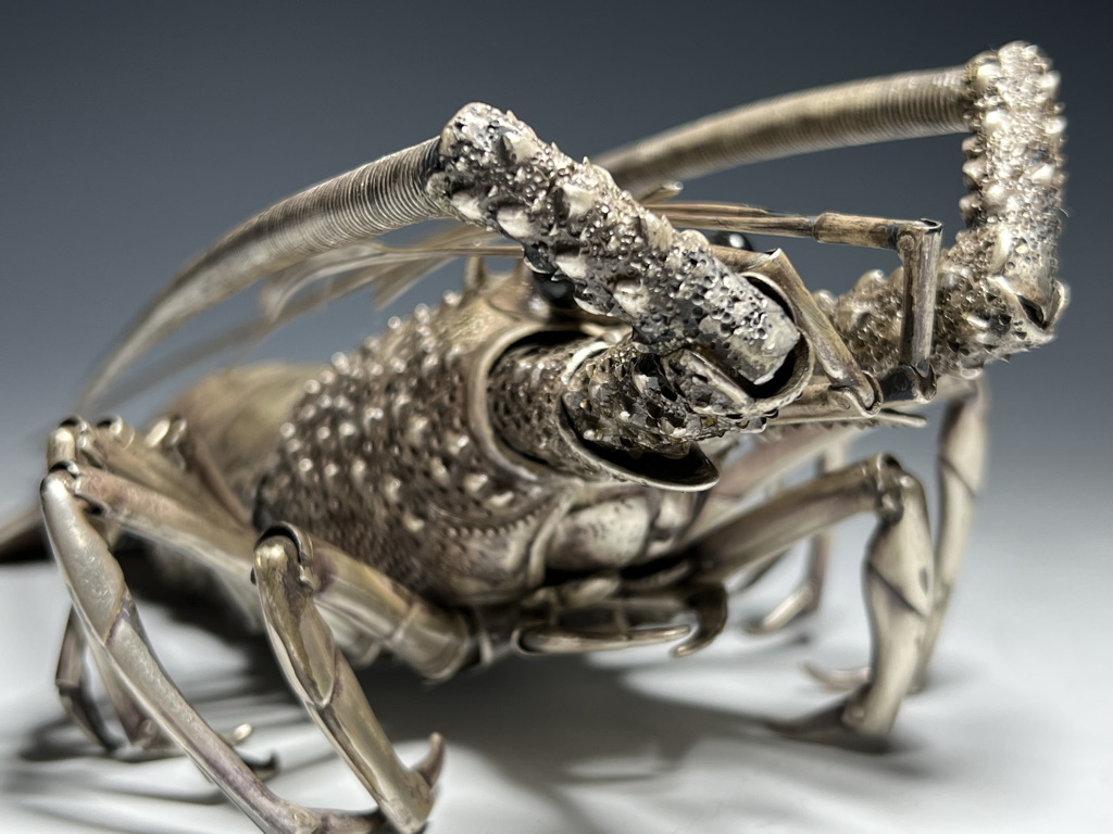 M005 高瀬好山 銀銅製伊勢海老自在置物一対 共箱【SOLD】