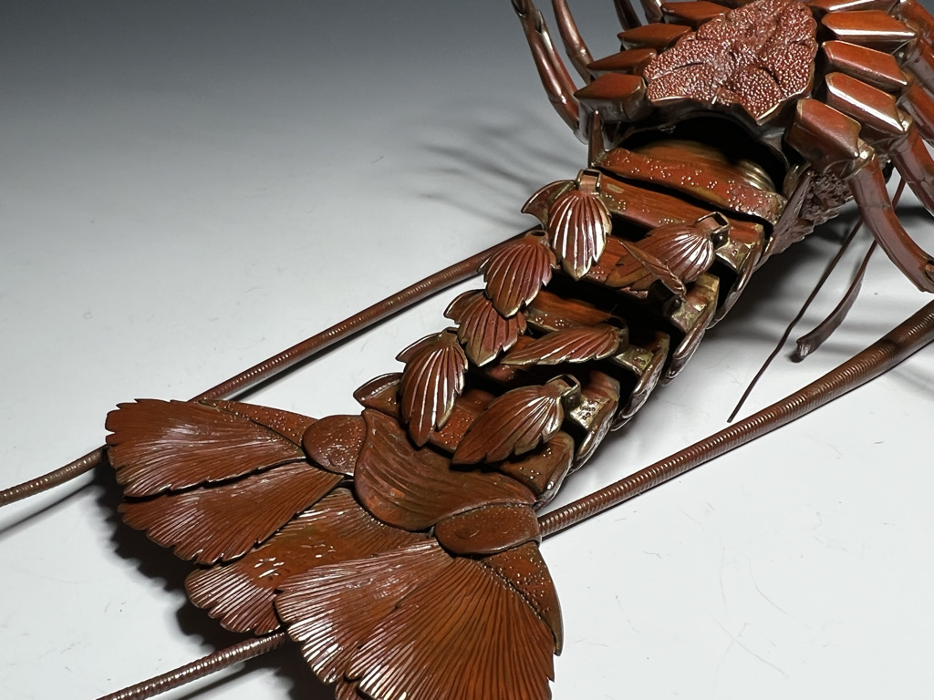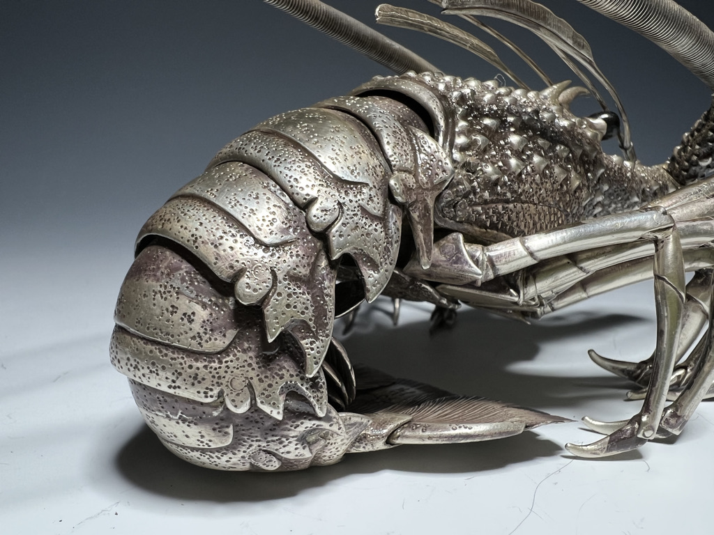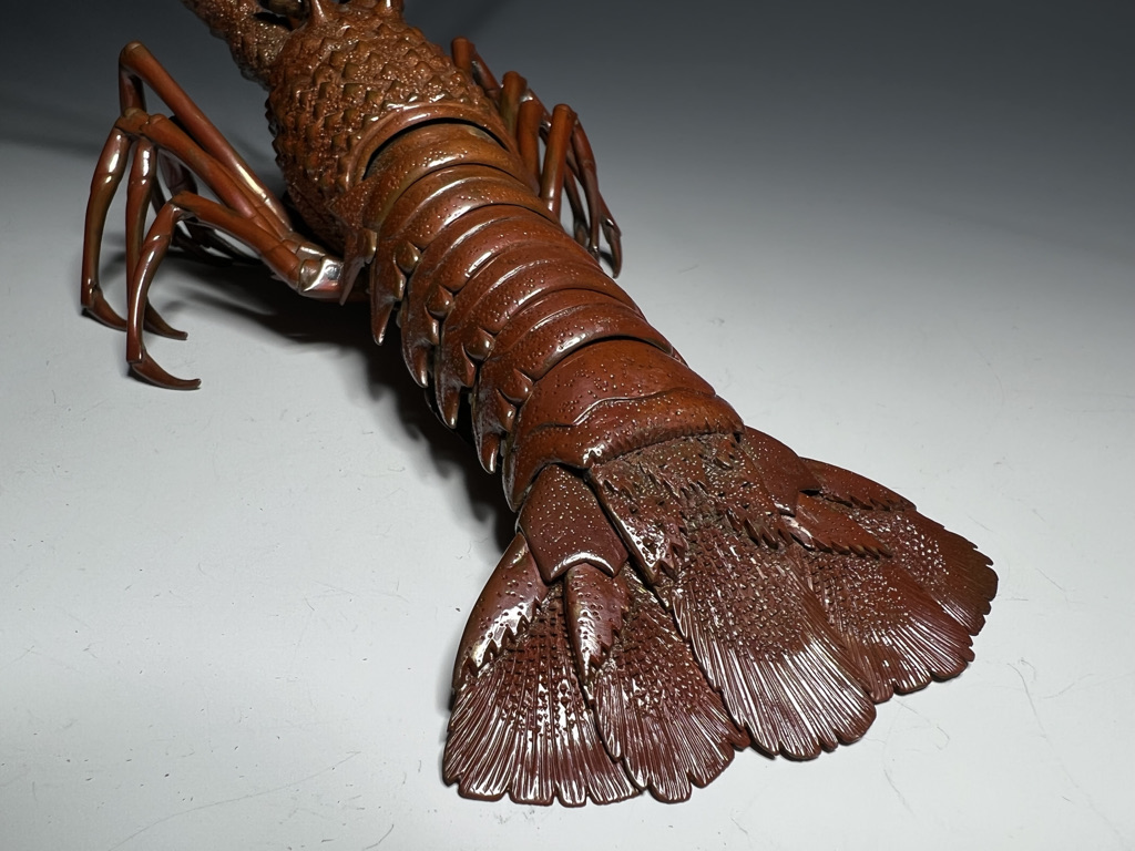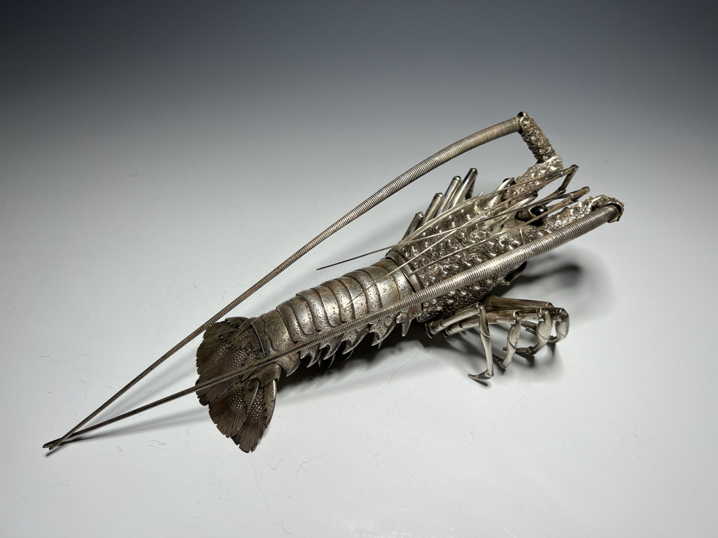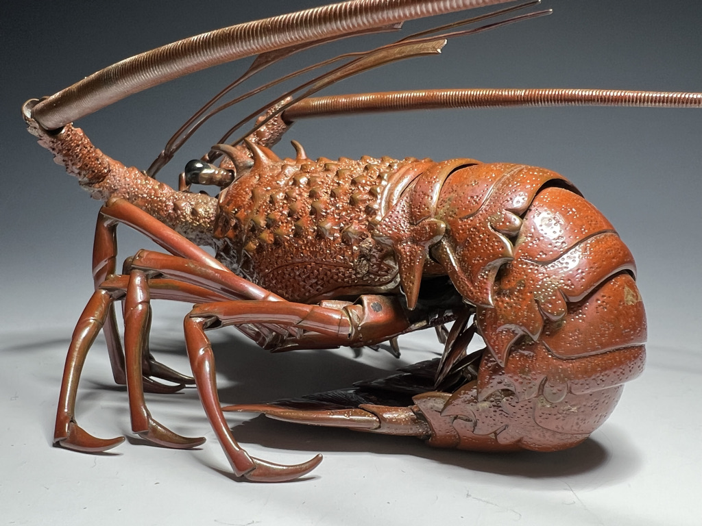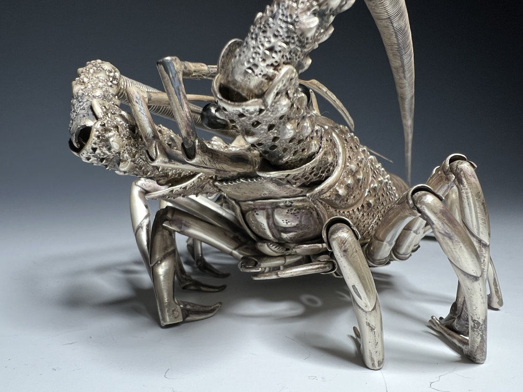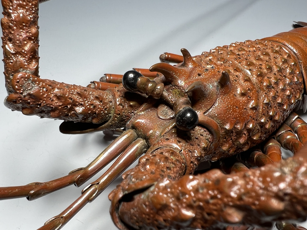 M005 高瀬好山 銀銅製伊勢海老自在置物一対 共箱【SOLD】