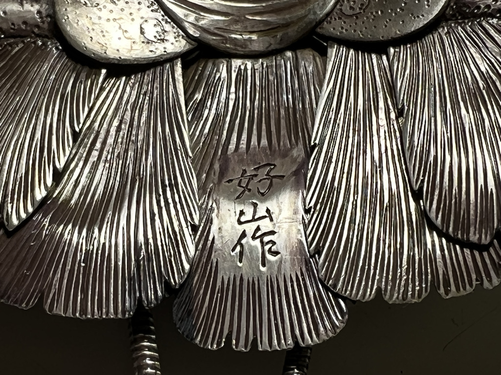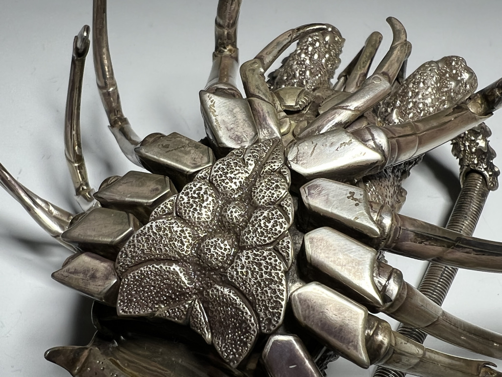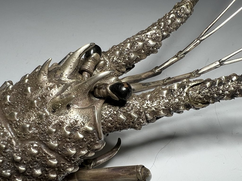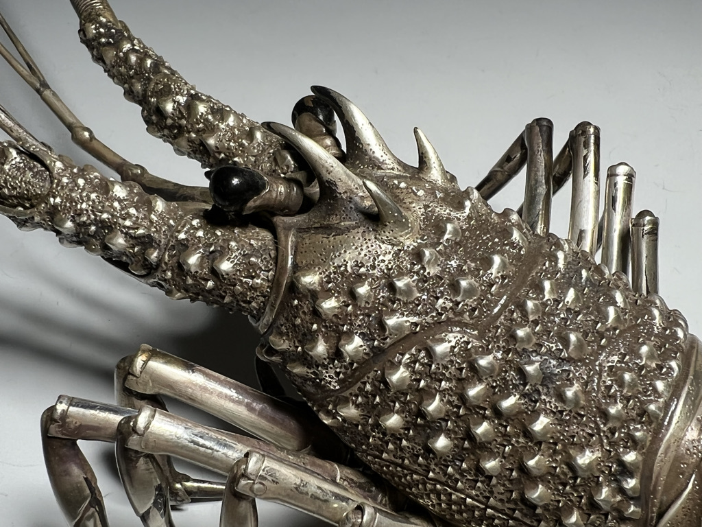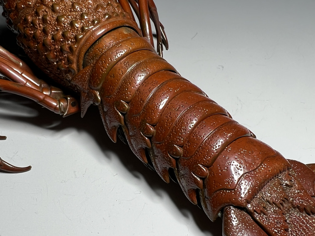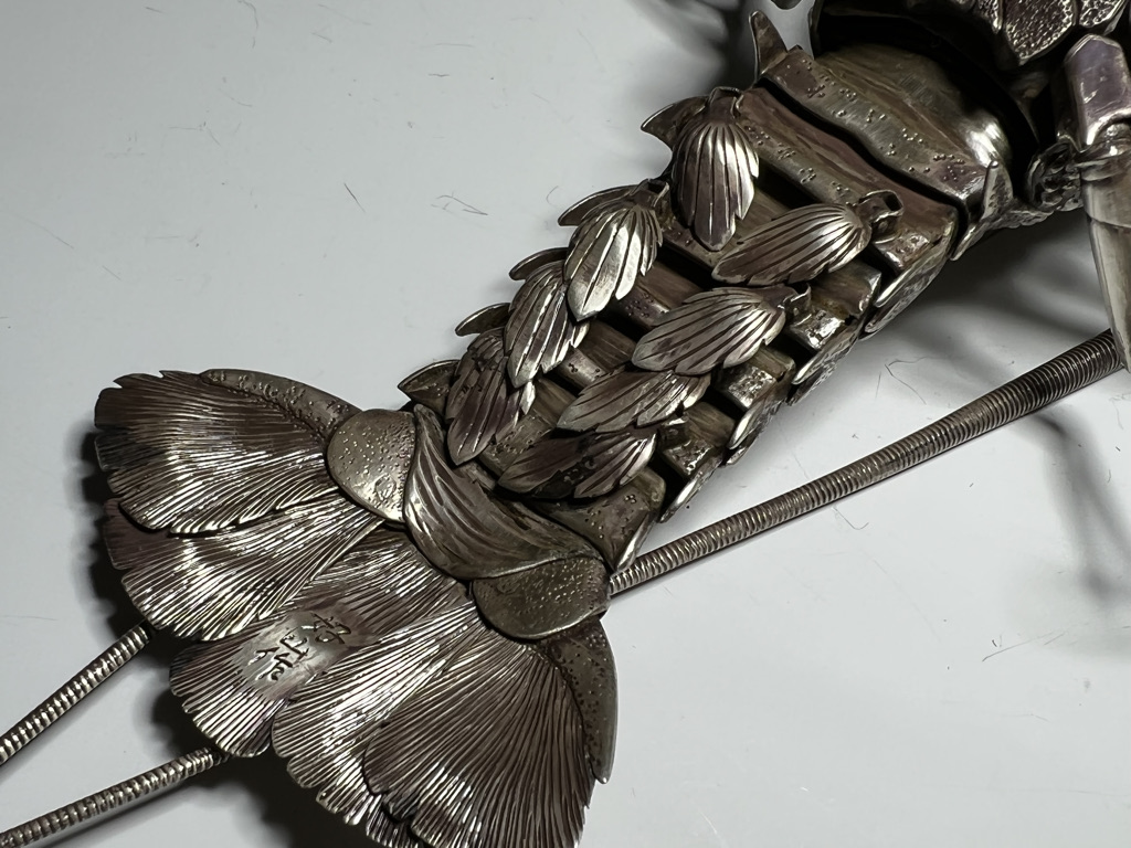 M005 高瀬好山 銀銅製伊勢海老自在置物一対 共箱【SOLD】