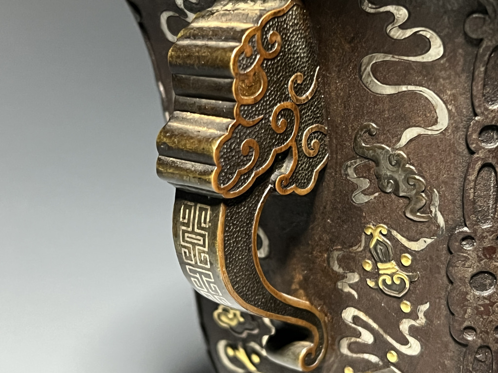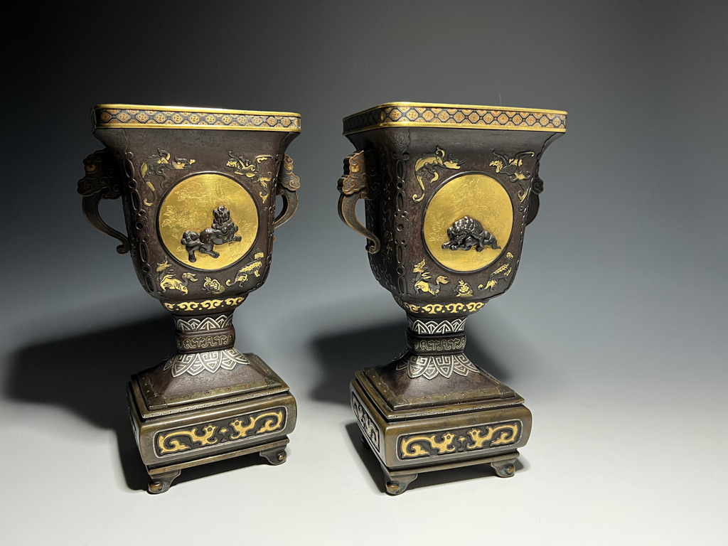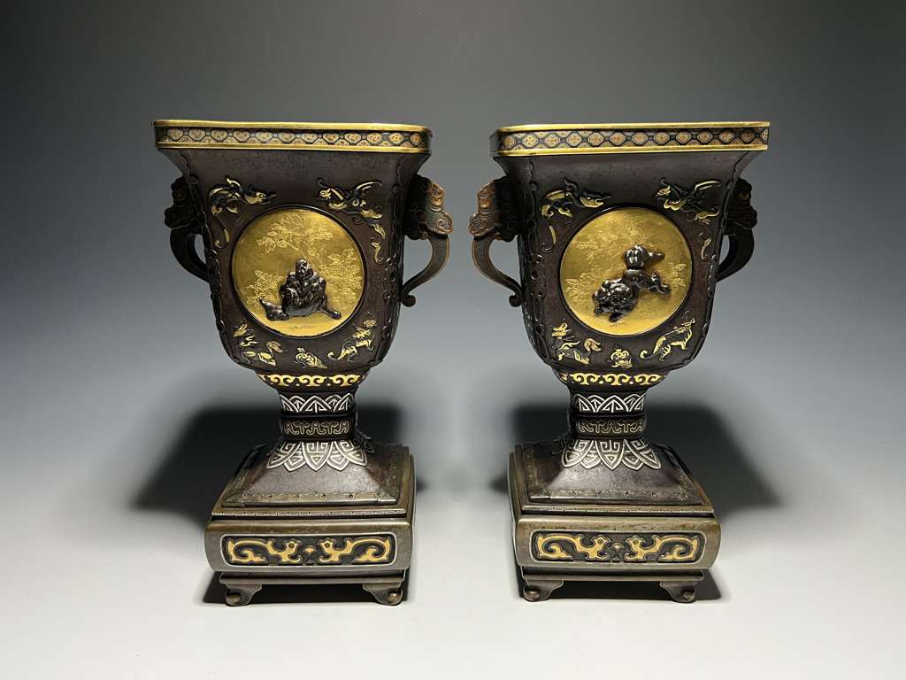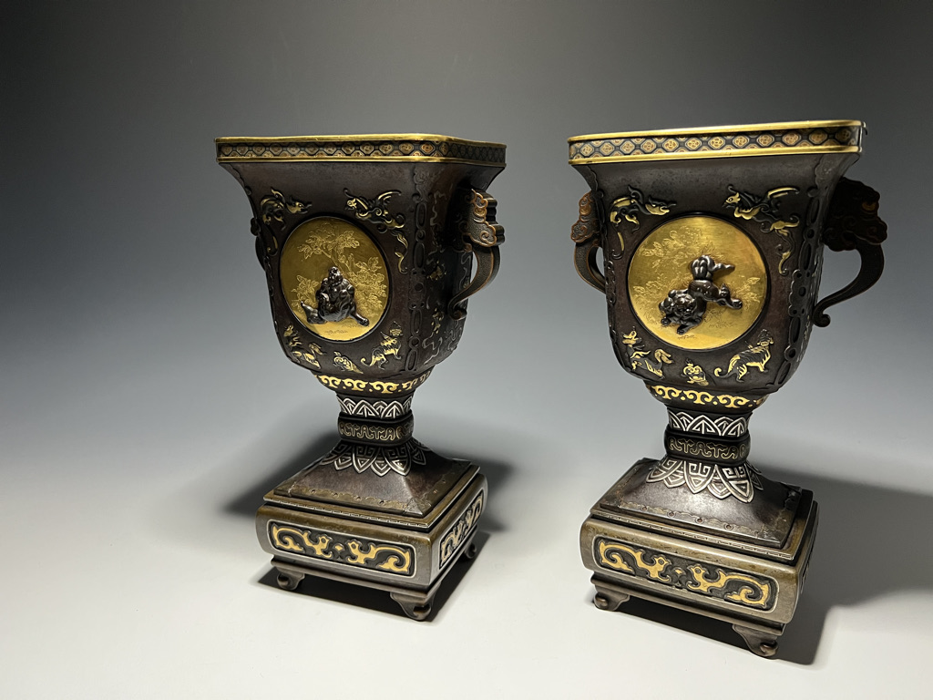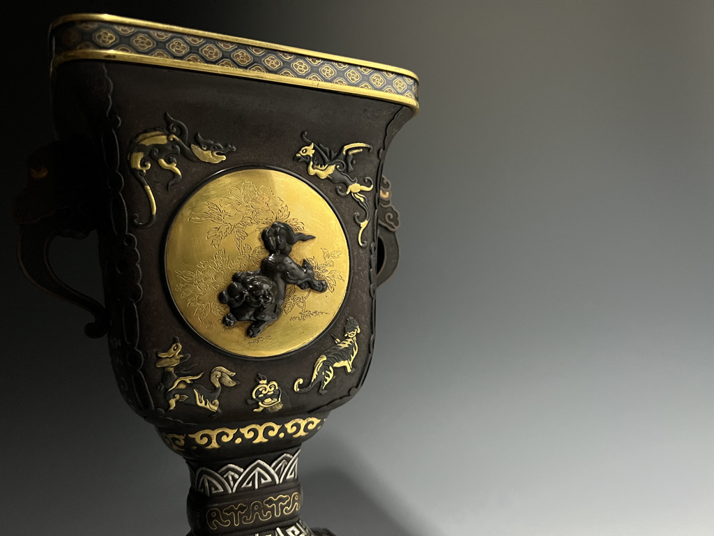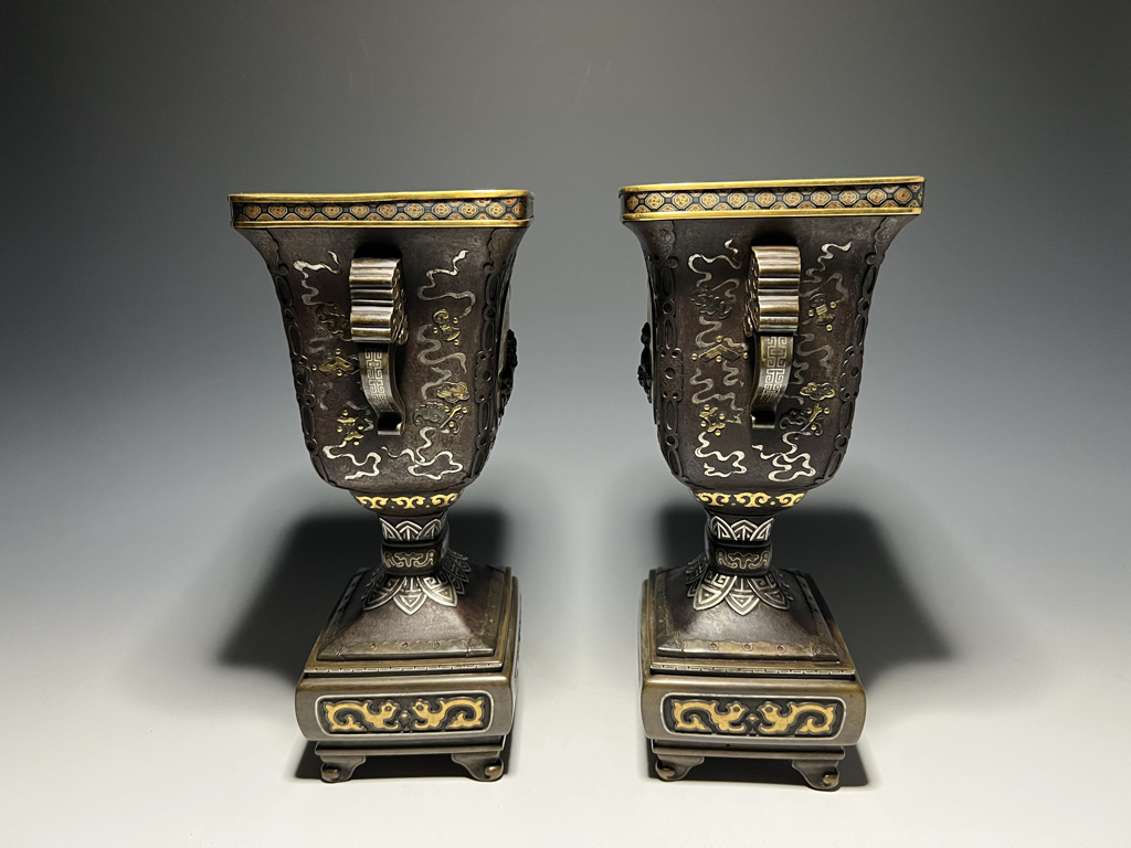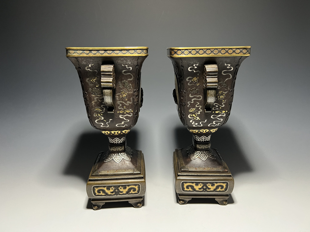 M007 鉄地金銀象嵌高脚杯一対【SOLD】