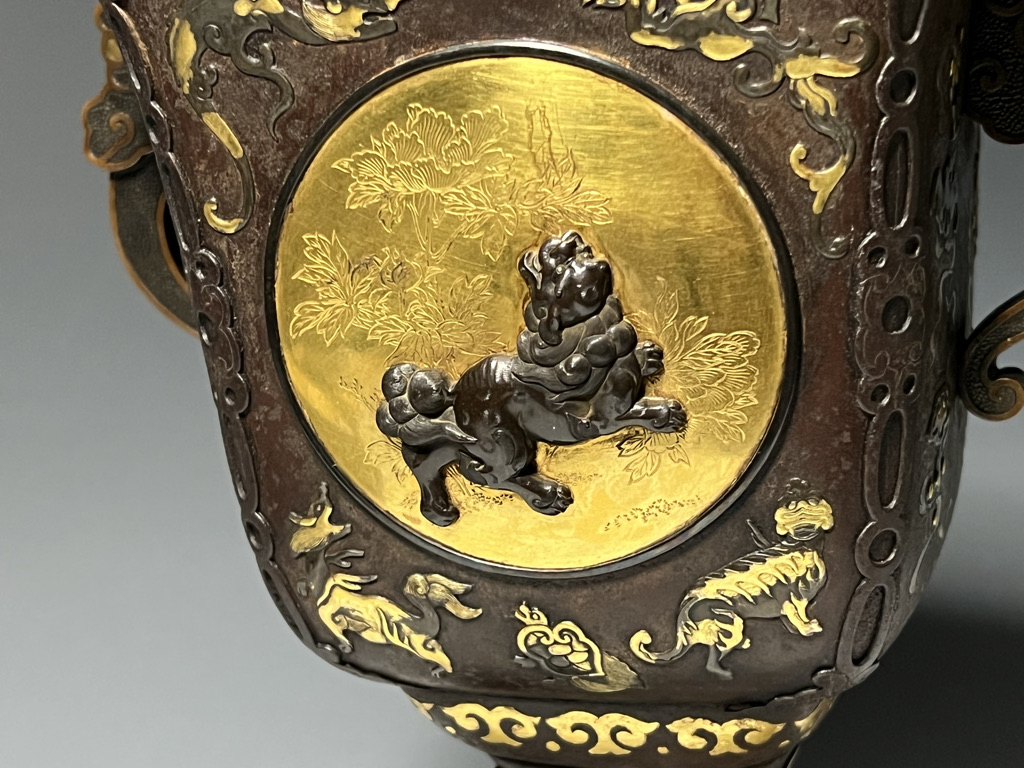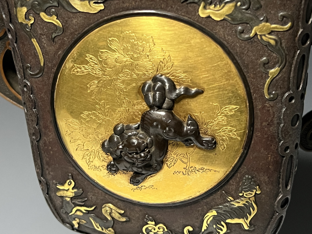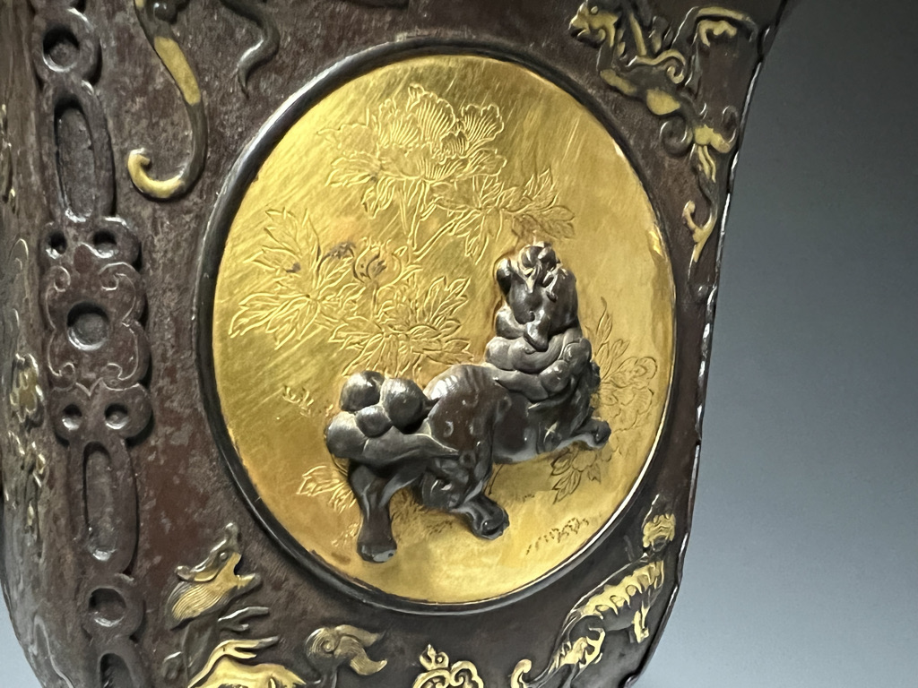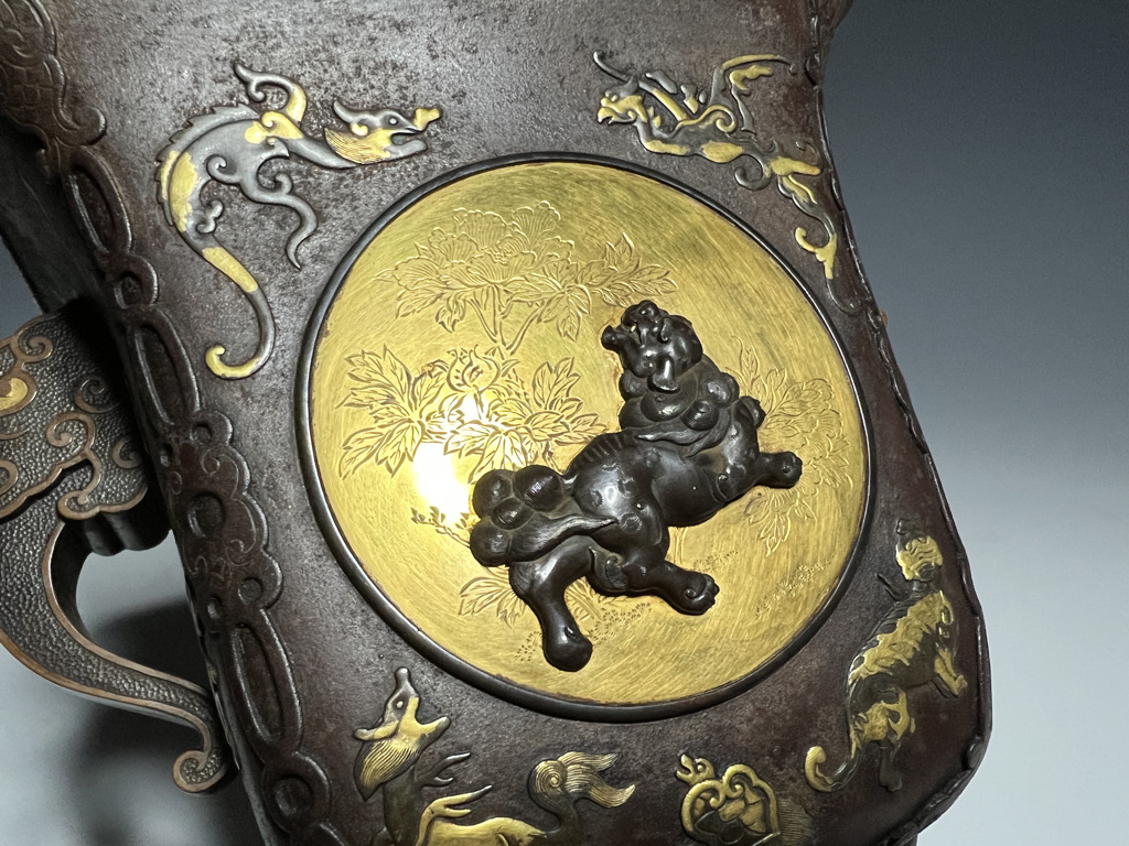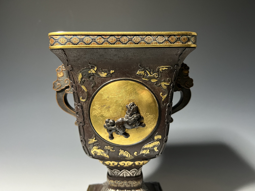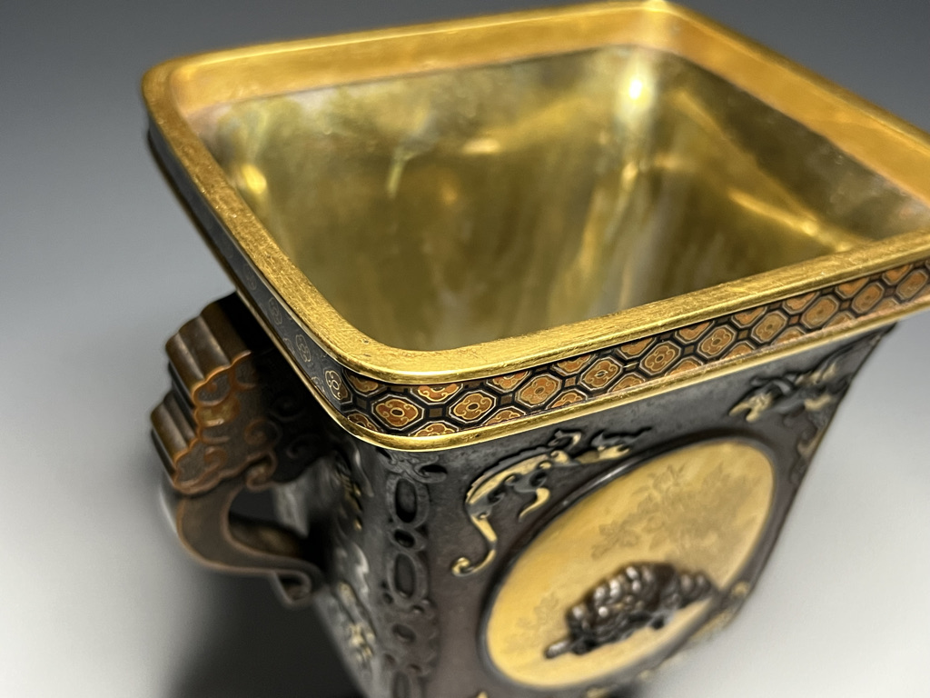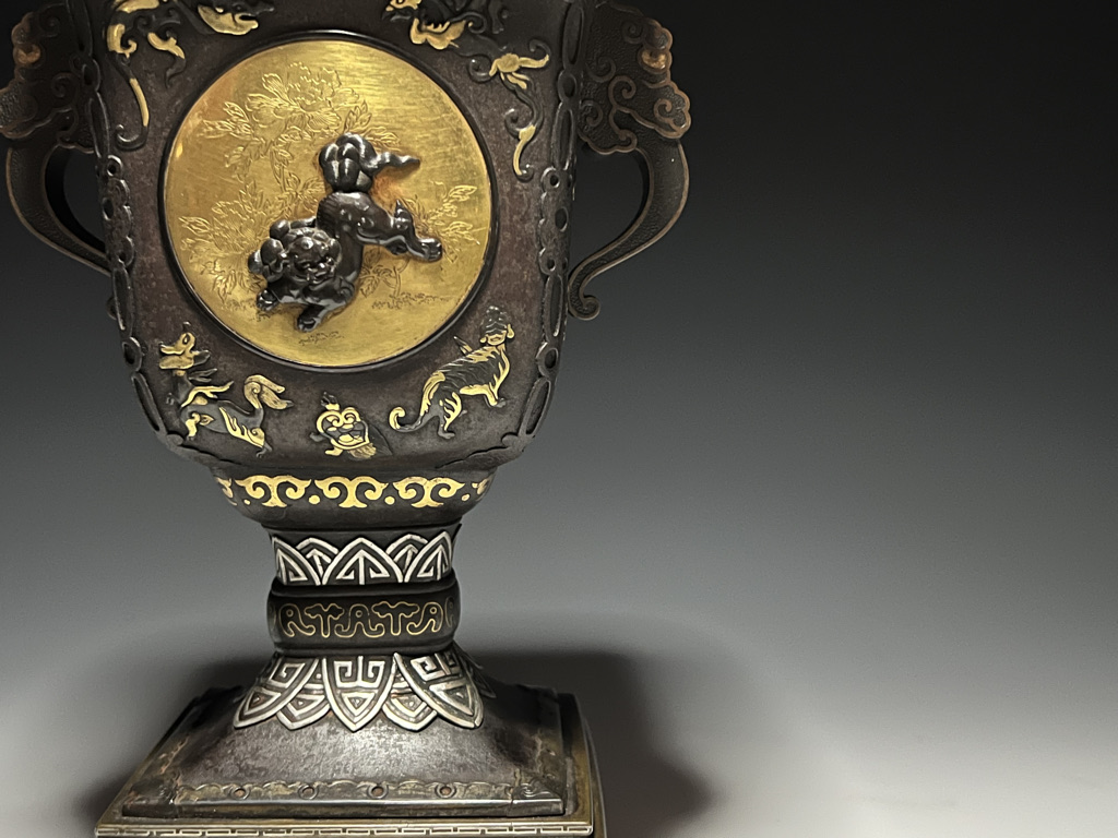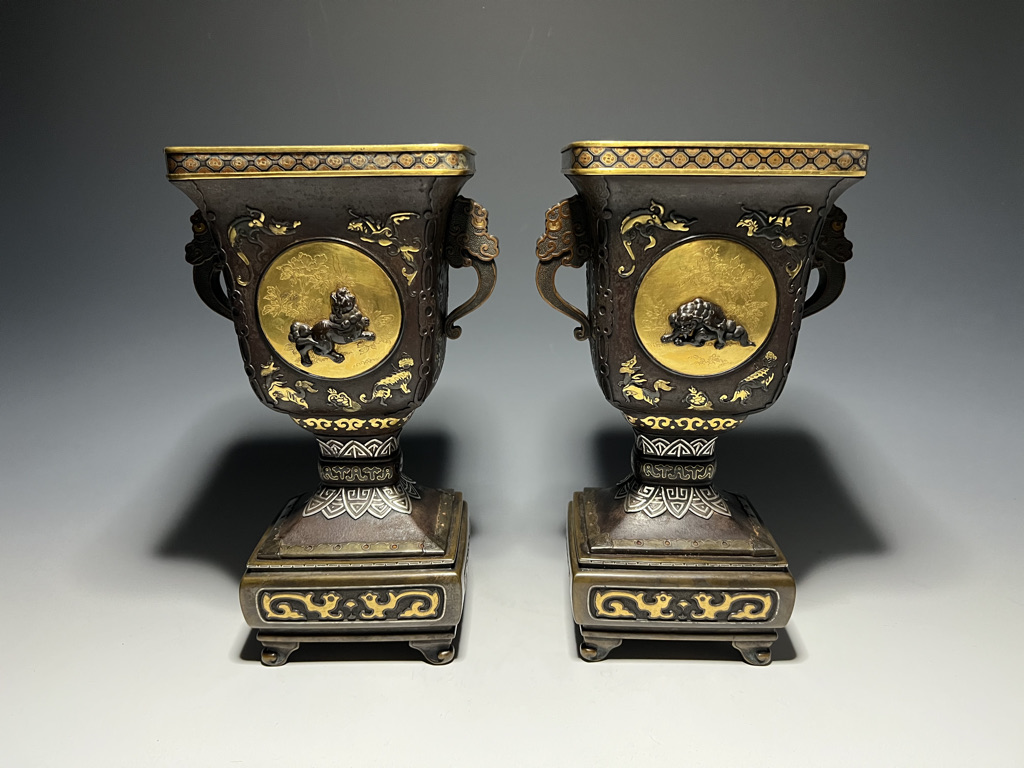 M007 鉄地金銀象嵌高脚杯一対【SOLD】