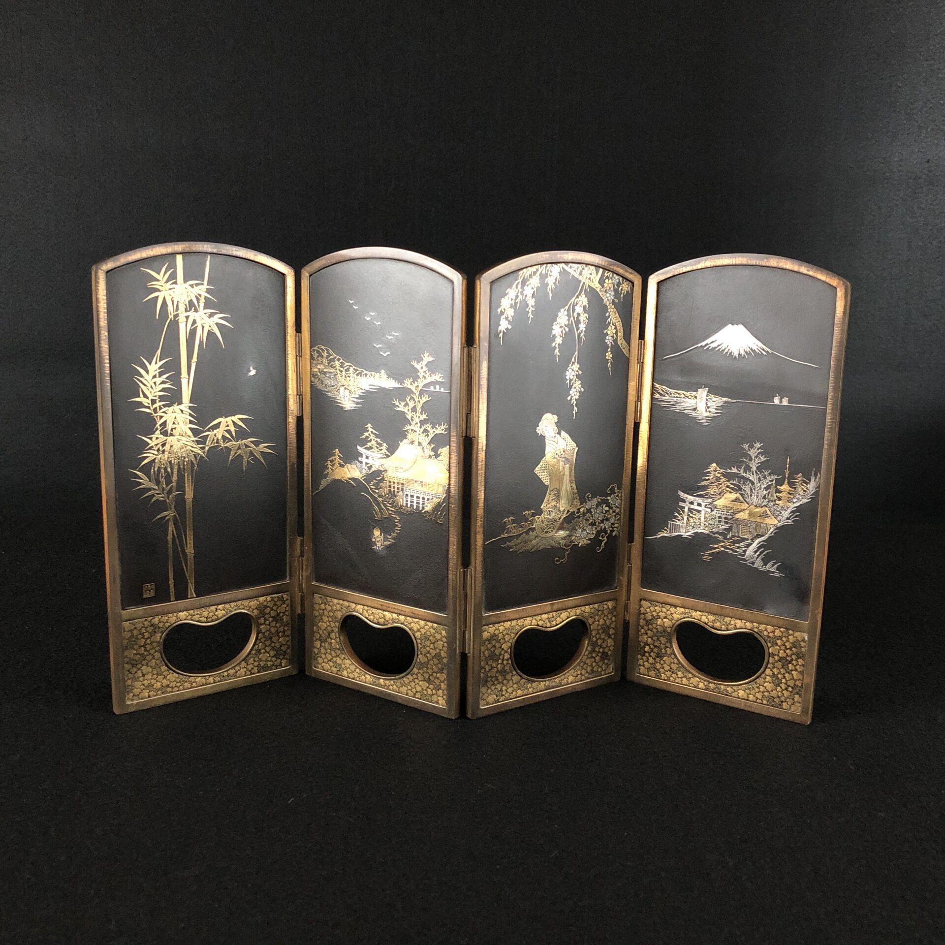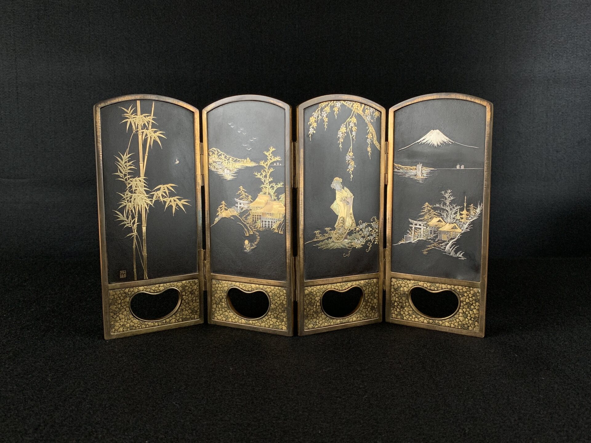 M009 小栗栖造鉄地布目象嵌雛屏風【SOLD】