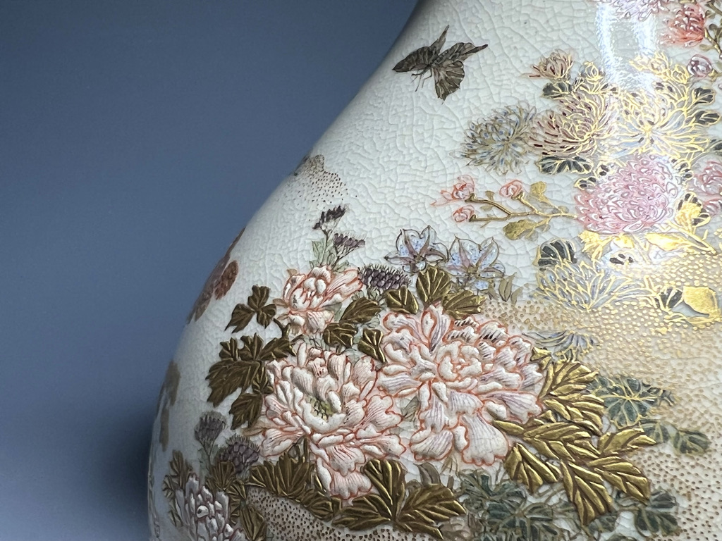 S008 錦光山造 瓢型草花文花瓶【SOLD】