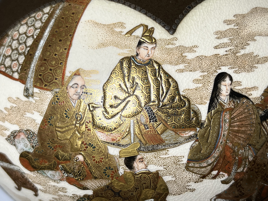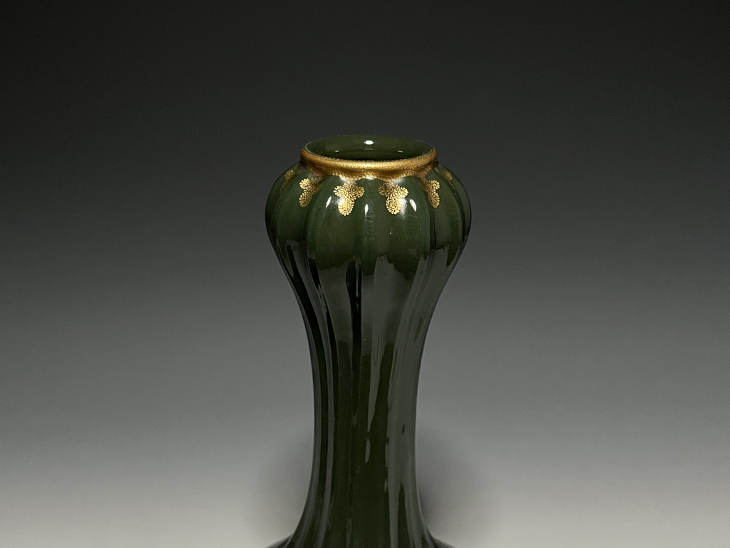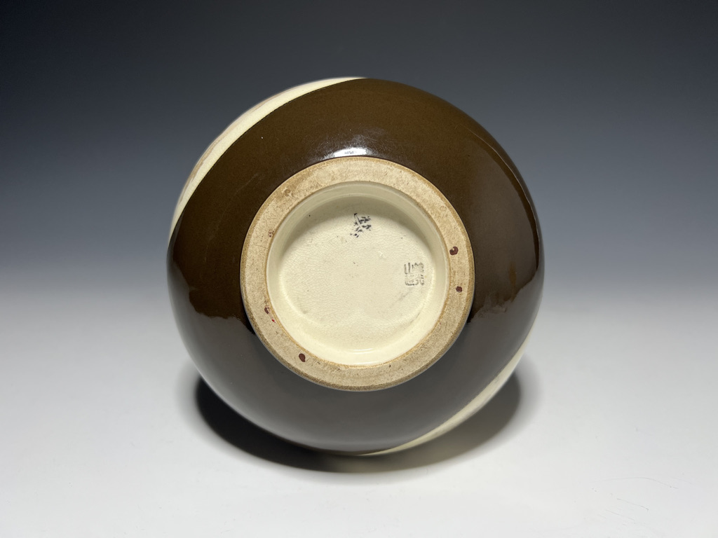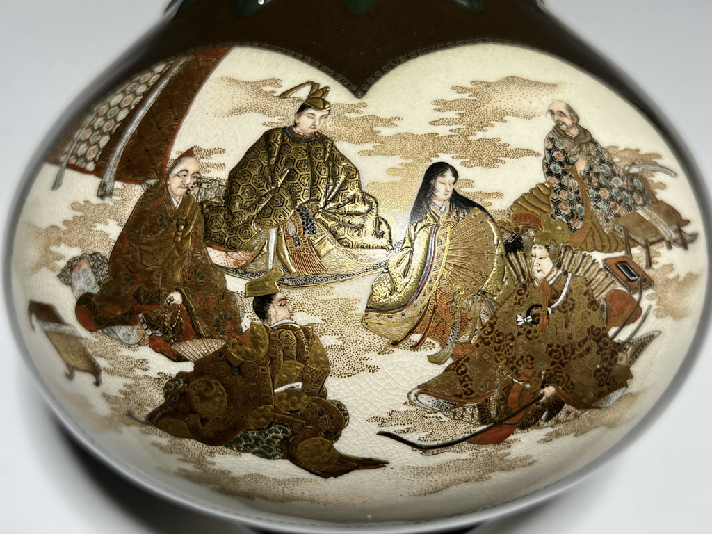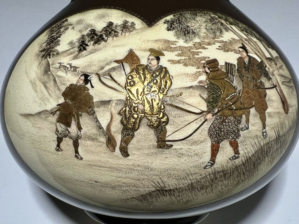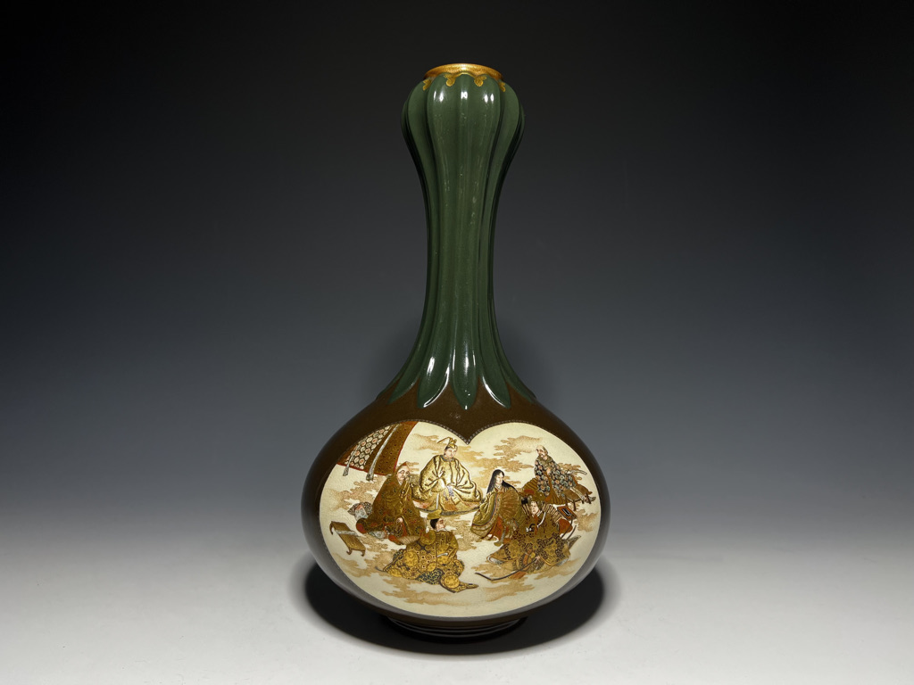 S010 錦光山造 茶釉金彩風俗文鶴首花瓶【SOLD】