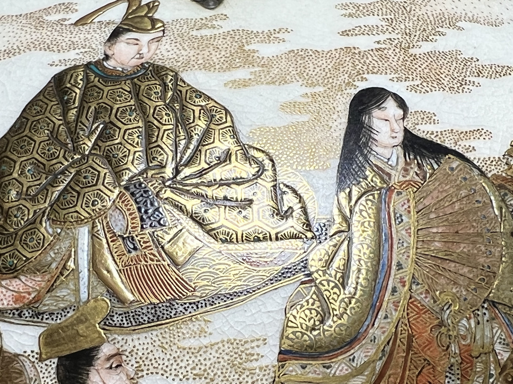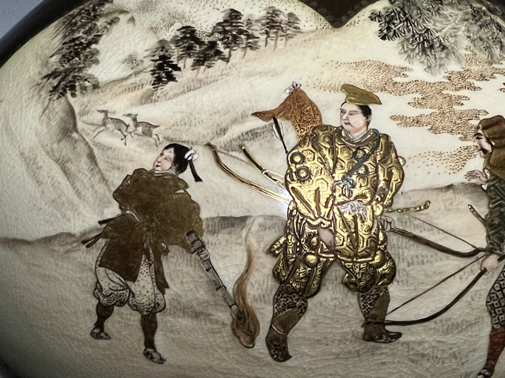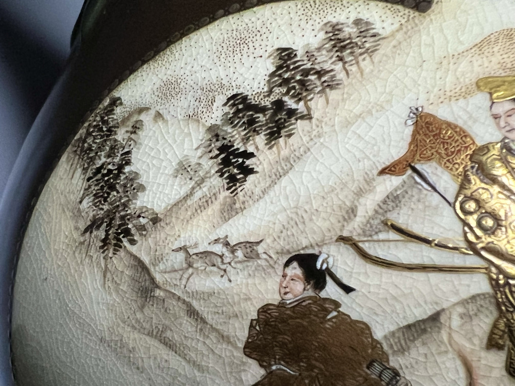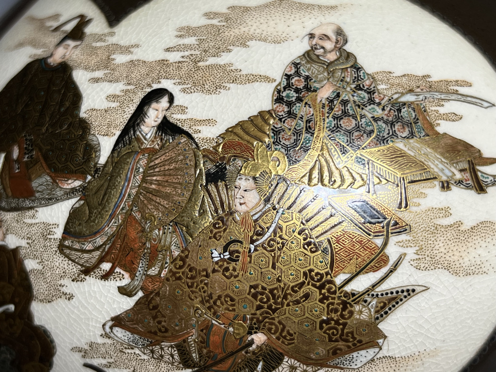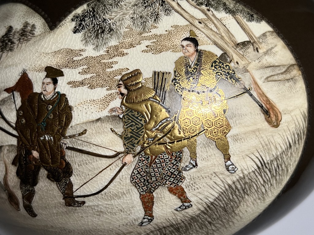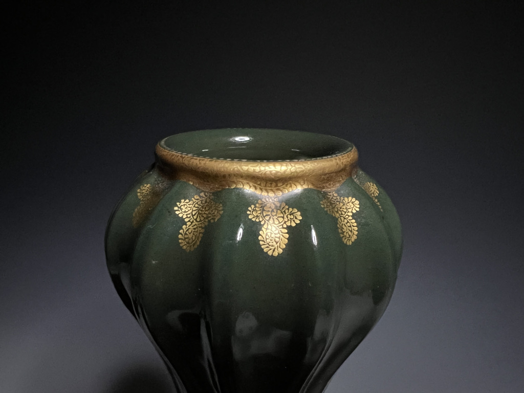 S010 錦光山造 茶釉金彩風俗文鶴首花瓶【SOLD】
