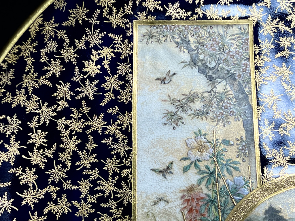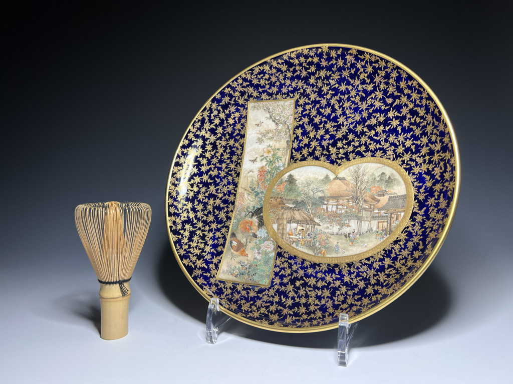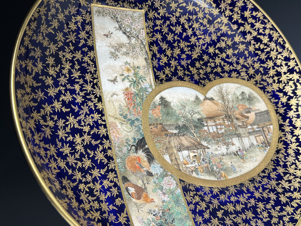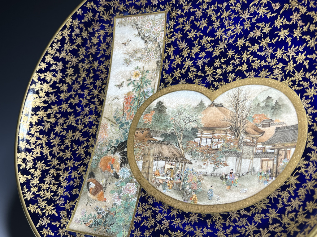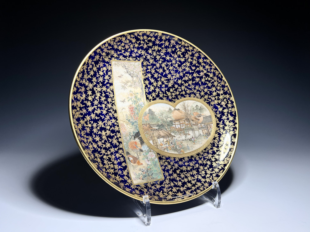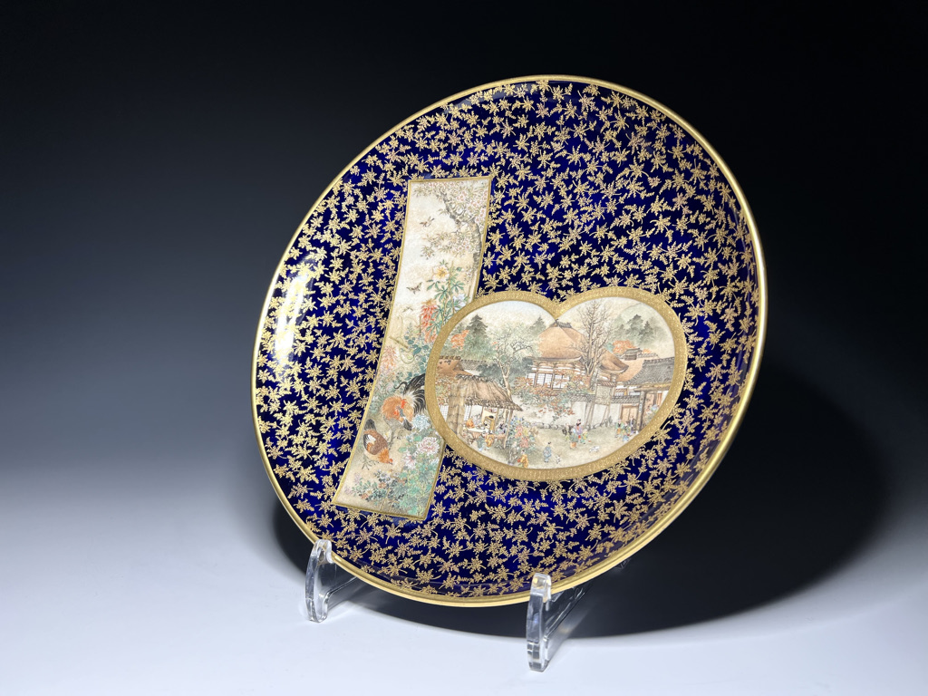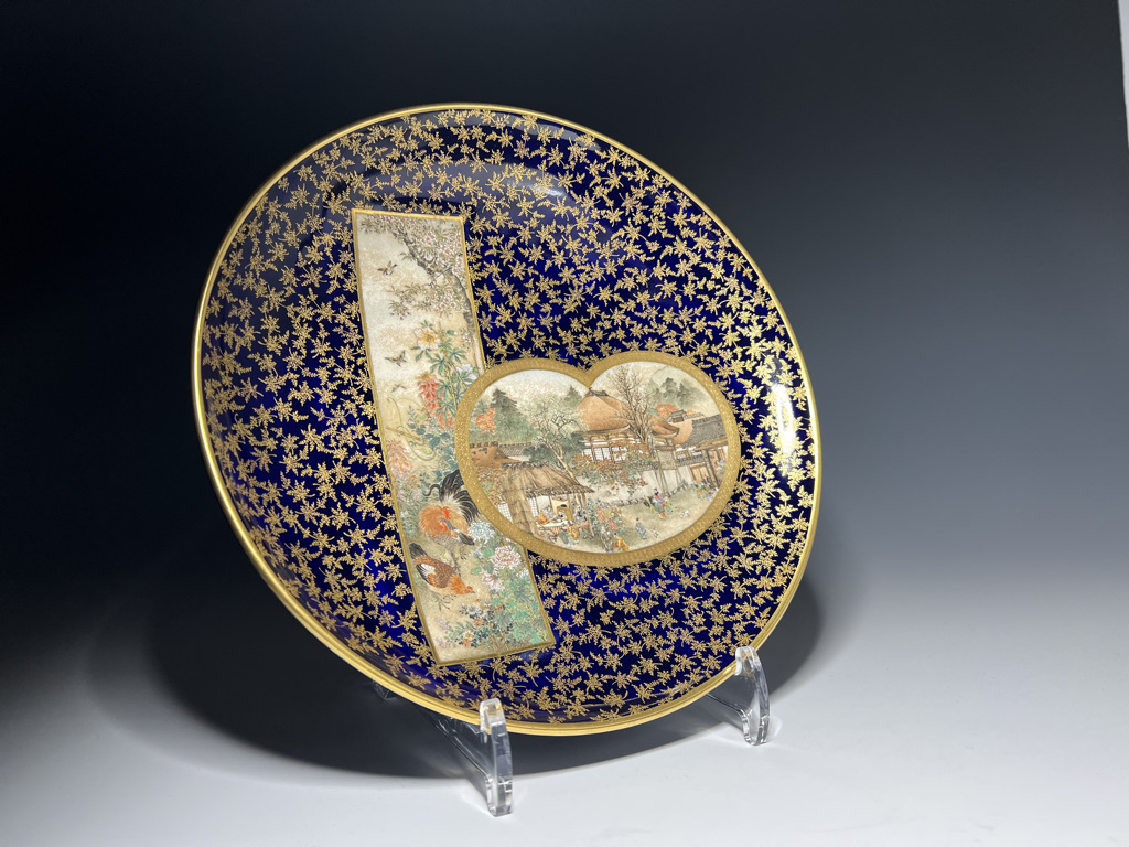 S013 錦光山造 瑠璃金彩花鳥風俗文飾皿【SOLD】