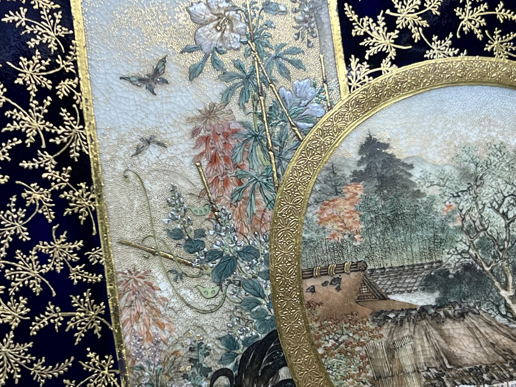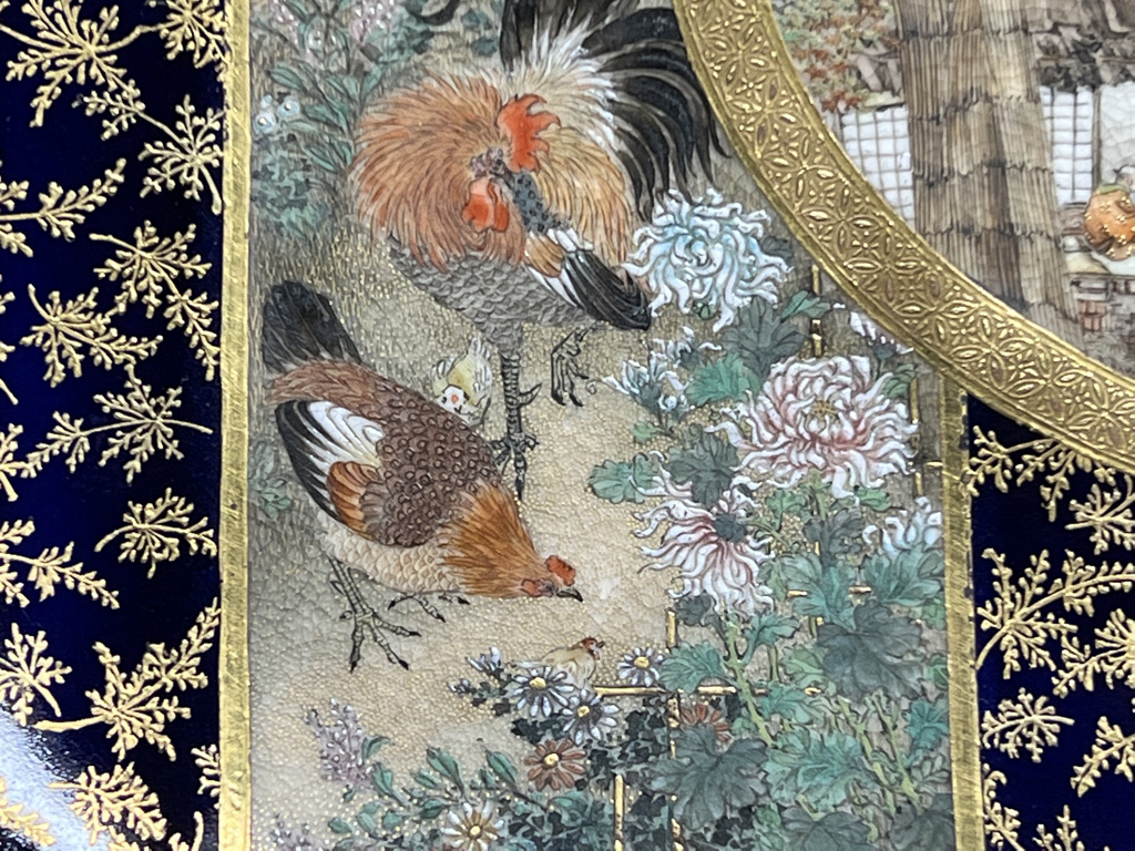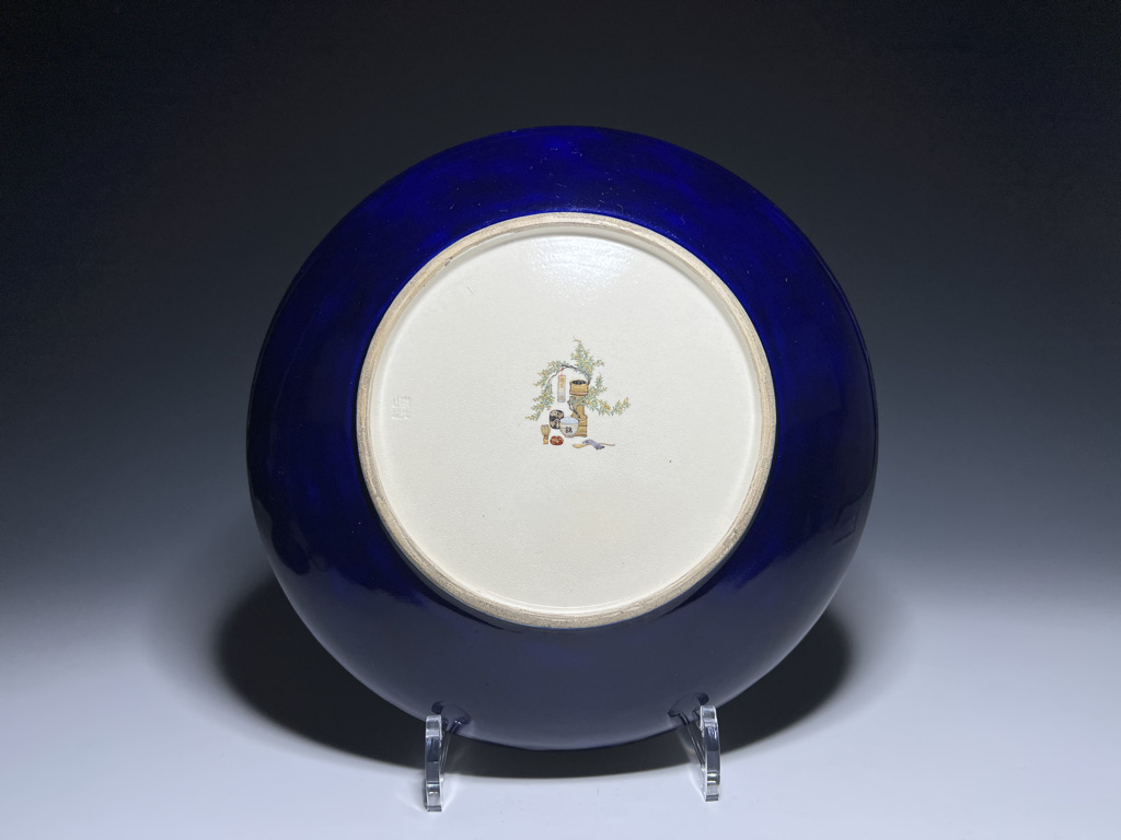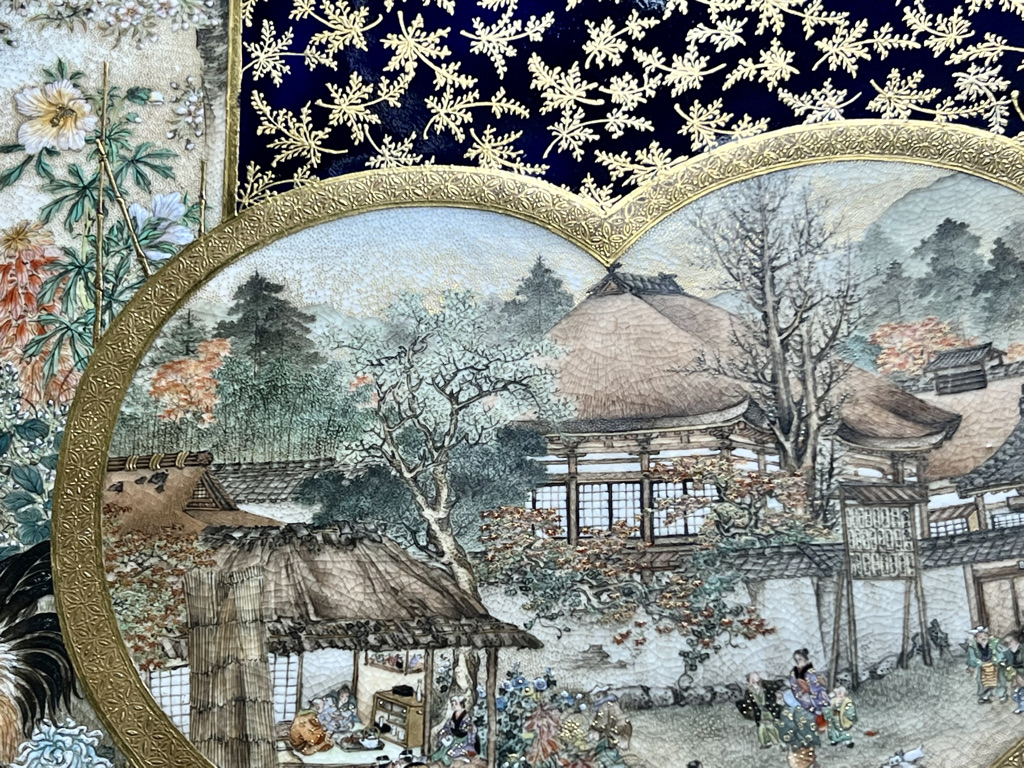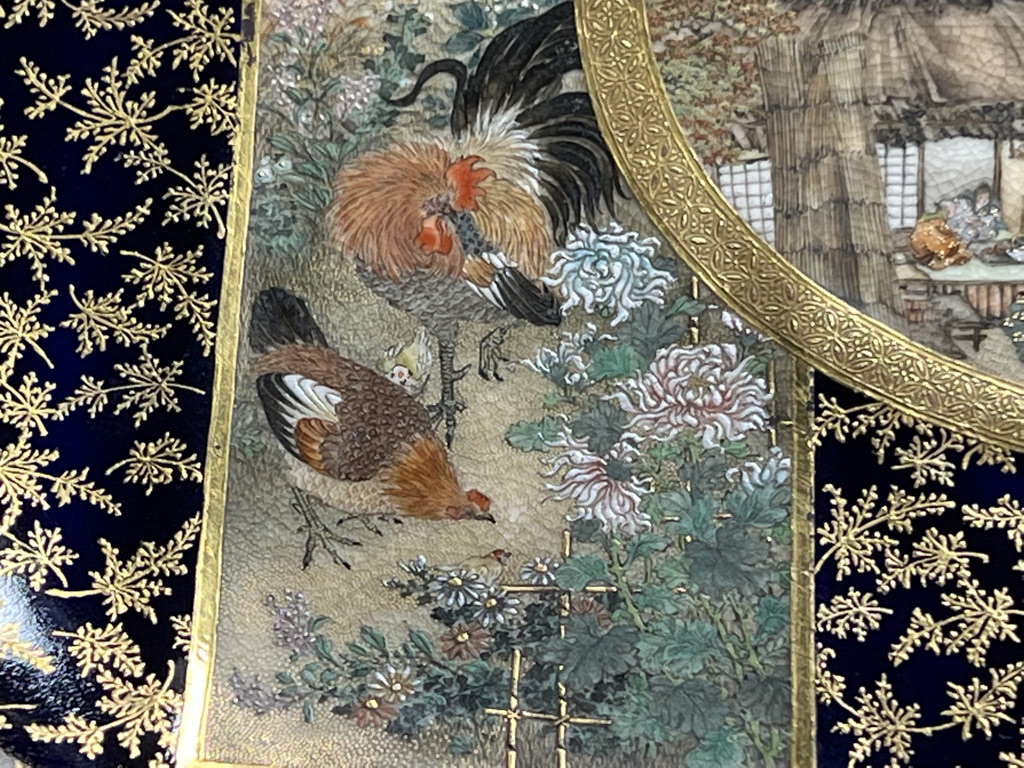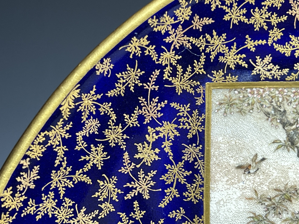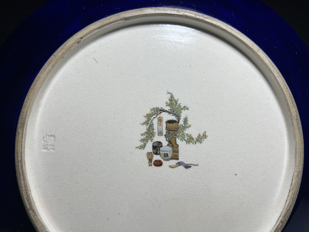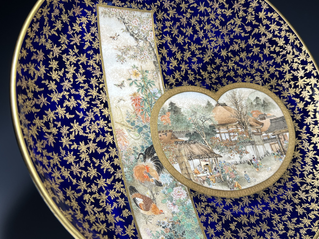 S013 錦光山造 瑠璃金彩花鳥風俗文飾皿【SOLD】
