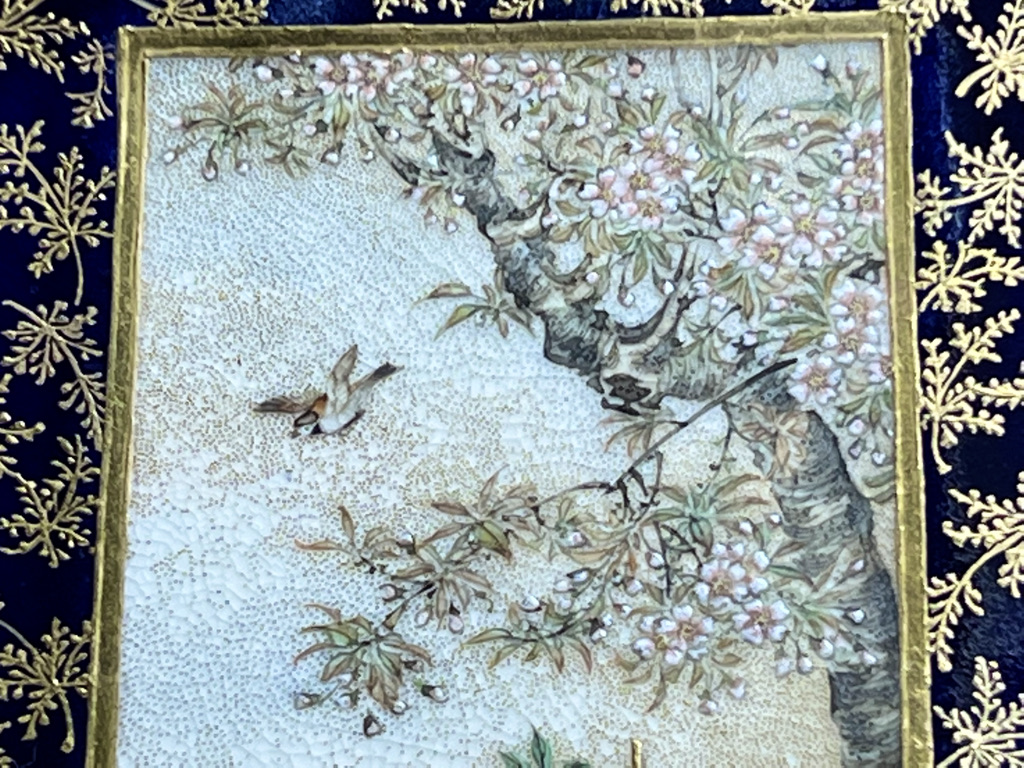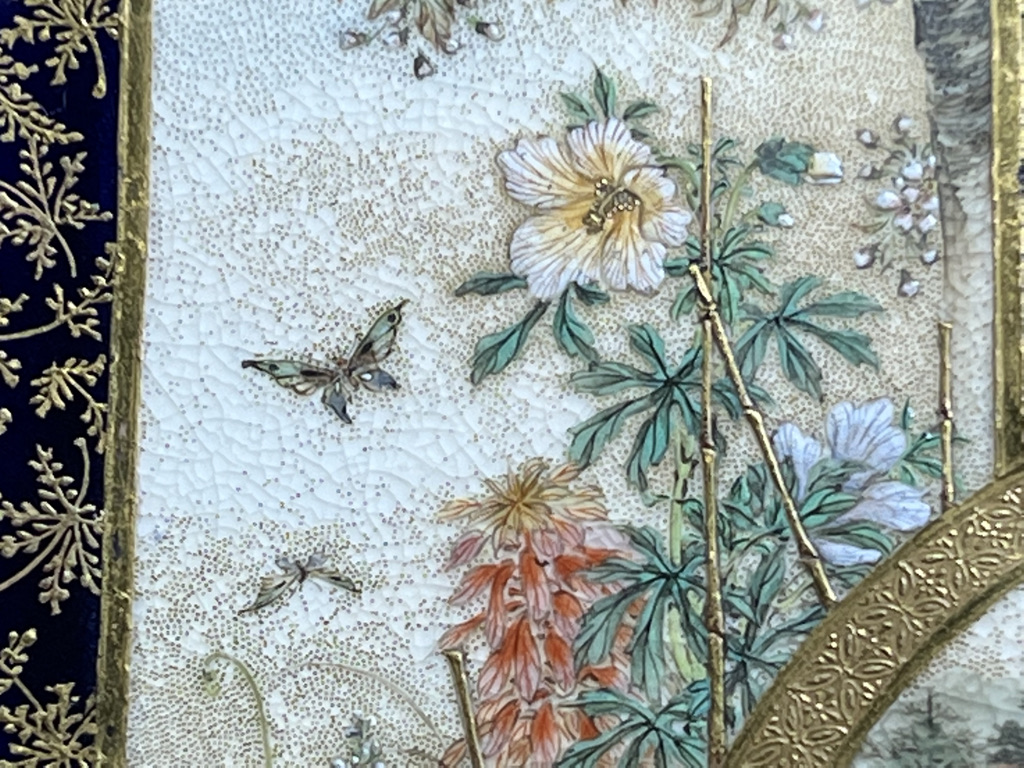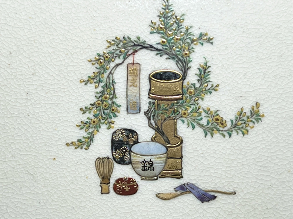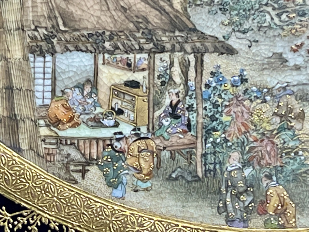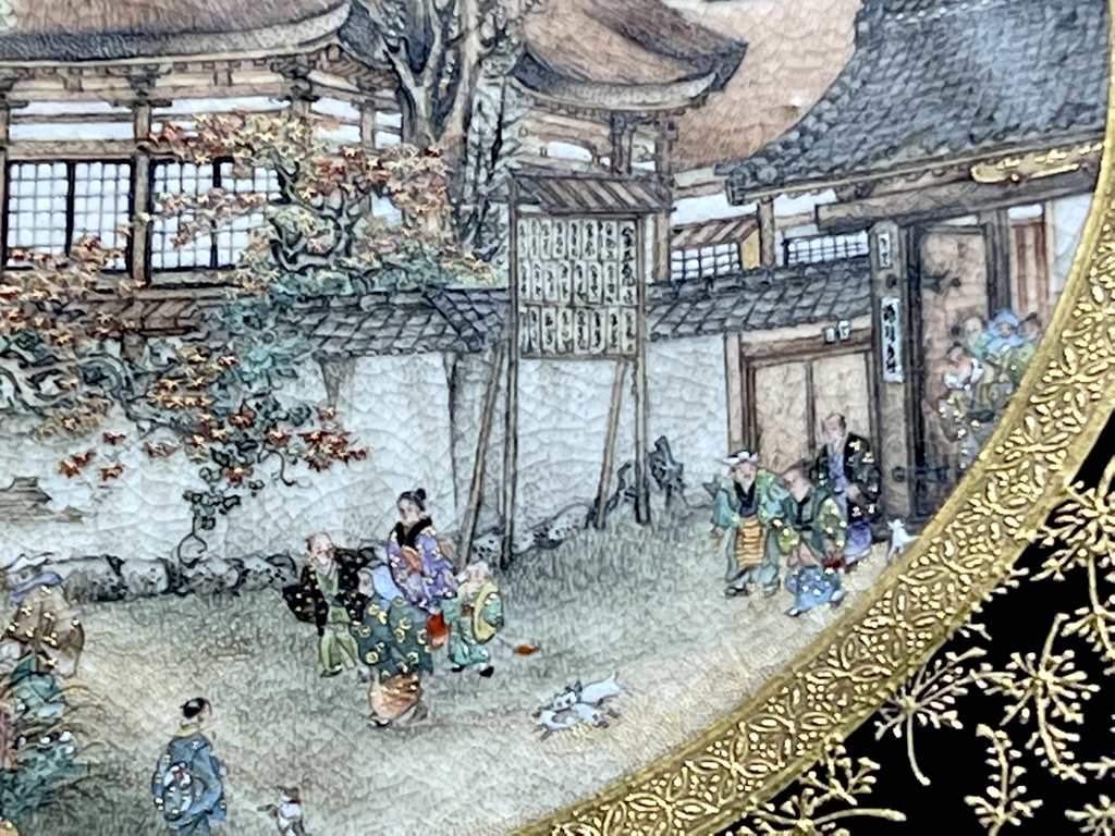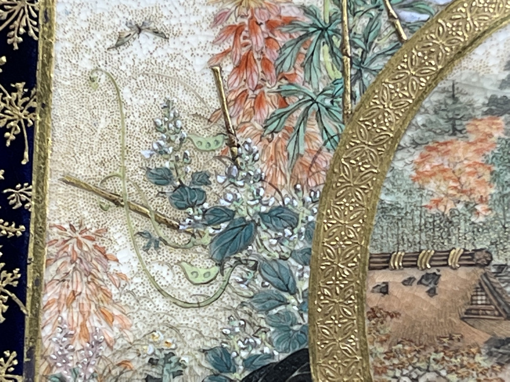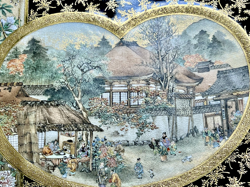 S013 錦光山造 瑠璃金彩花鳥風俗文飾皿【SOLD】