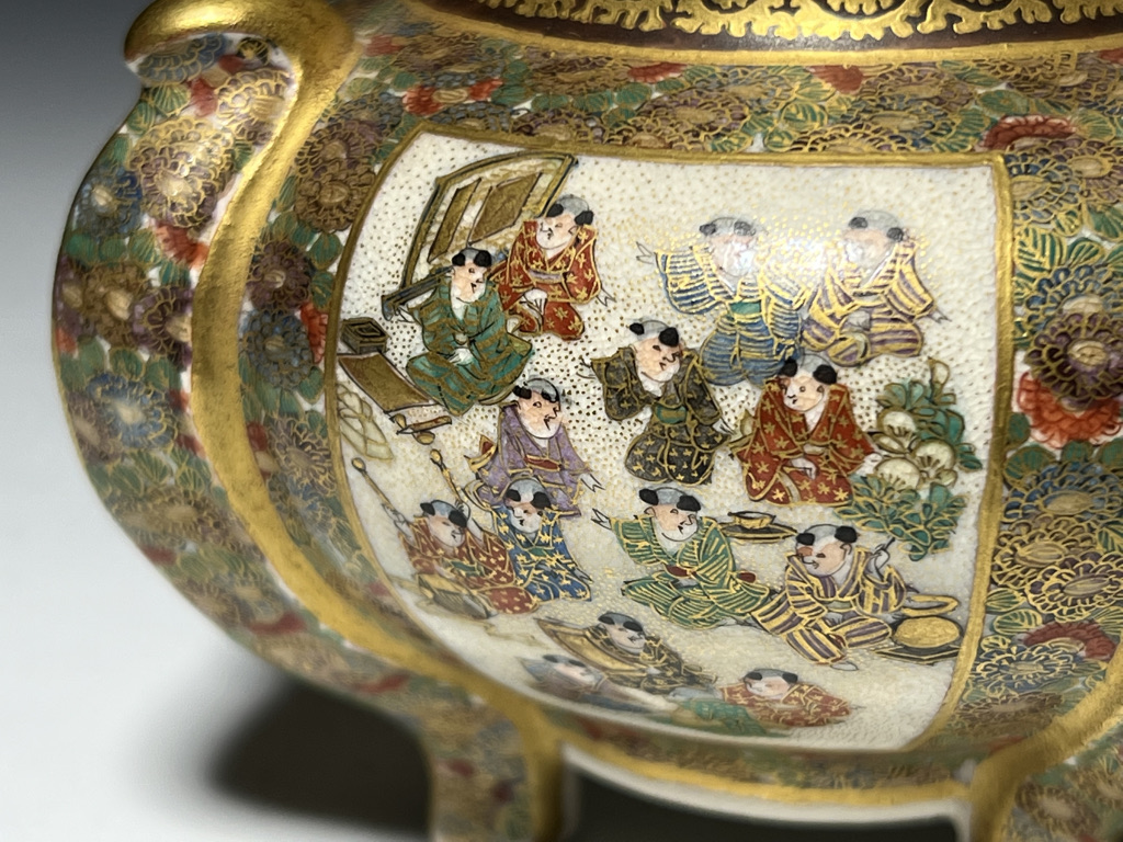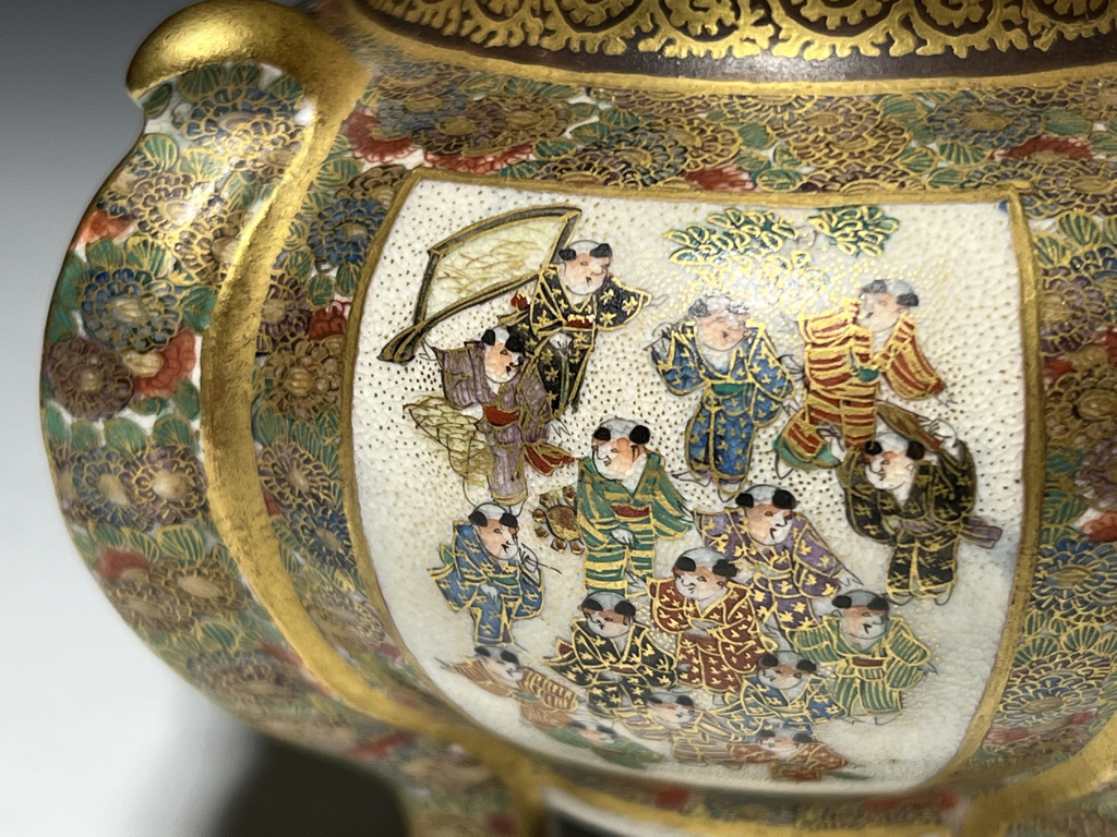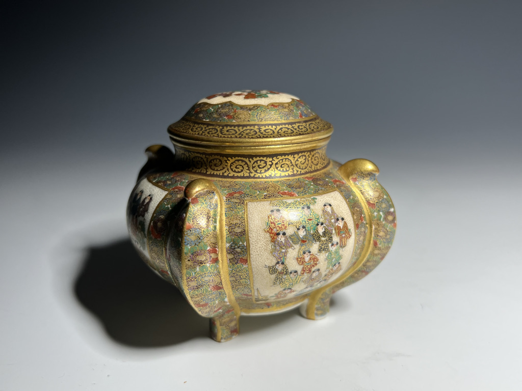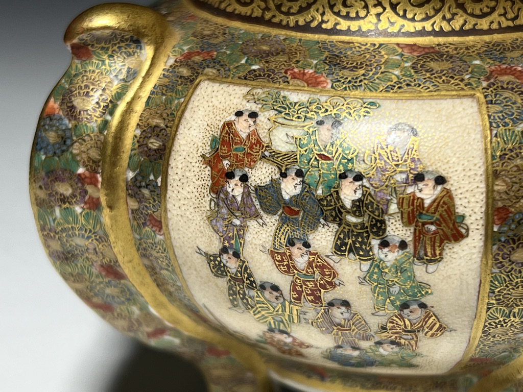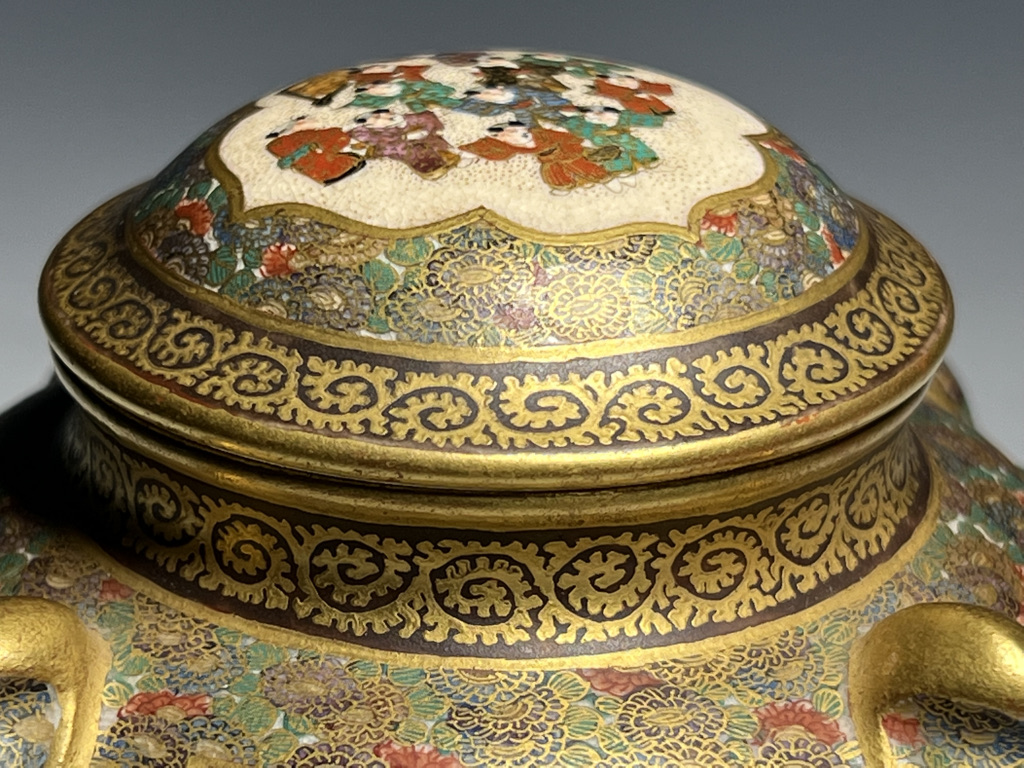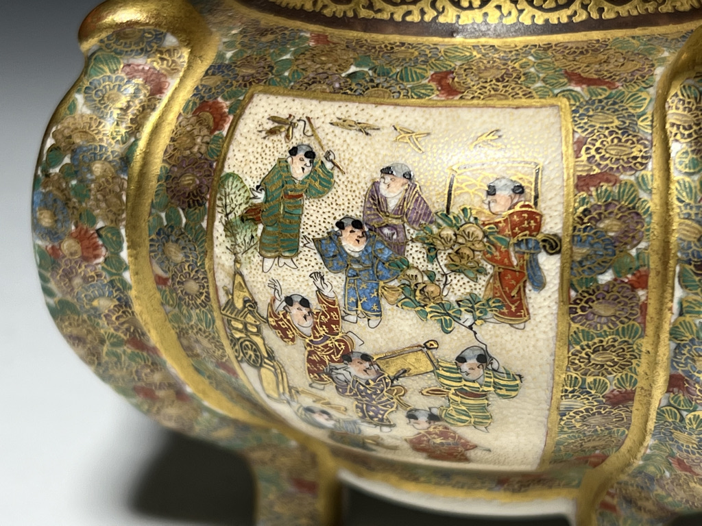 S015 錦光山造 唐子図花尽蛸唐草文香炉【SOLD】