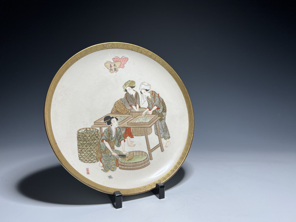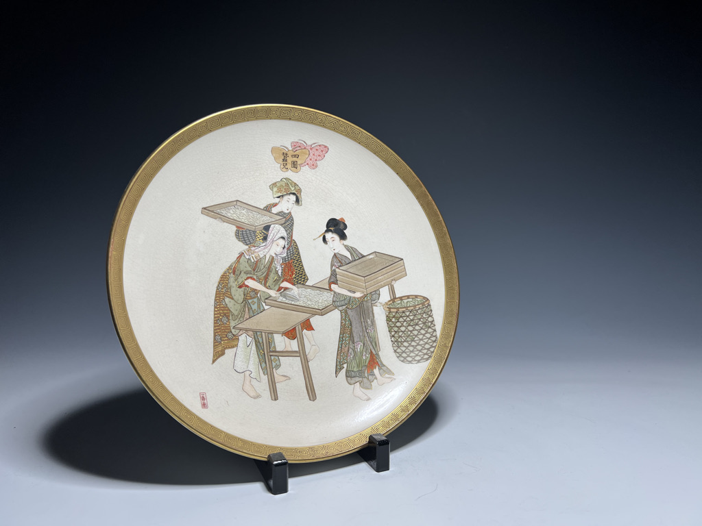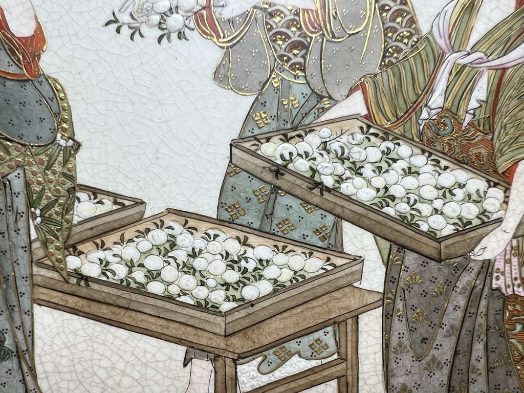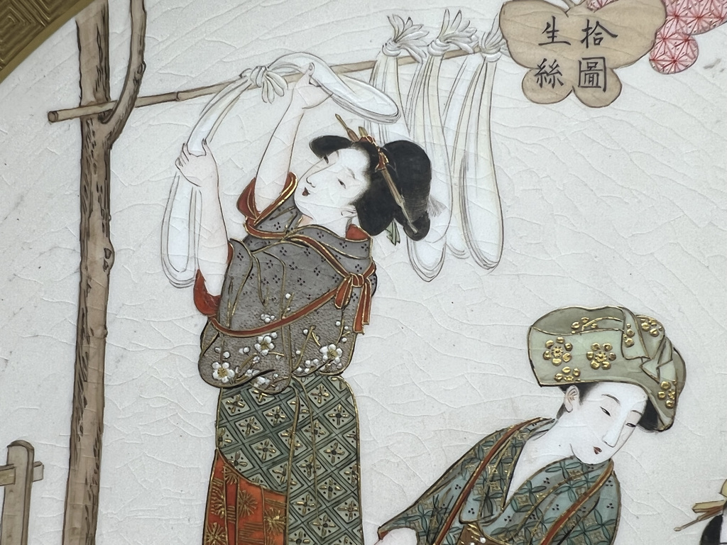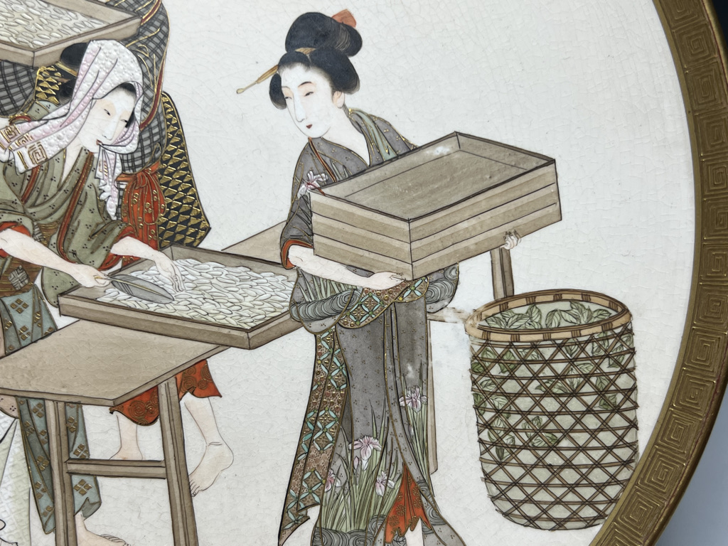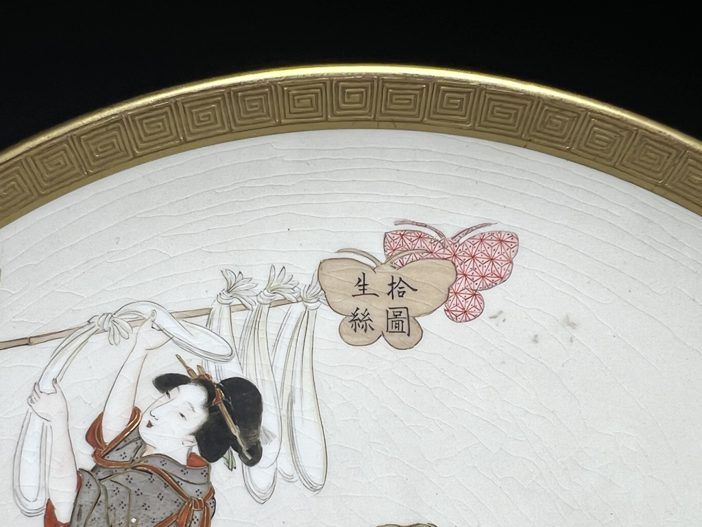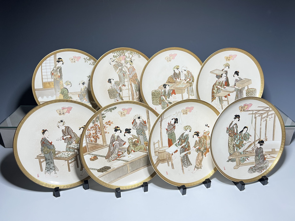 S018 錦光山皿造 蚕ヨリ生糸ノ図飾皿8枚組【SOLD】