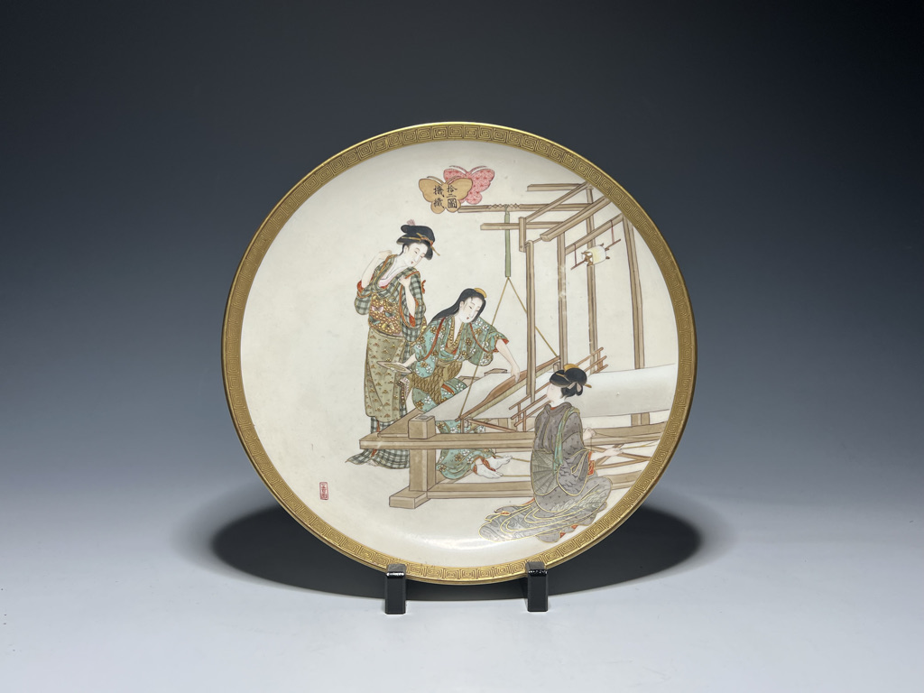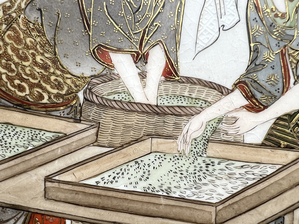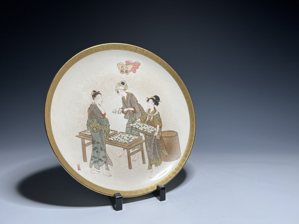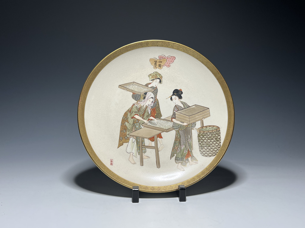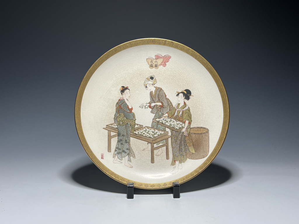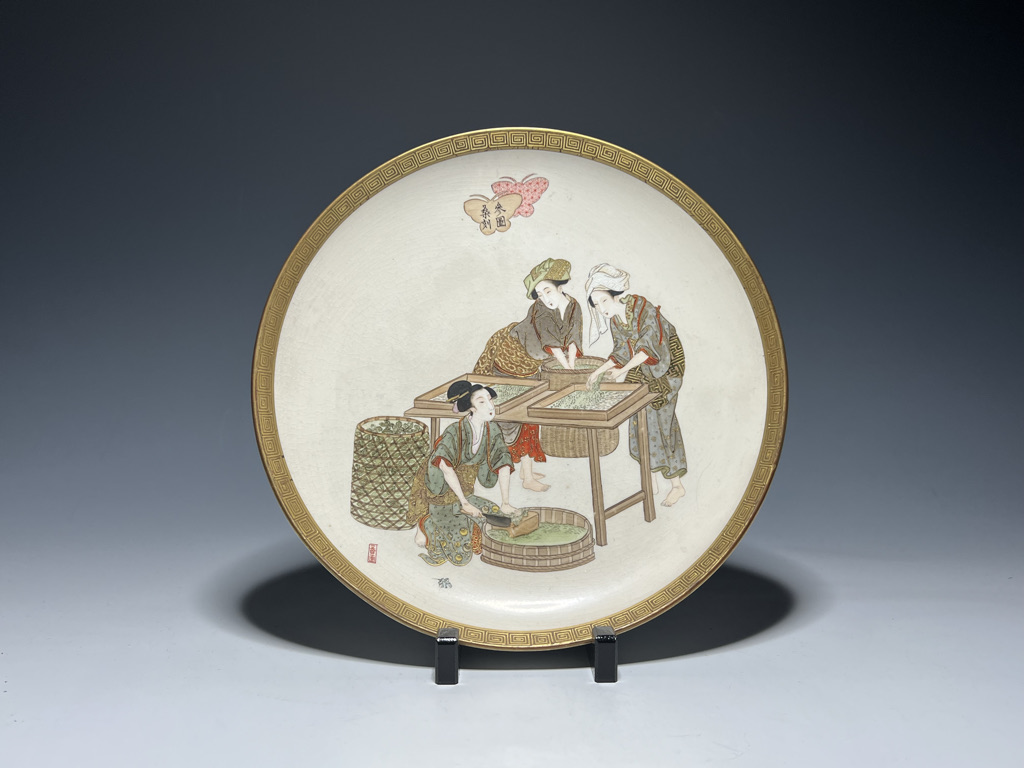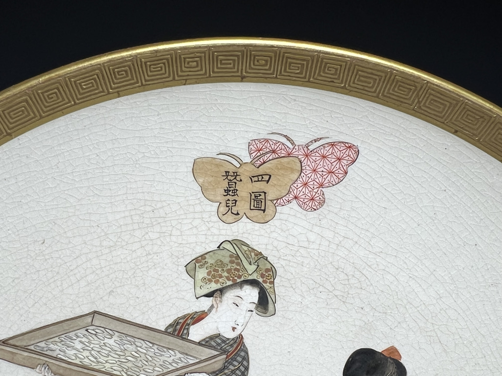 S018 錦光山皿造 蚕ヨリ生糸ノ図飾皿8枚組【SOLD】