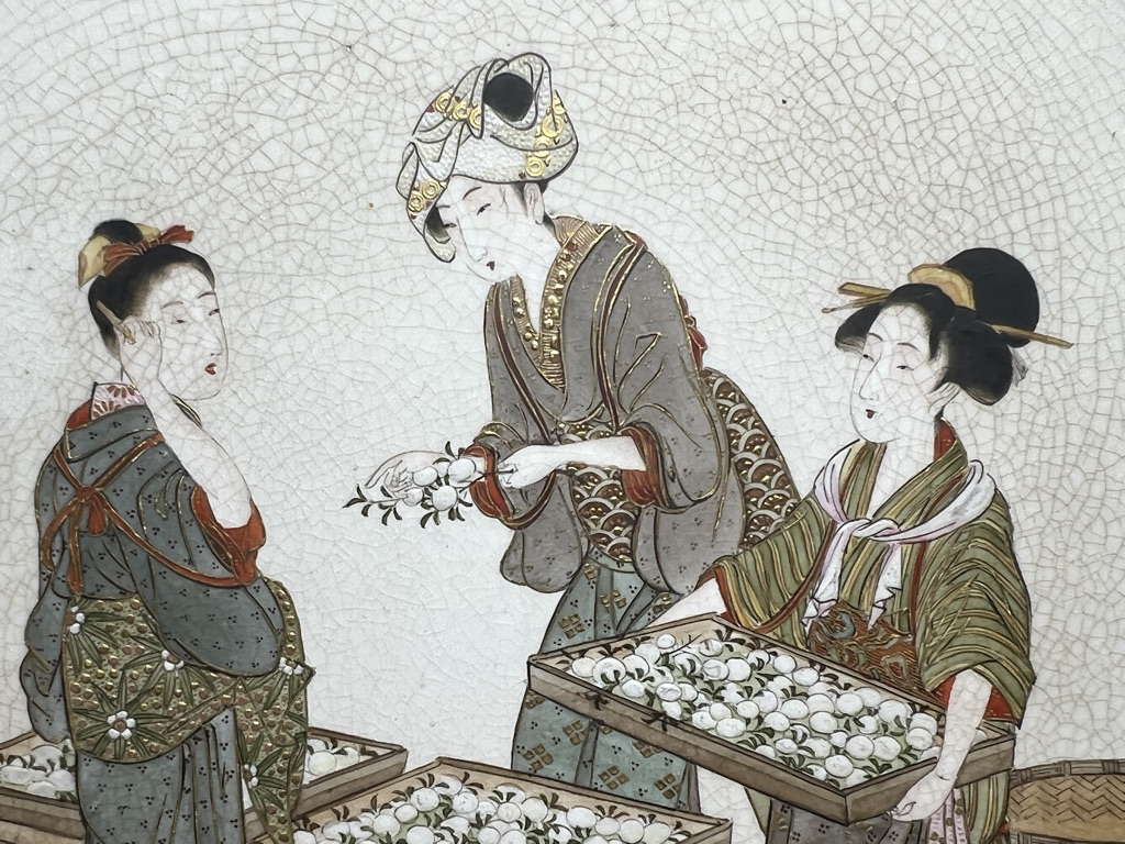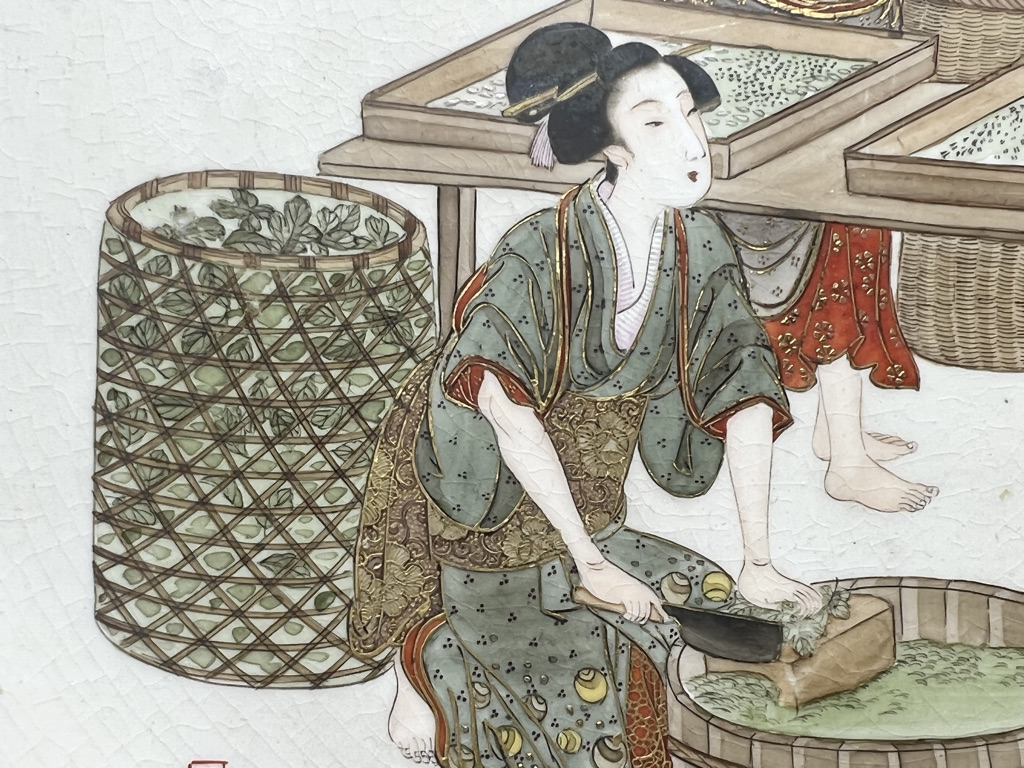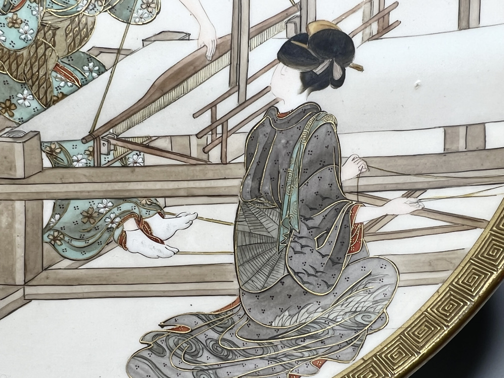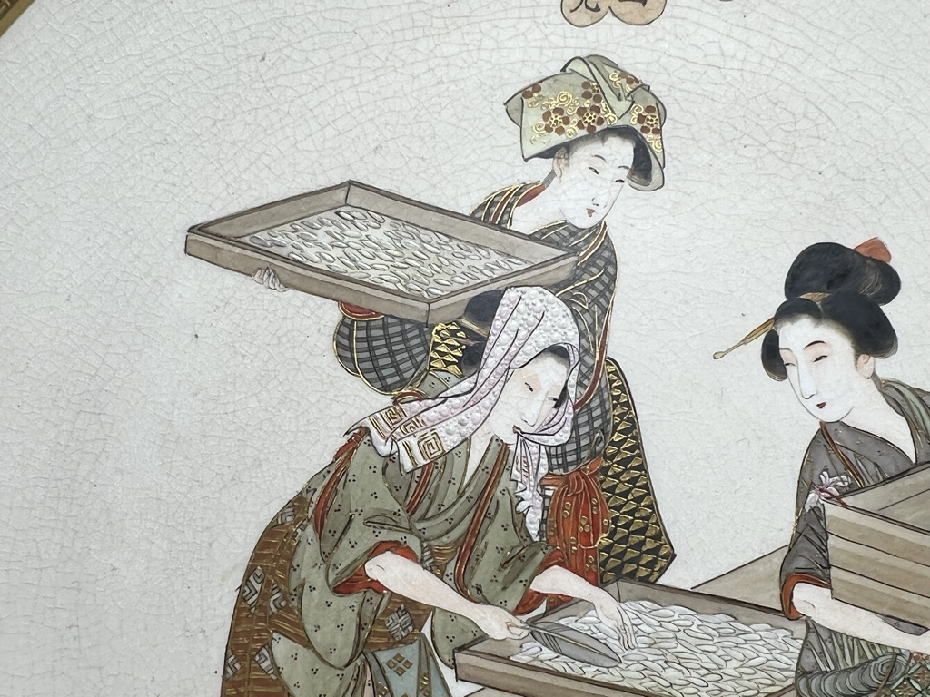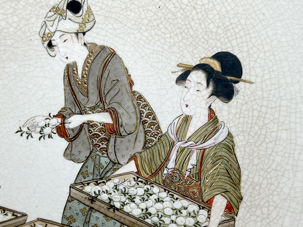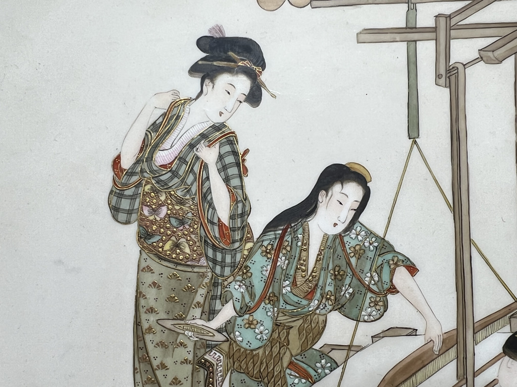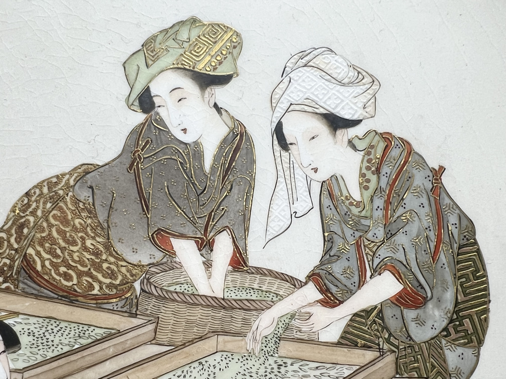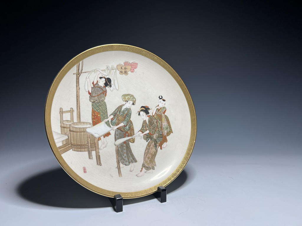 S018 錦光山皿造 蚕ヨリ生糸ノ図飾皿8枚組【SOLD】