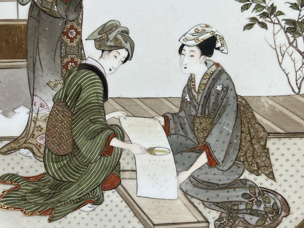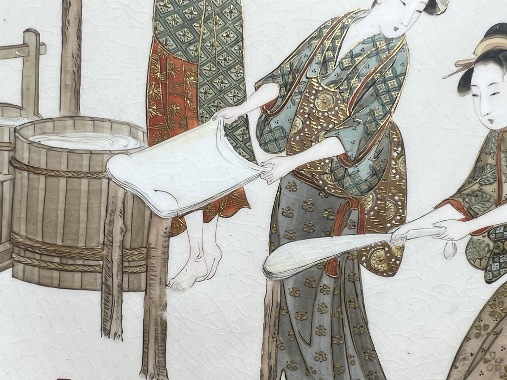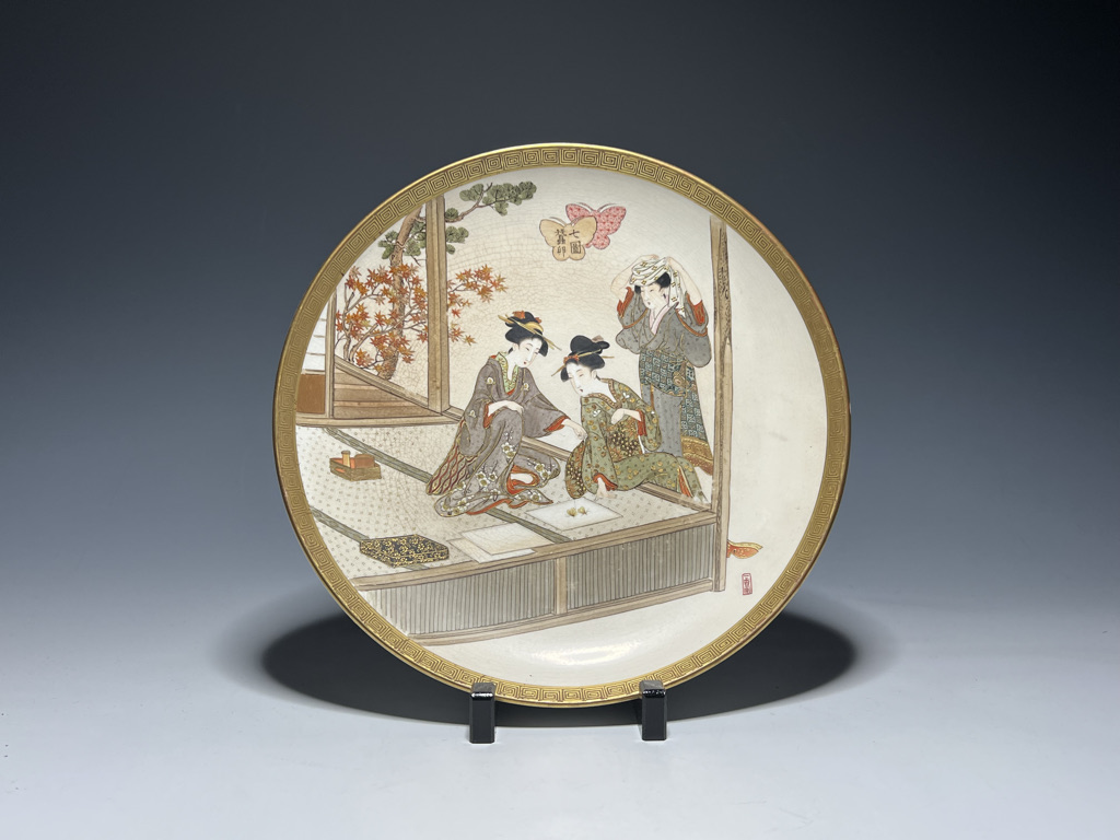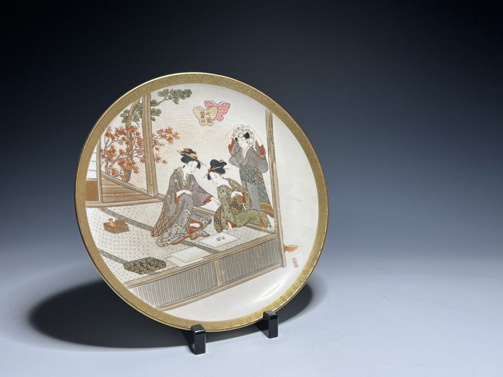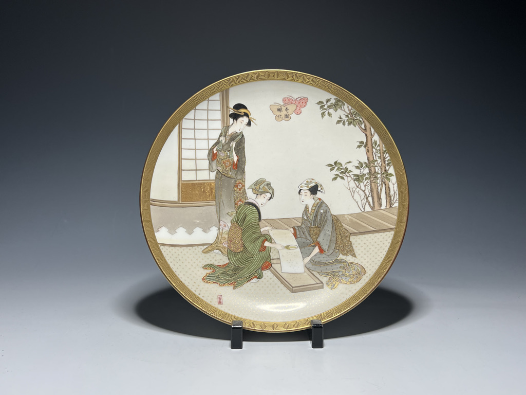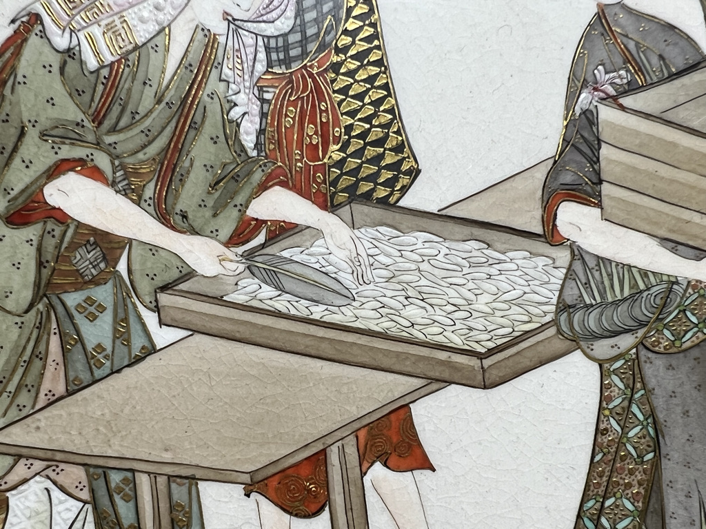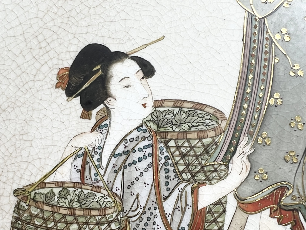 S018 錦光山皿造 蚕ヨリ生糸ノ図飾皿8枚組【SOLD】