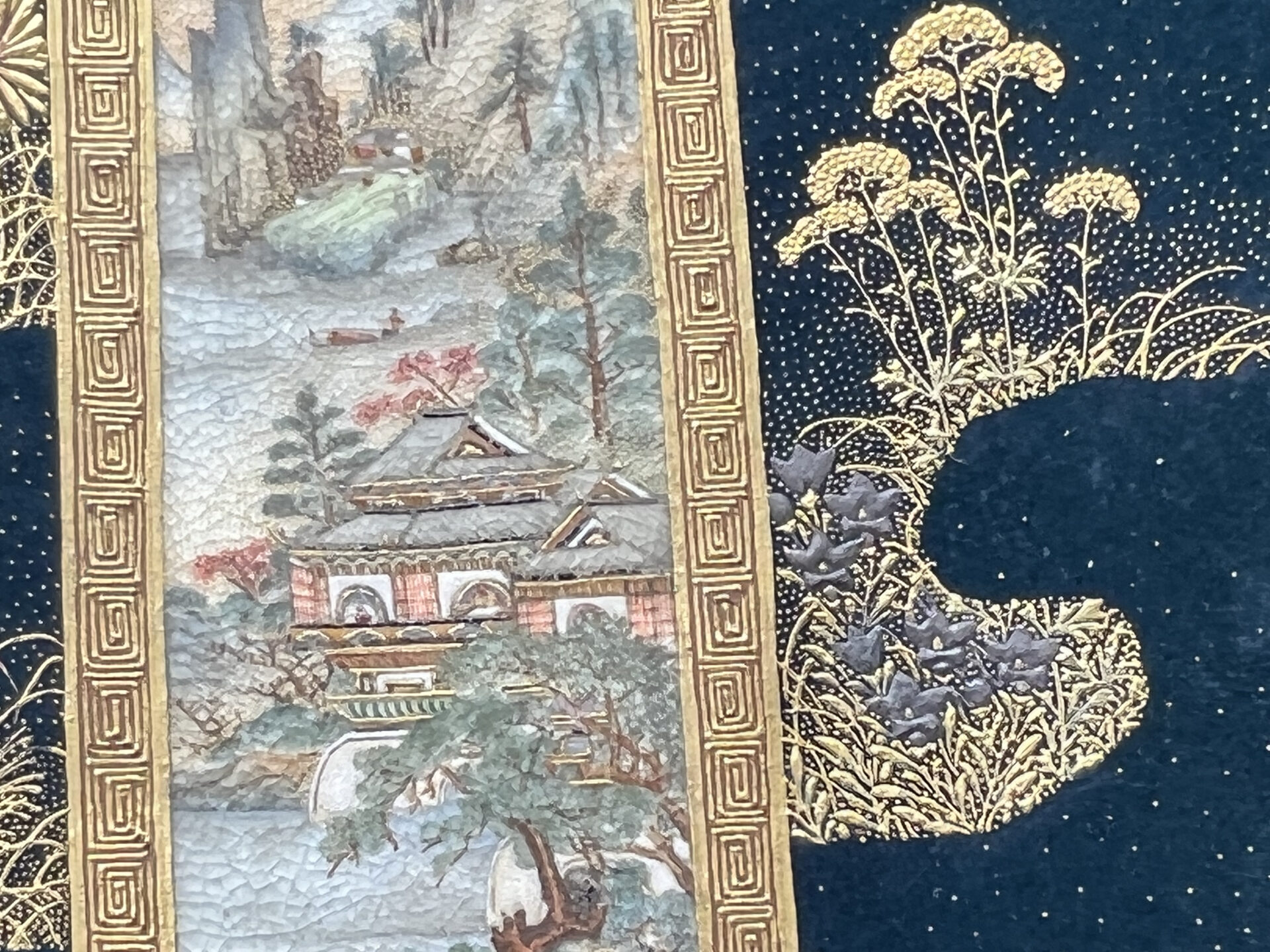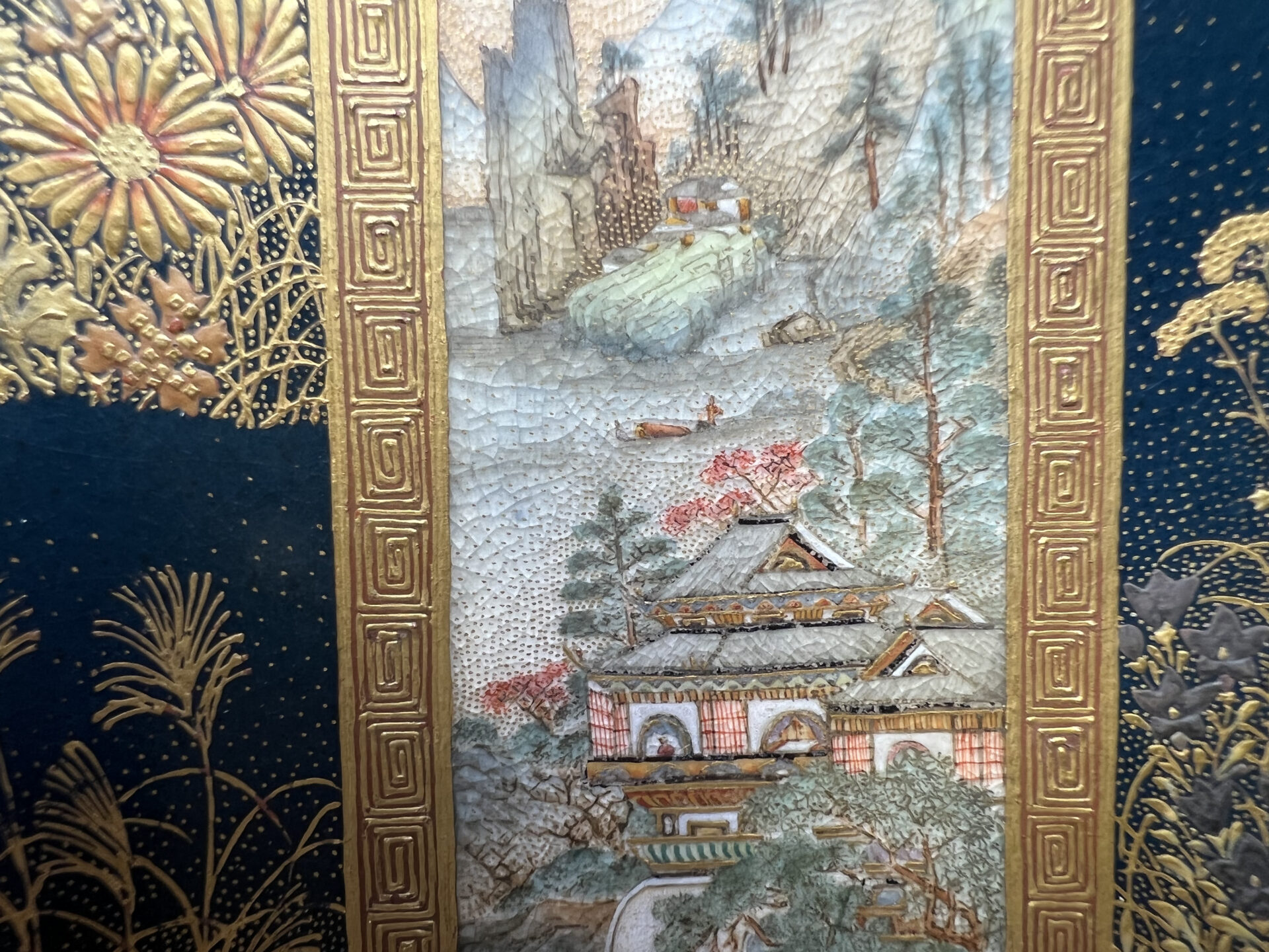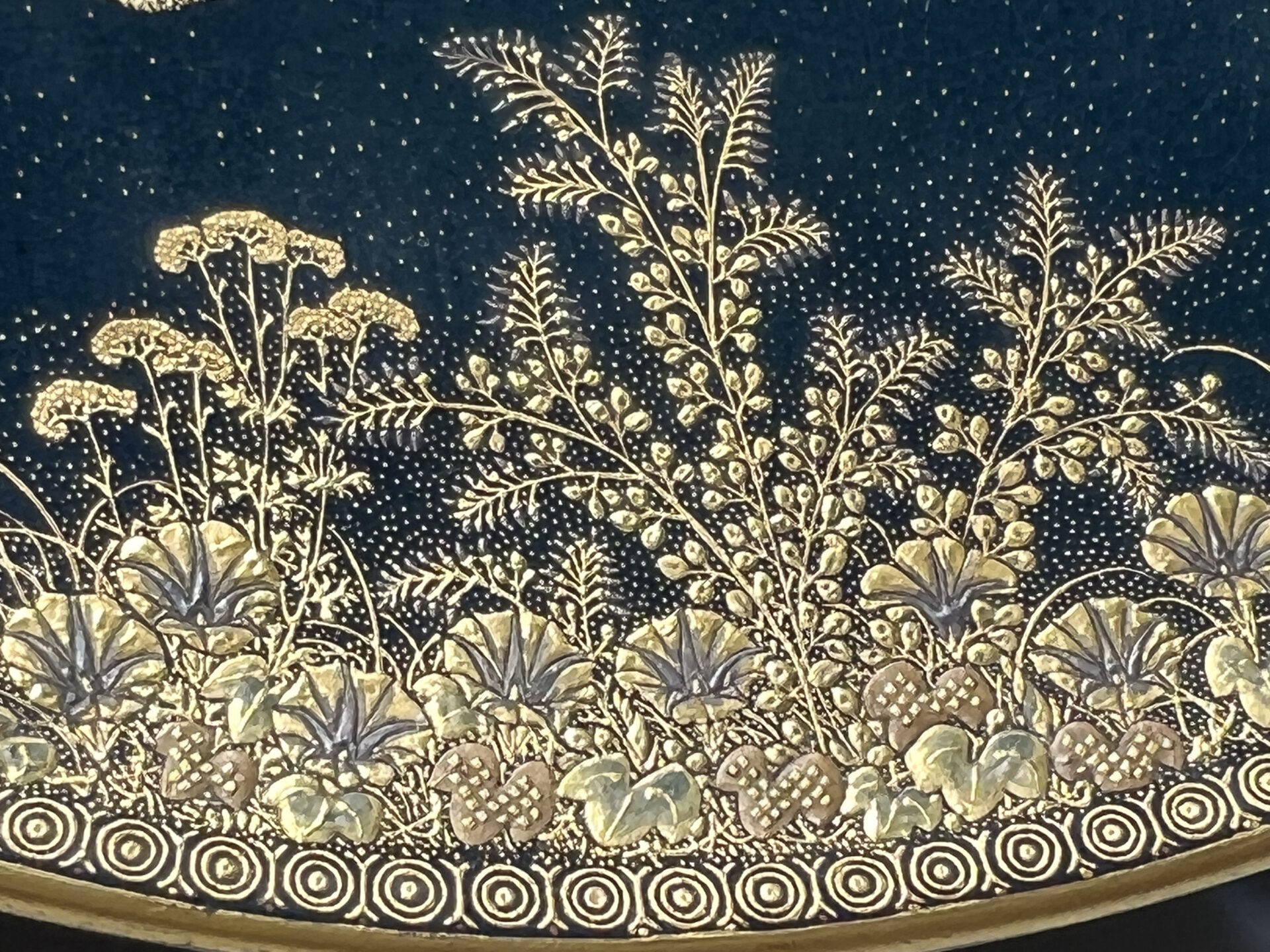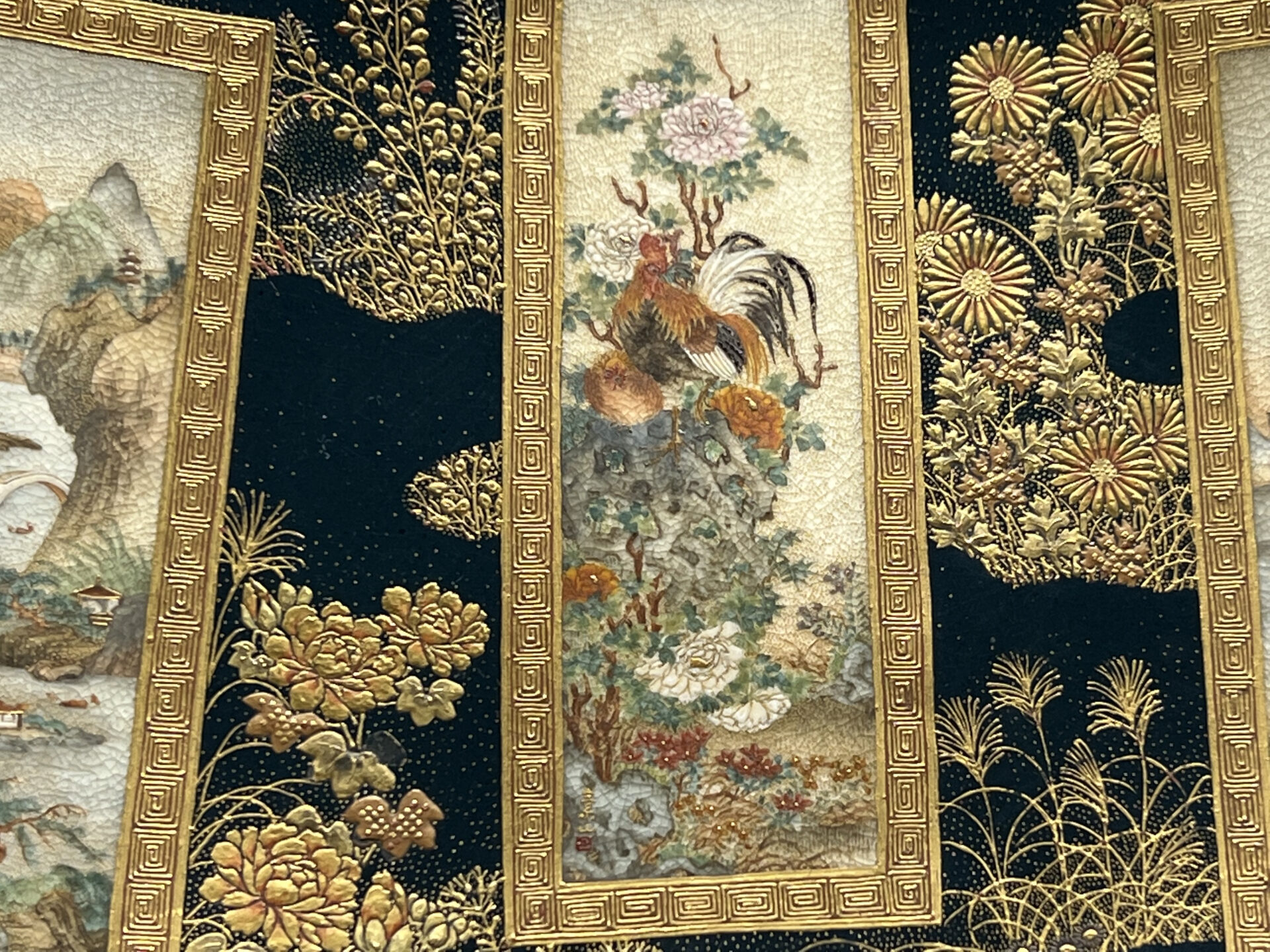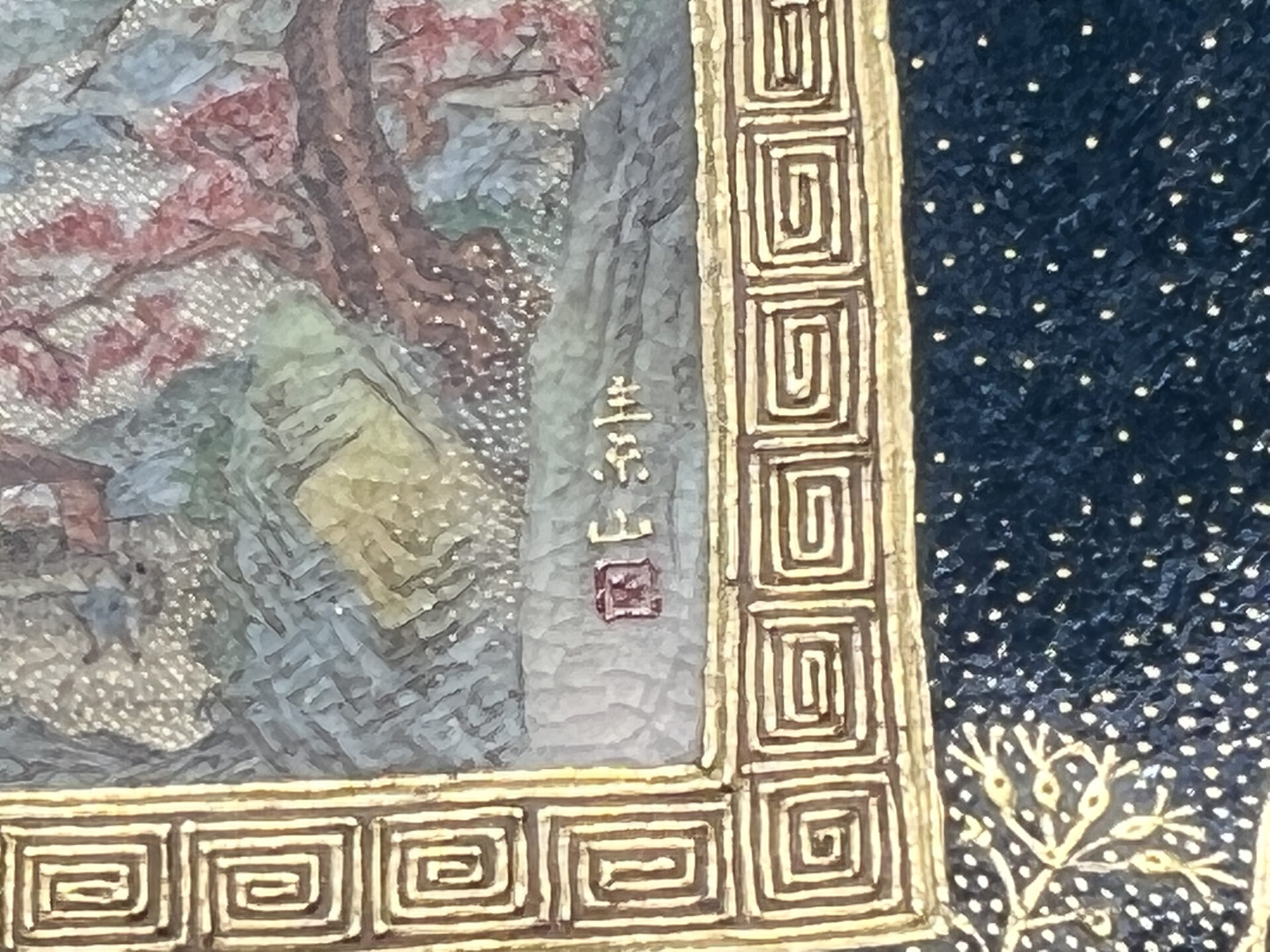 S019 錦光山造 素山画 緑釉金彩草花文風景図飾皿【SOLD】