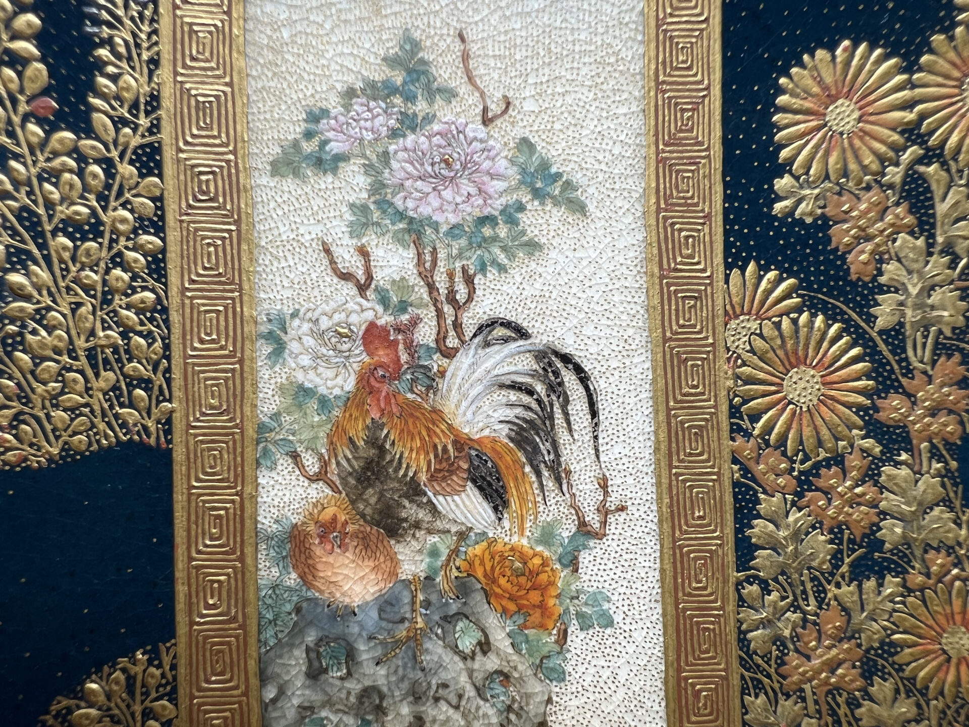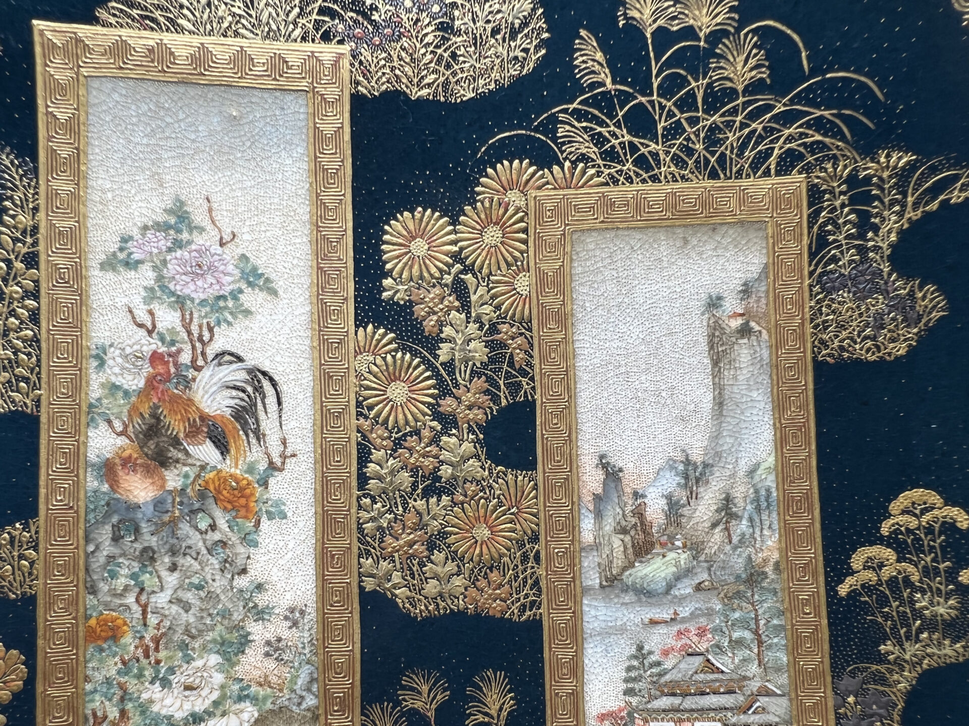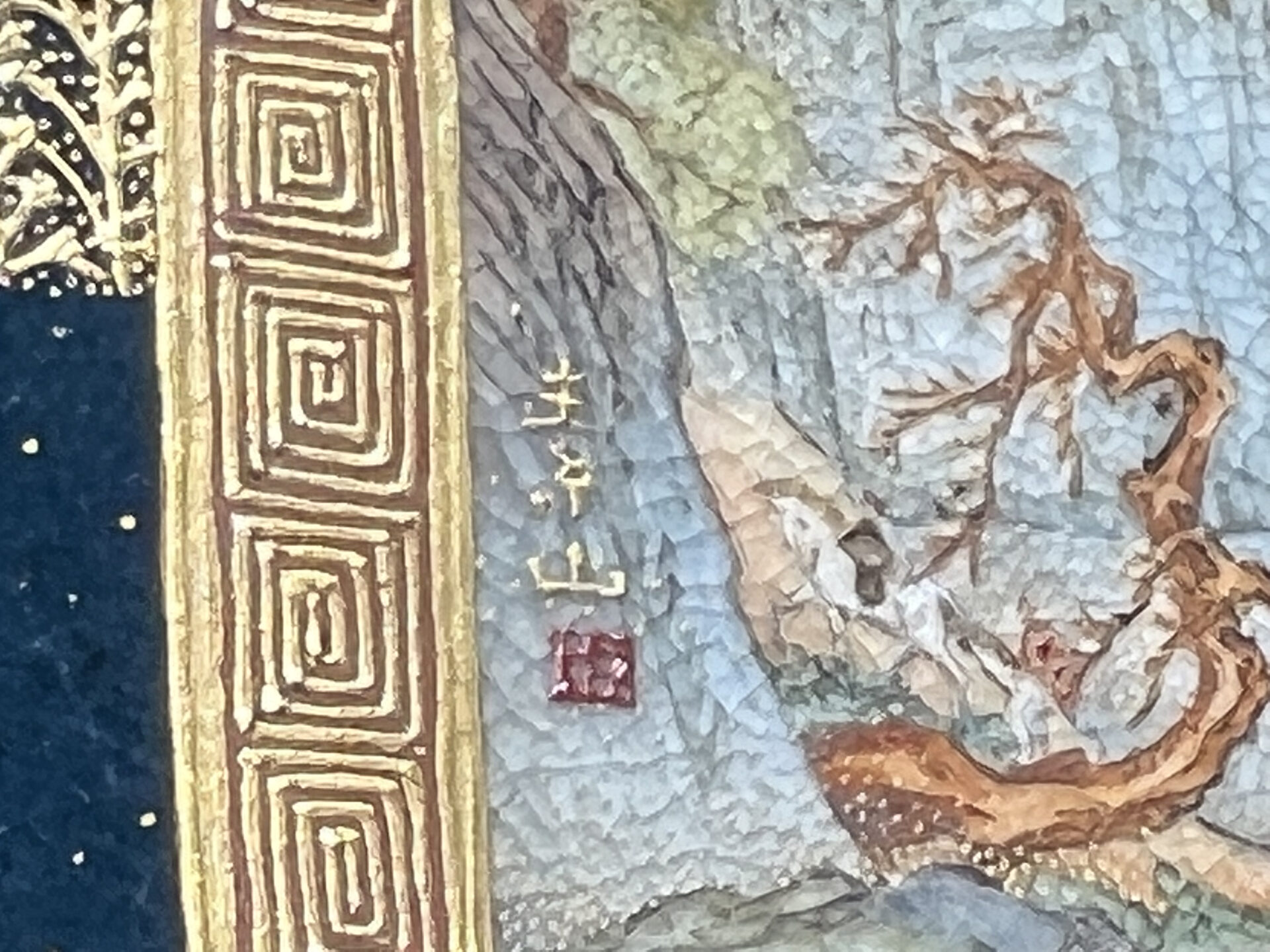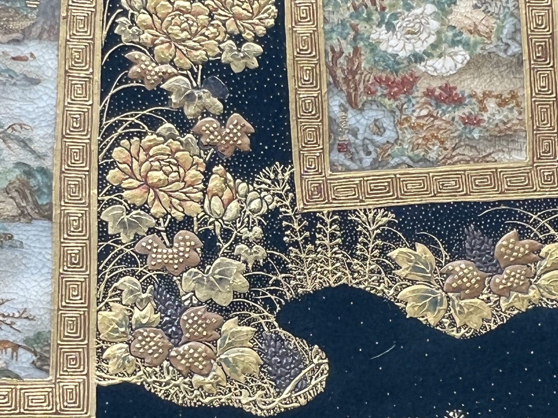 S019 錦光山造 素山画 緑釉金彩草花文風景図飾皿【SOLD】