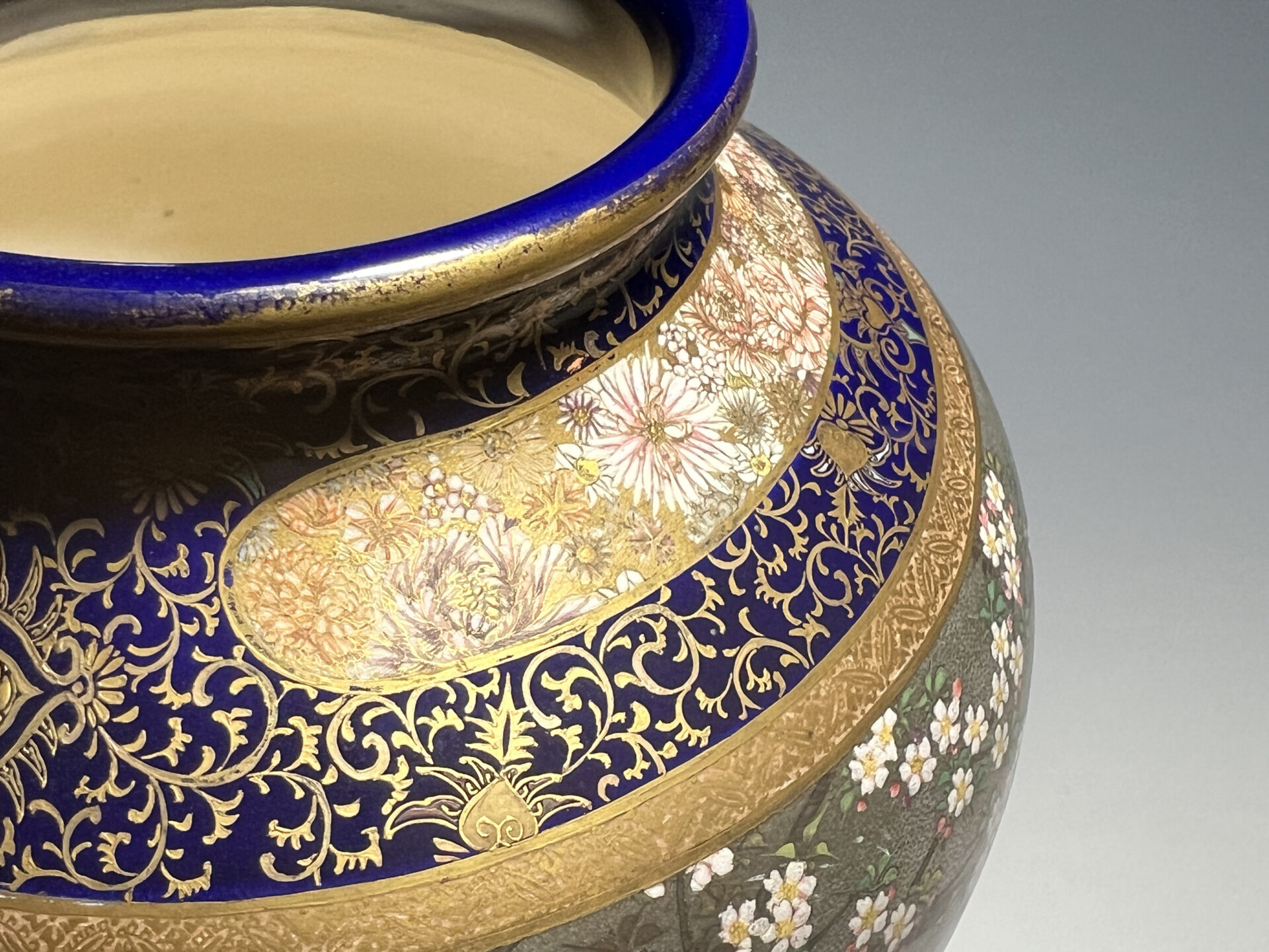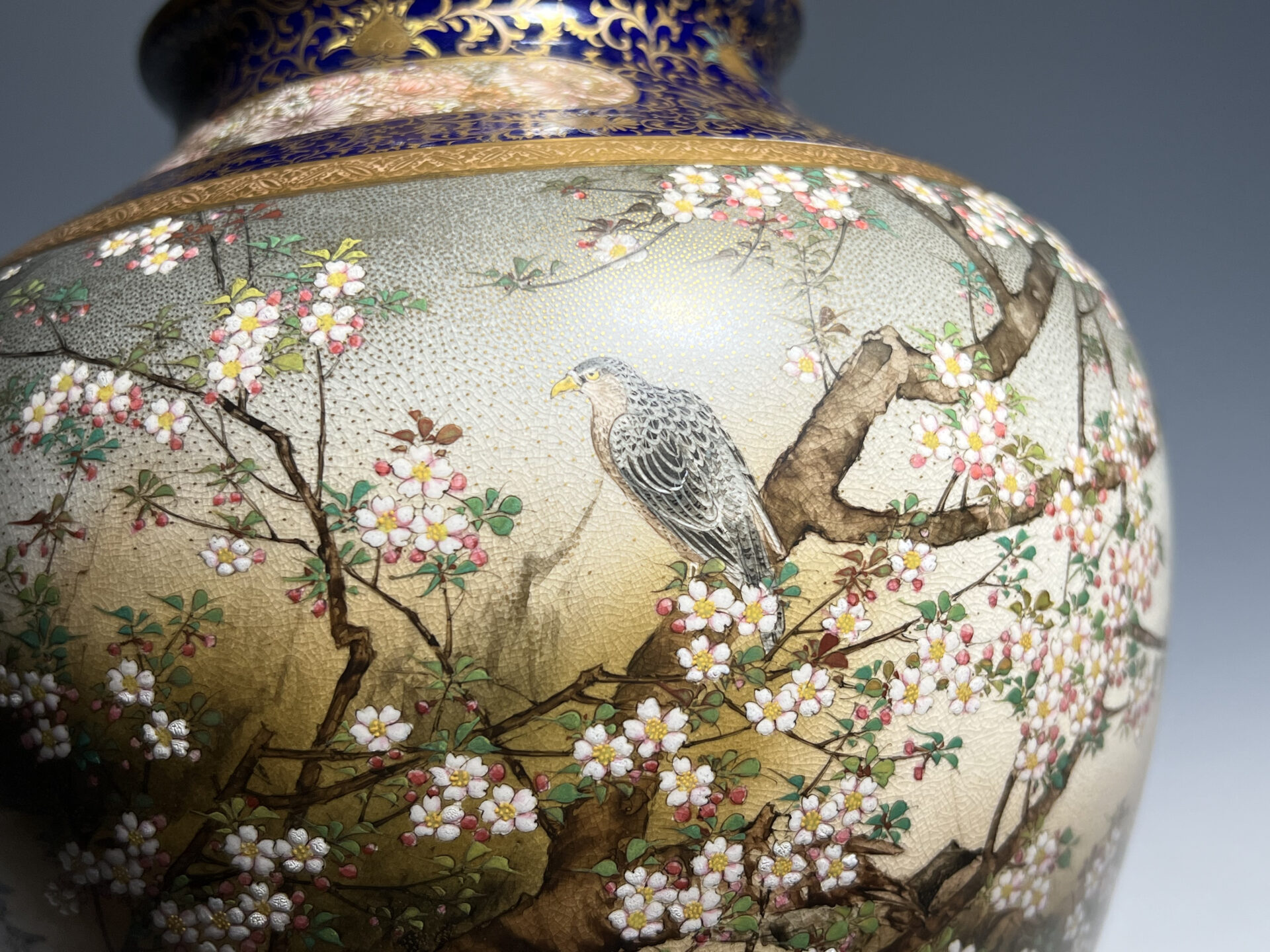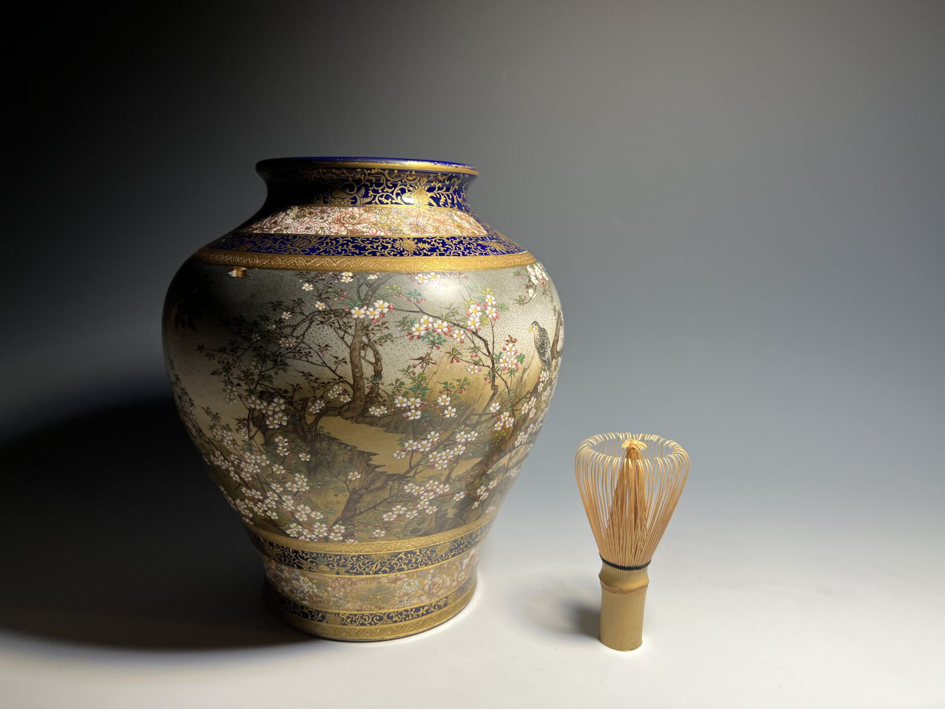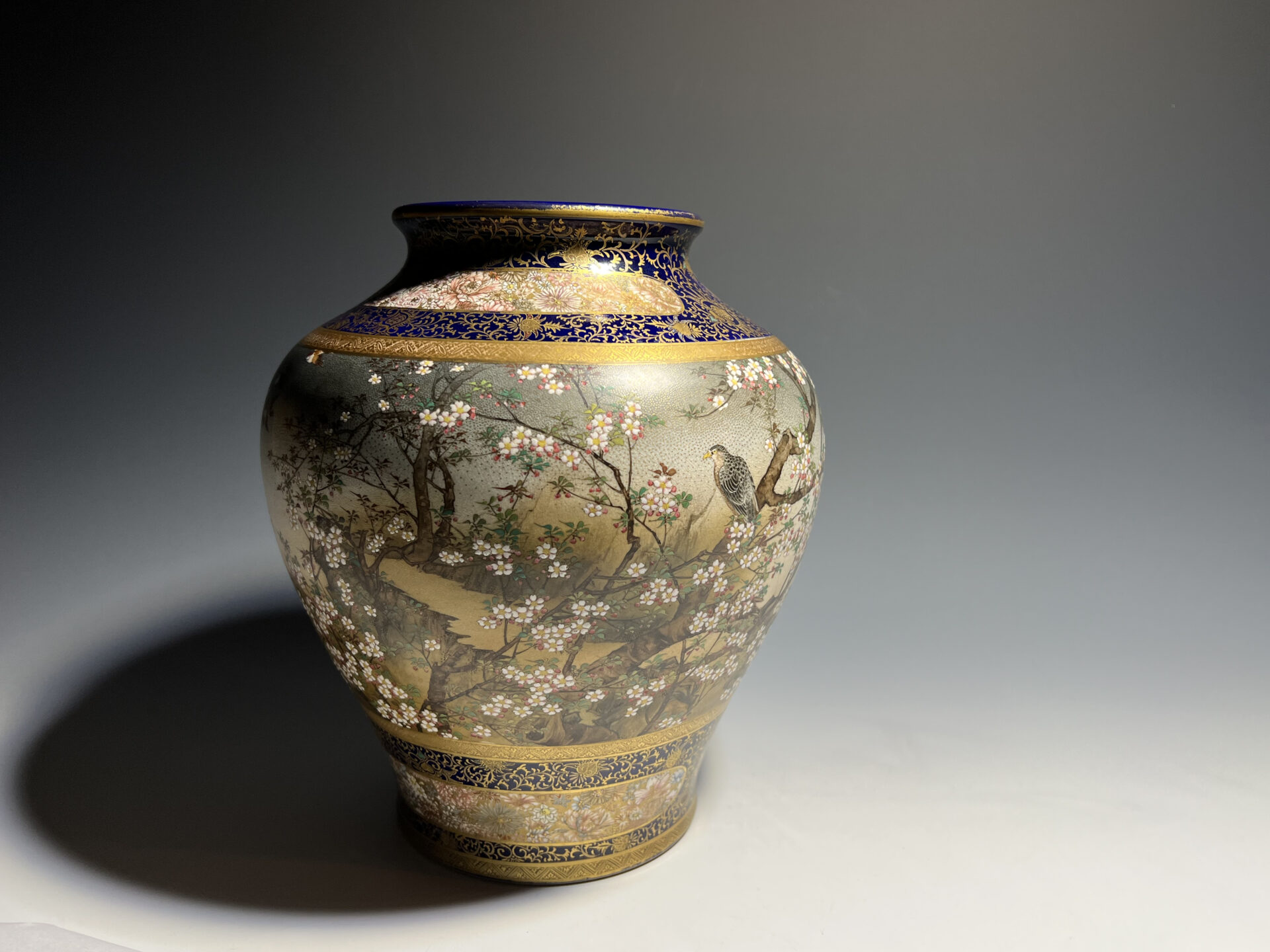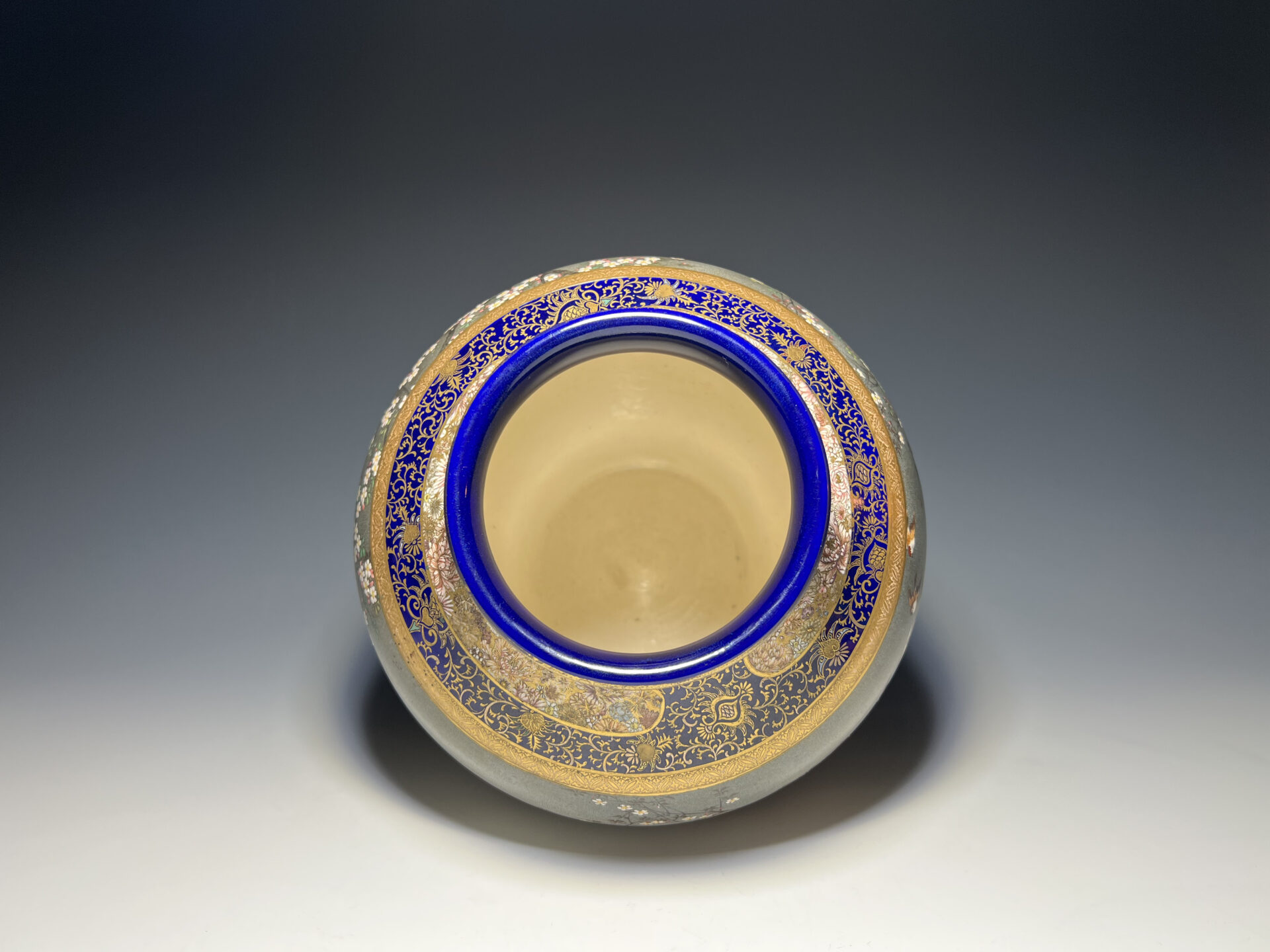 S023 京都錦光山造 瑠璃金彩文花鳥図花瓶【SOLD】