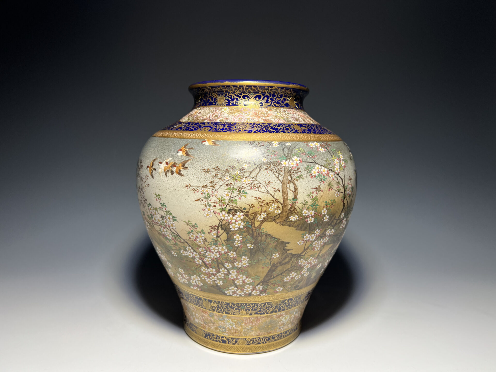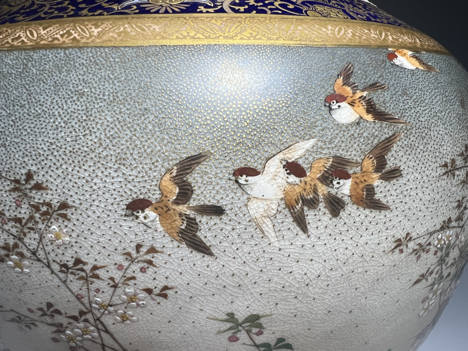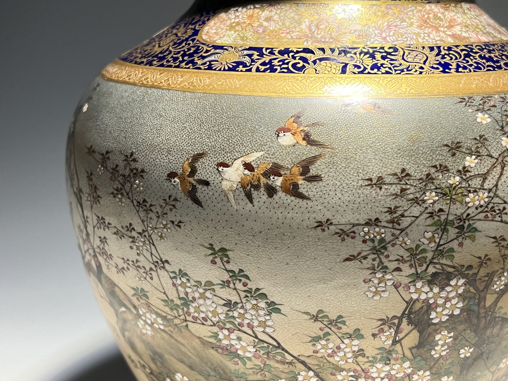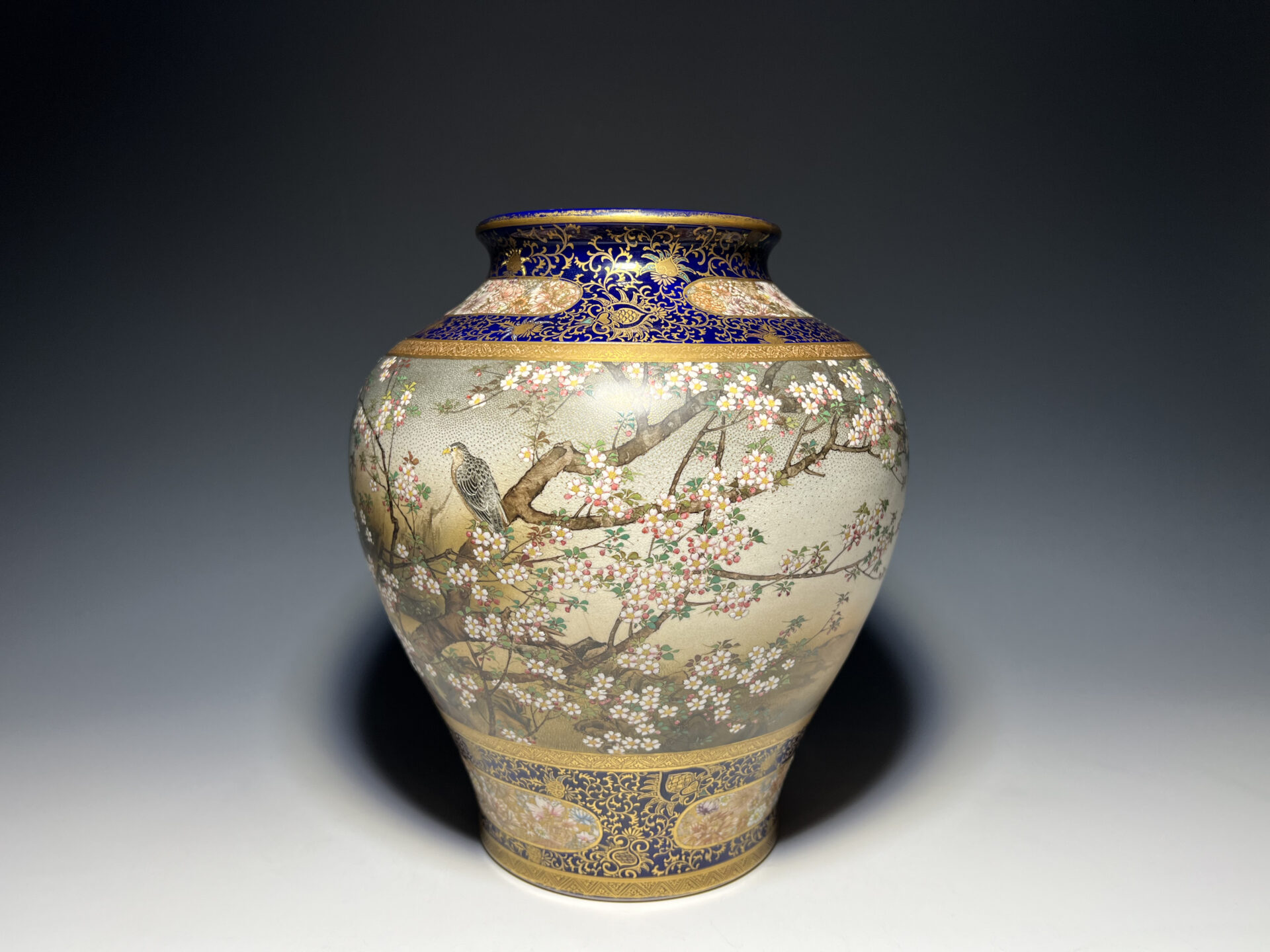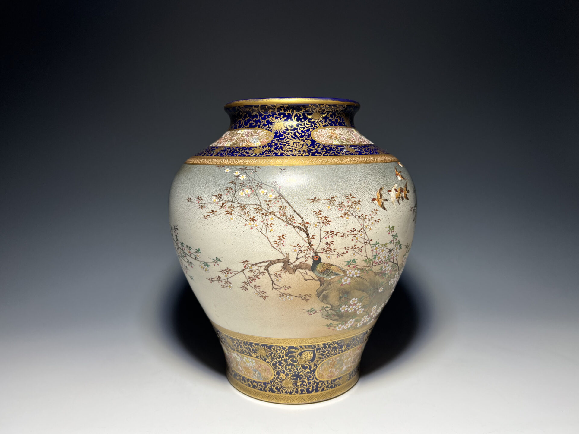 S023 京都錦光山造 瑠璃金彩文花鳥図花瓶【SOLD】