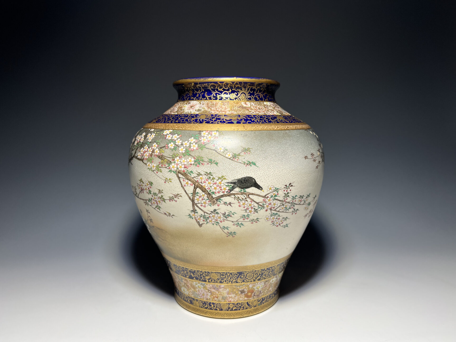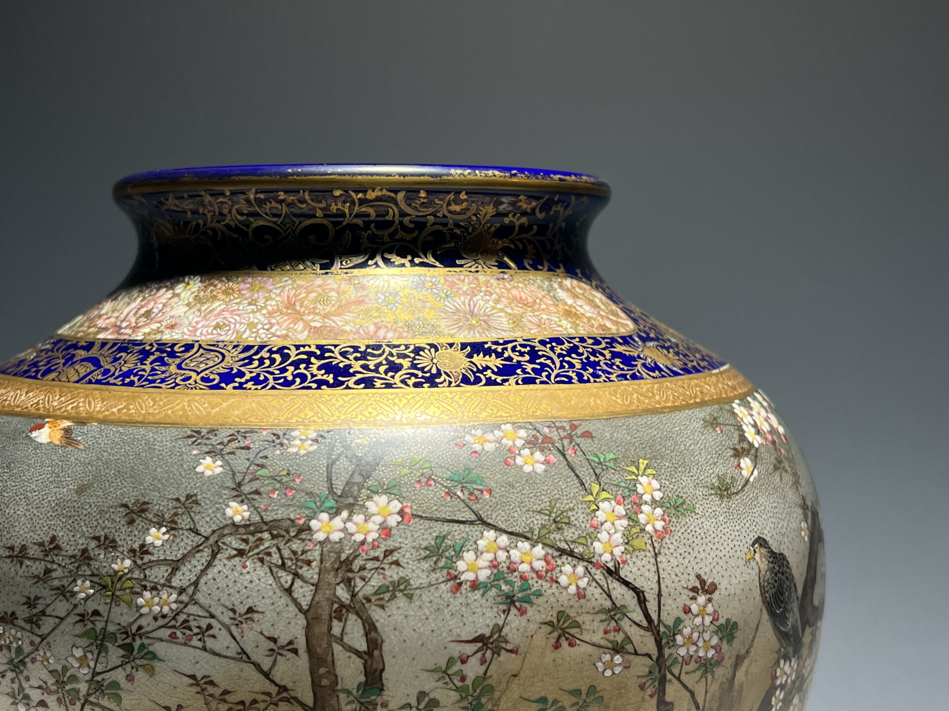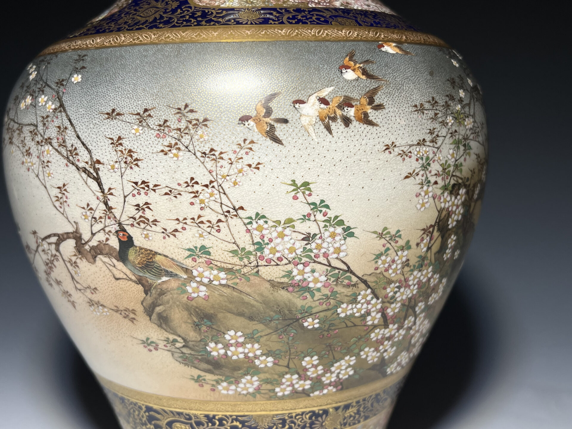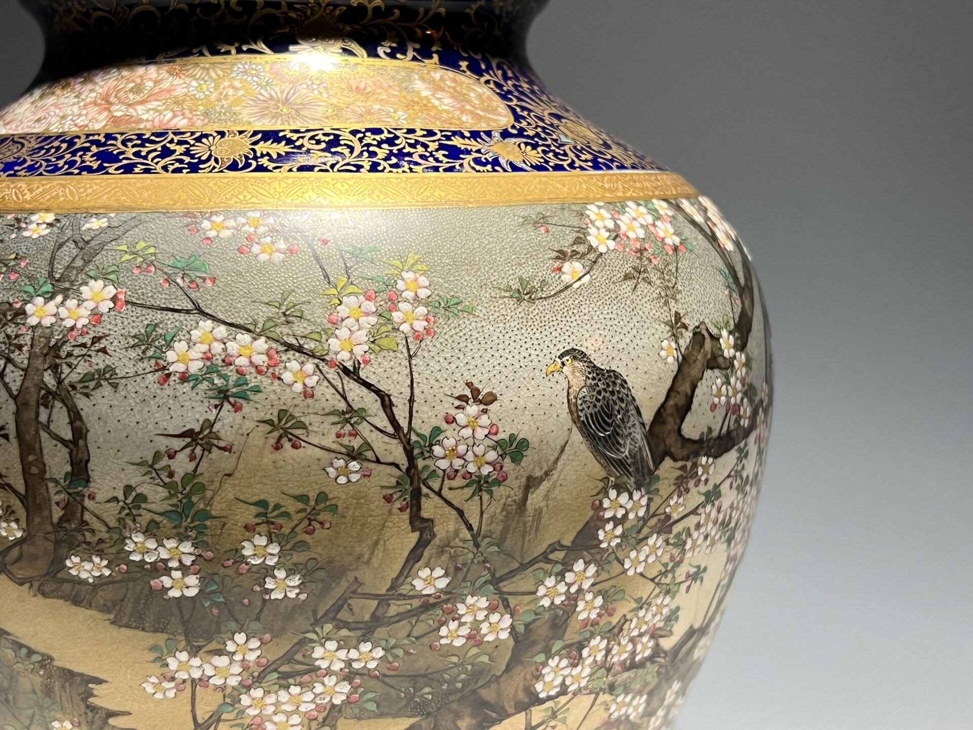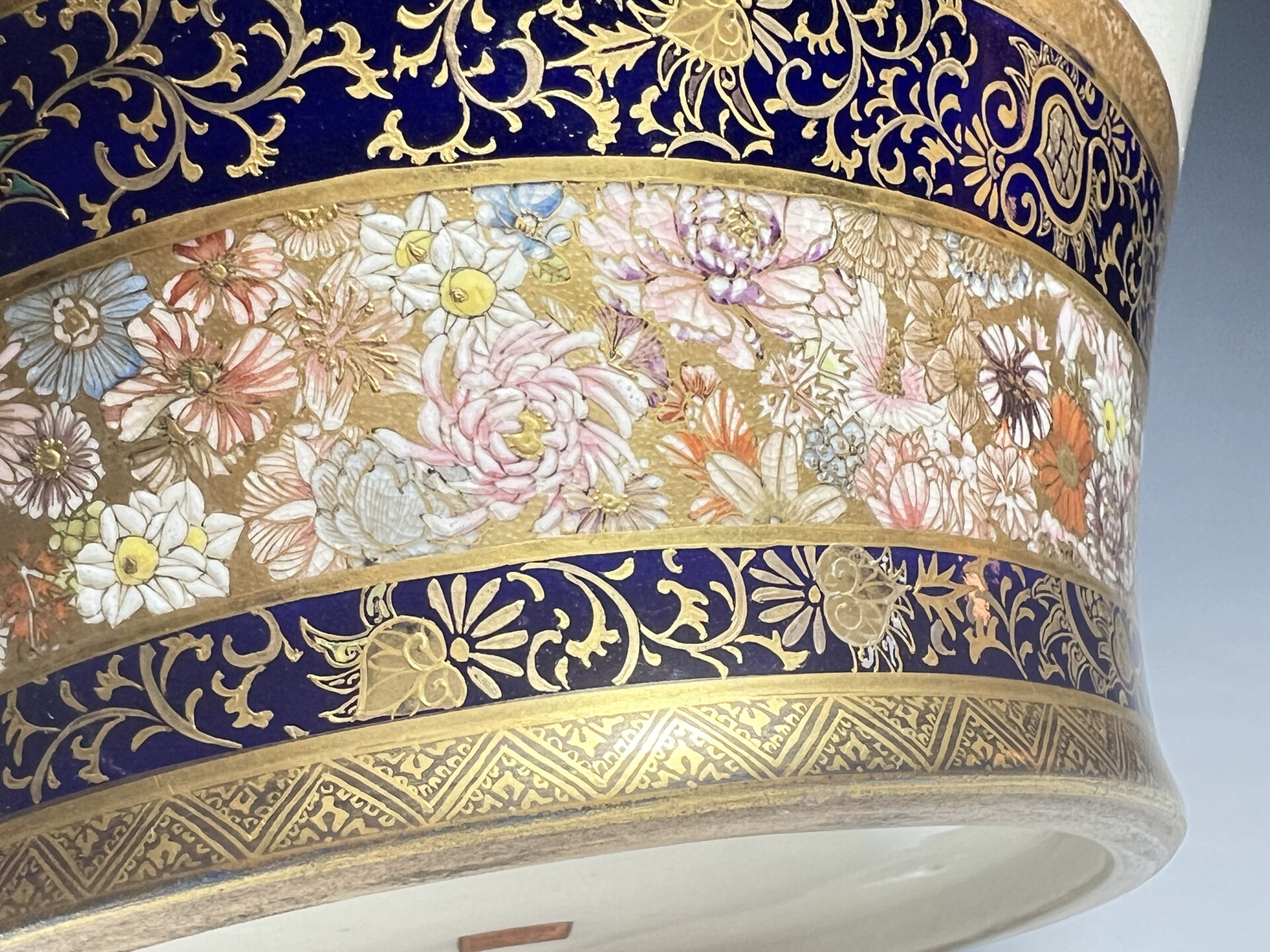 S023 京都錦光山造 瑠璃金彩文花鳥図花瓶【SOLD】