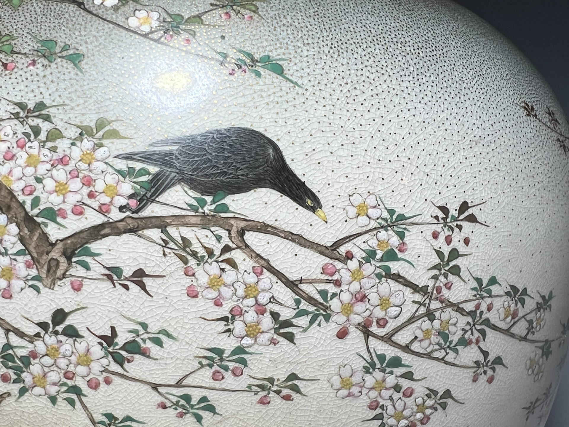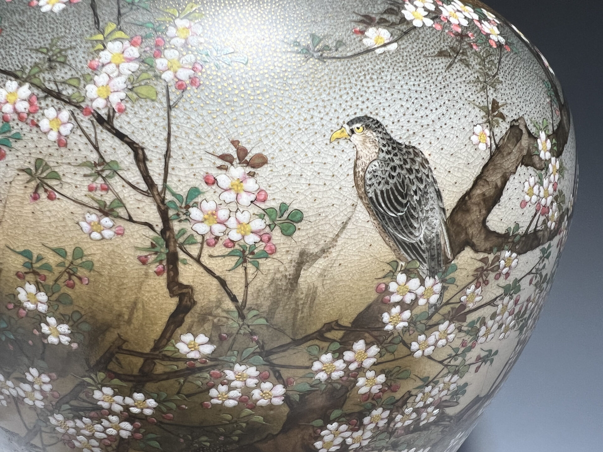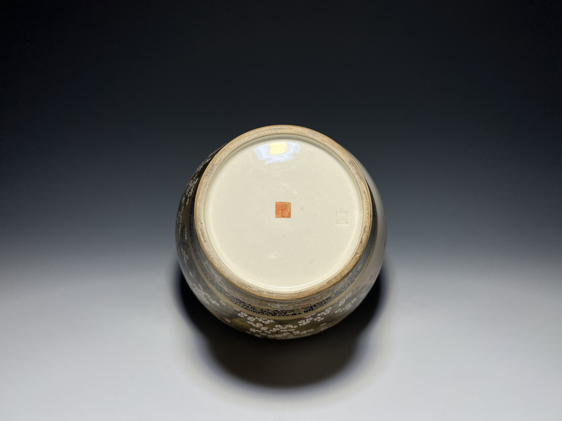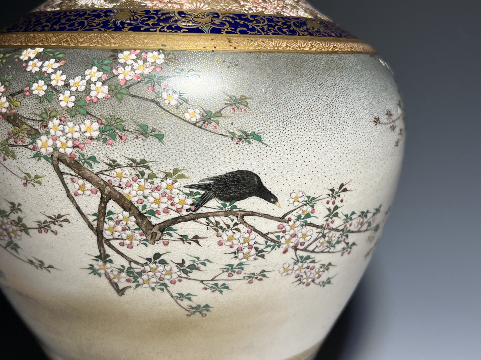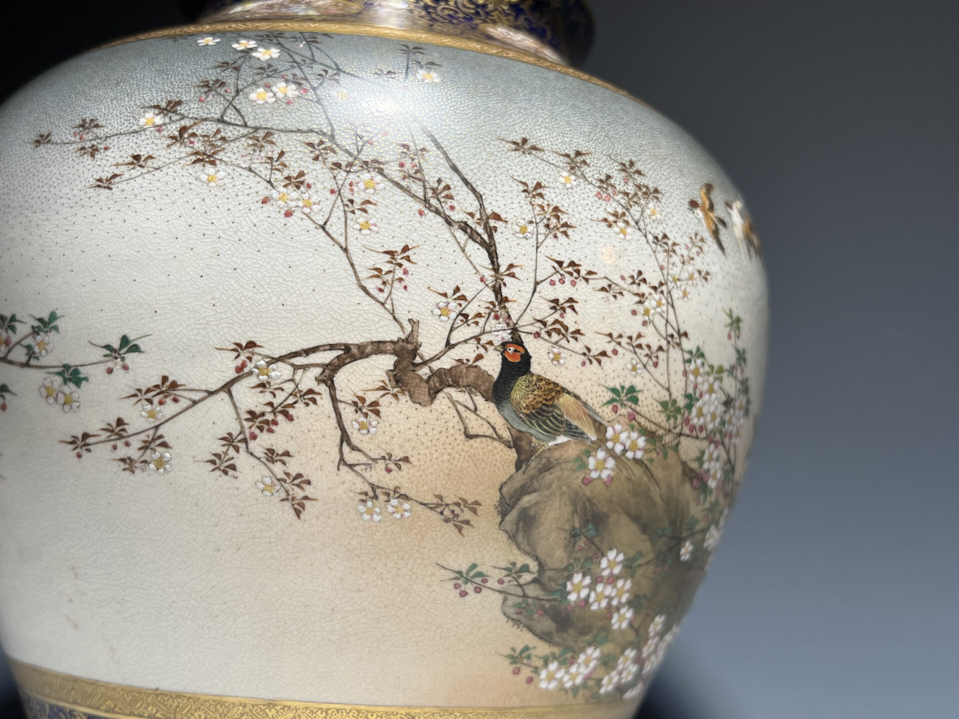 S023 京都錦光山造 瑠璃金彩文花鳥図花瓶【SOLD】