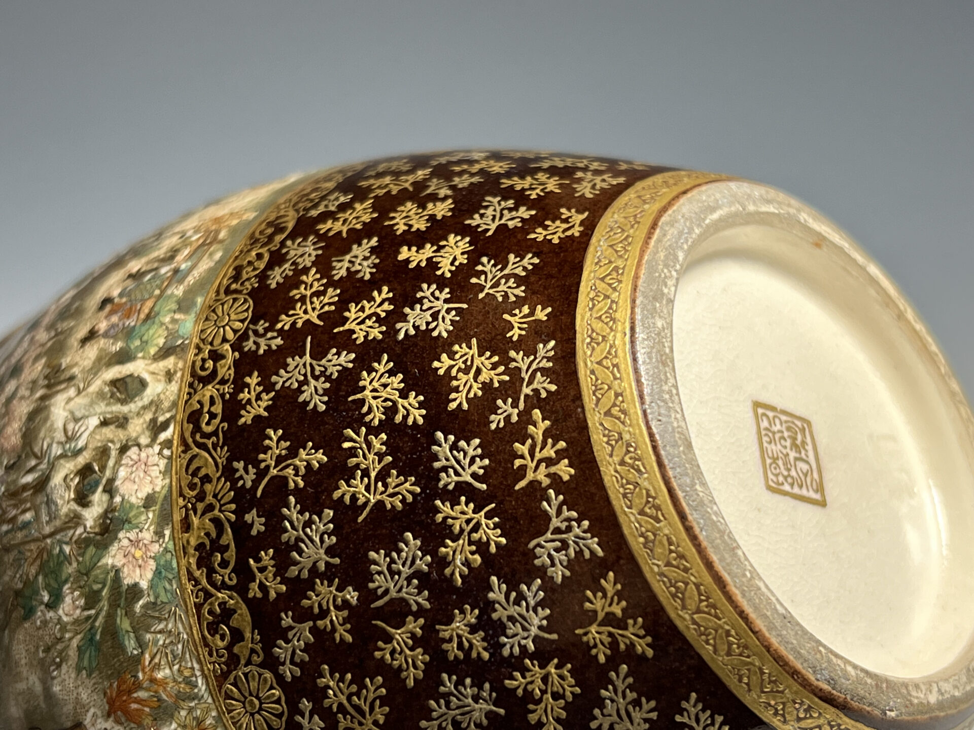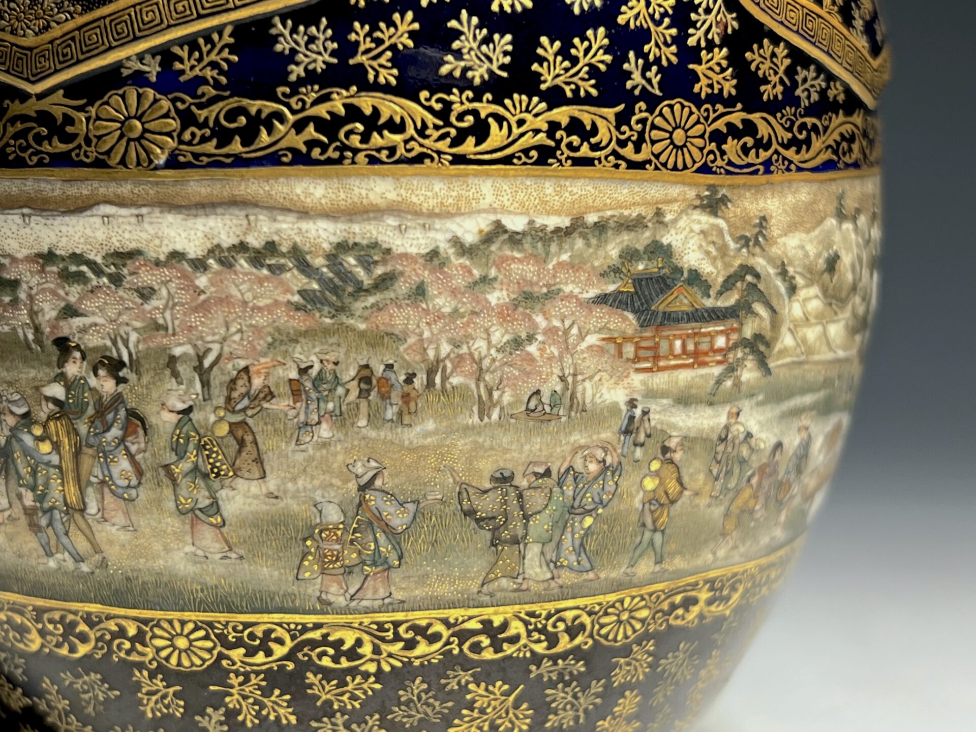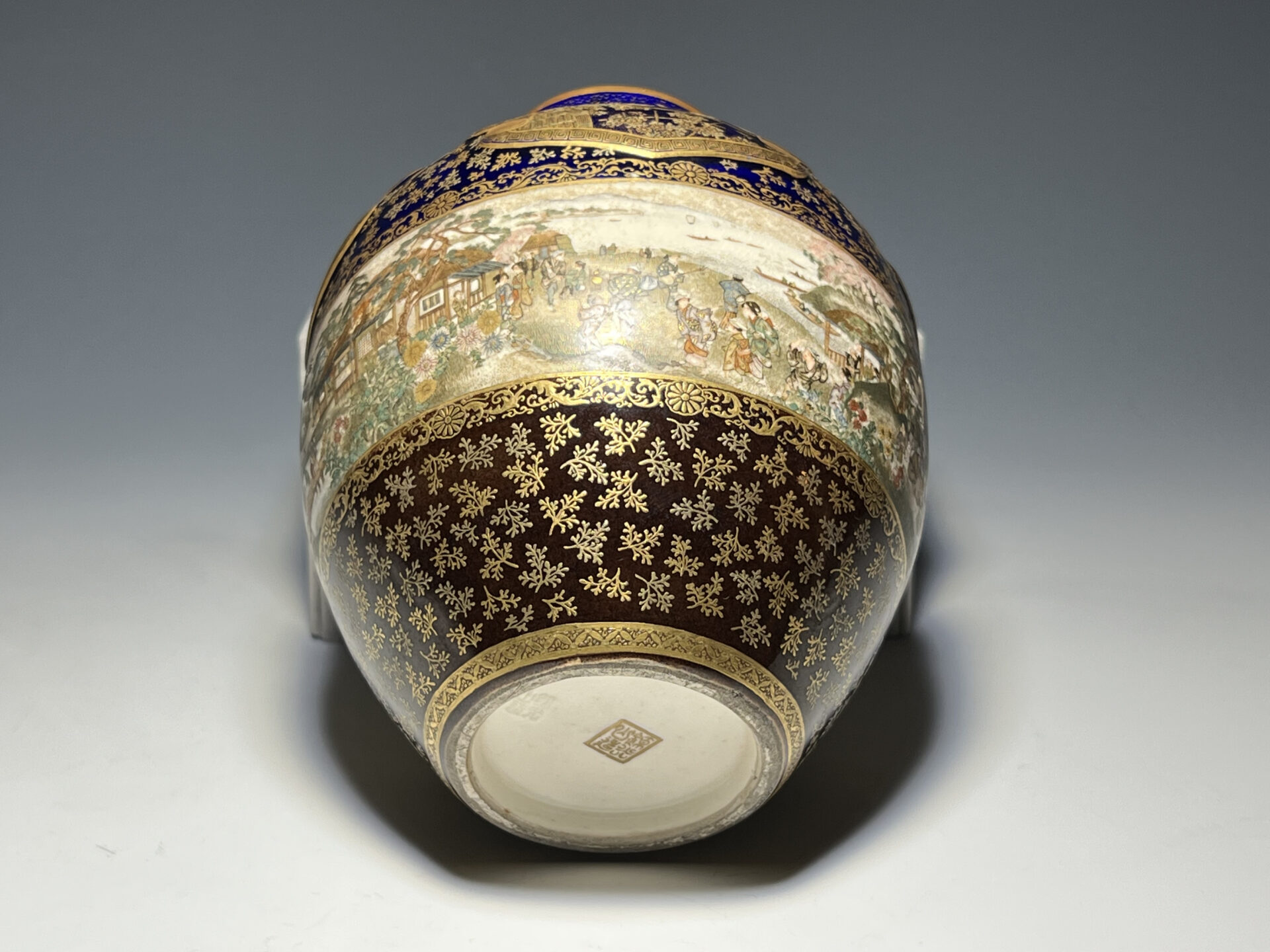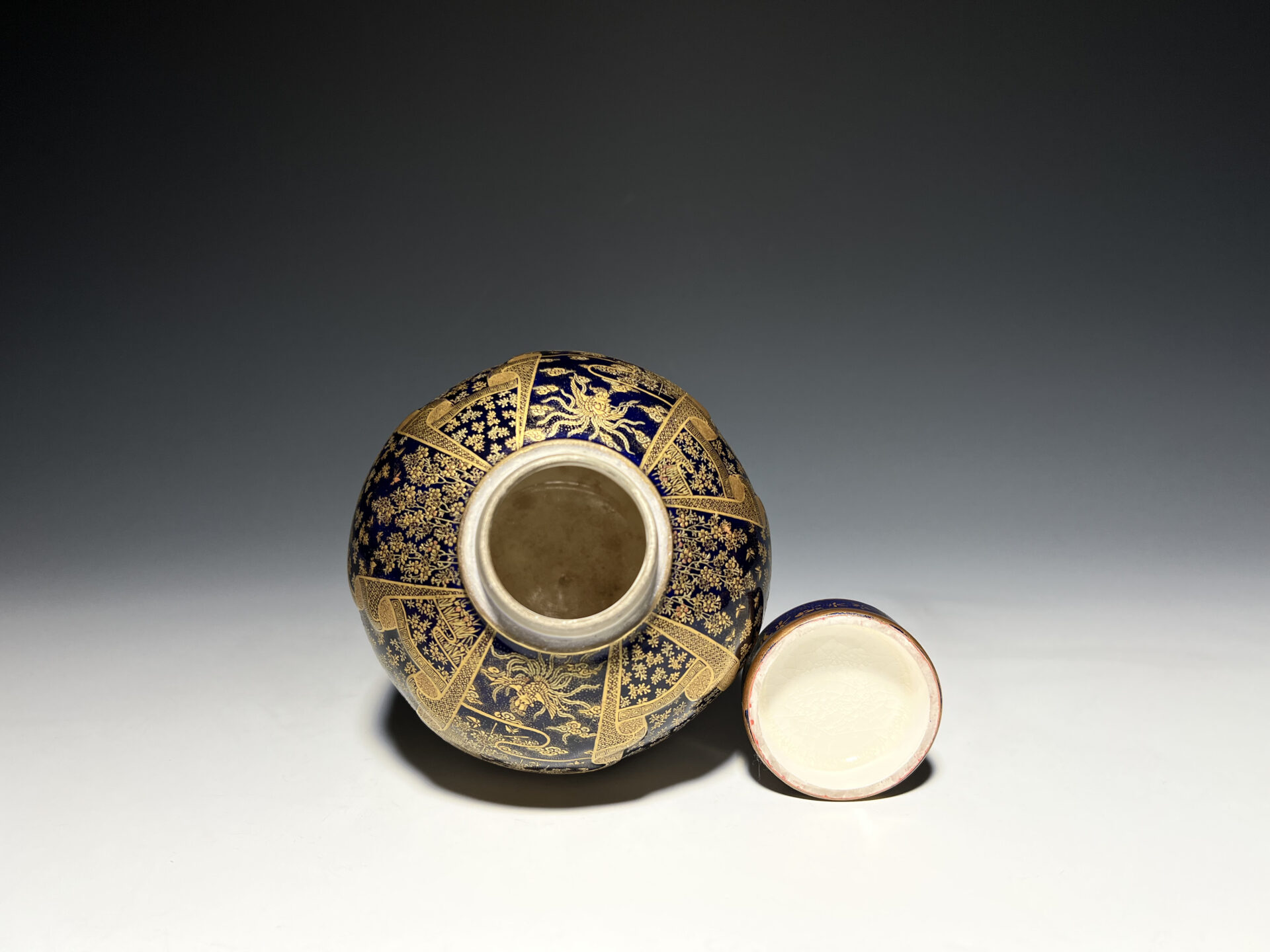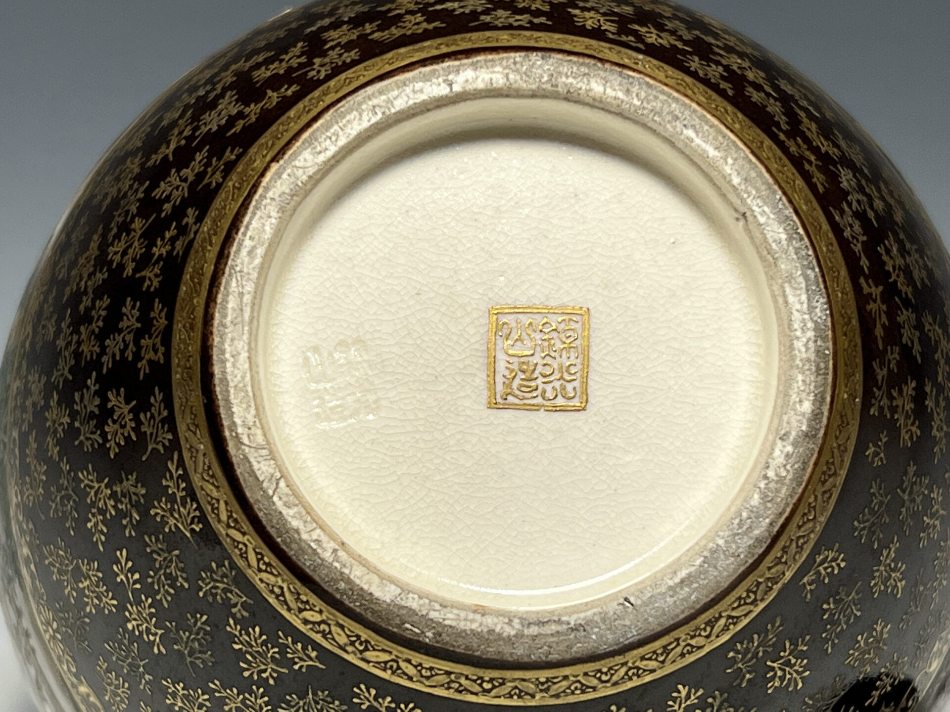 S024 京都錦光山造 瑠璃茶釉金彩文風俗図茶壺【SOLD】