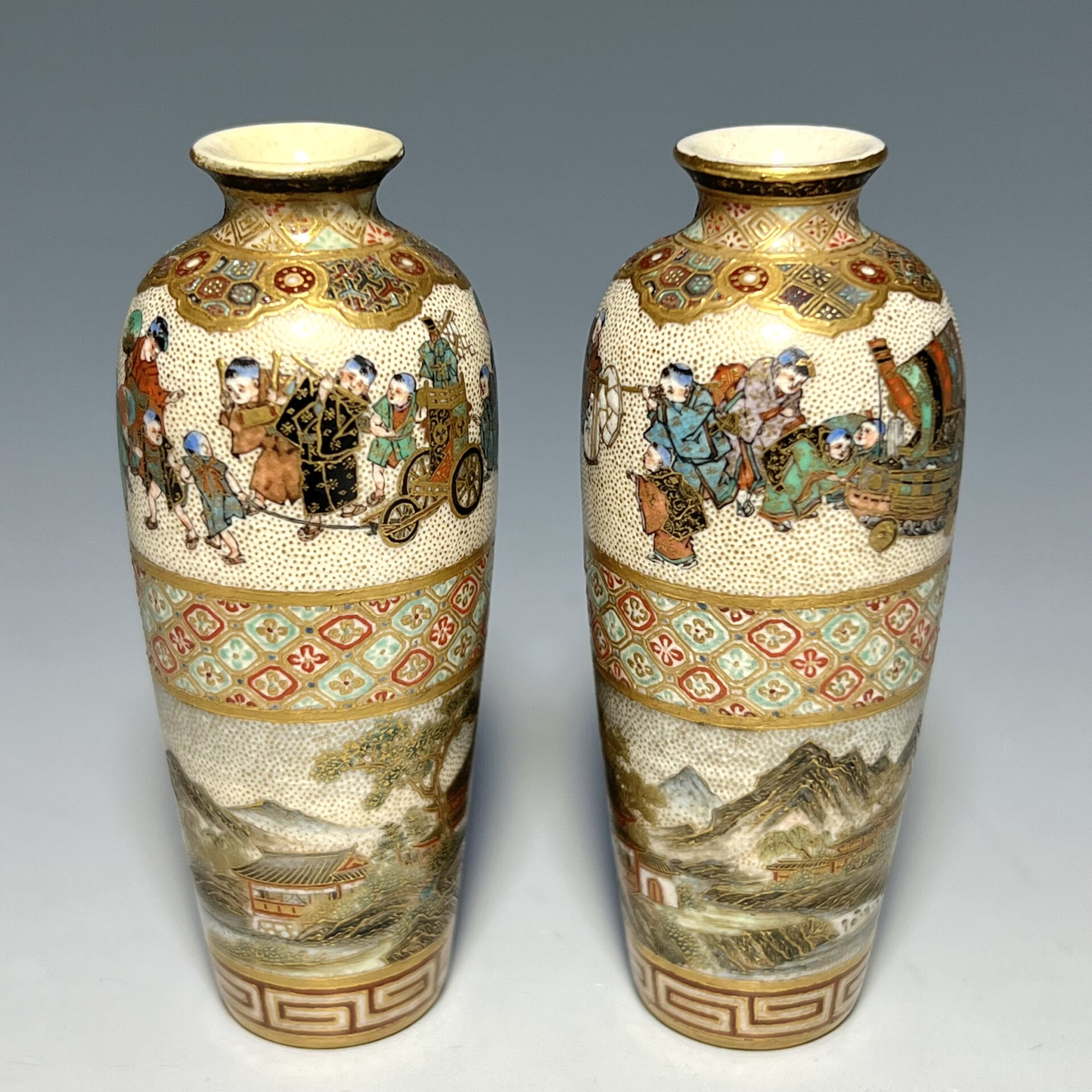S035 藪明山造唐子山水図小瓶一対【SOLD】