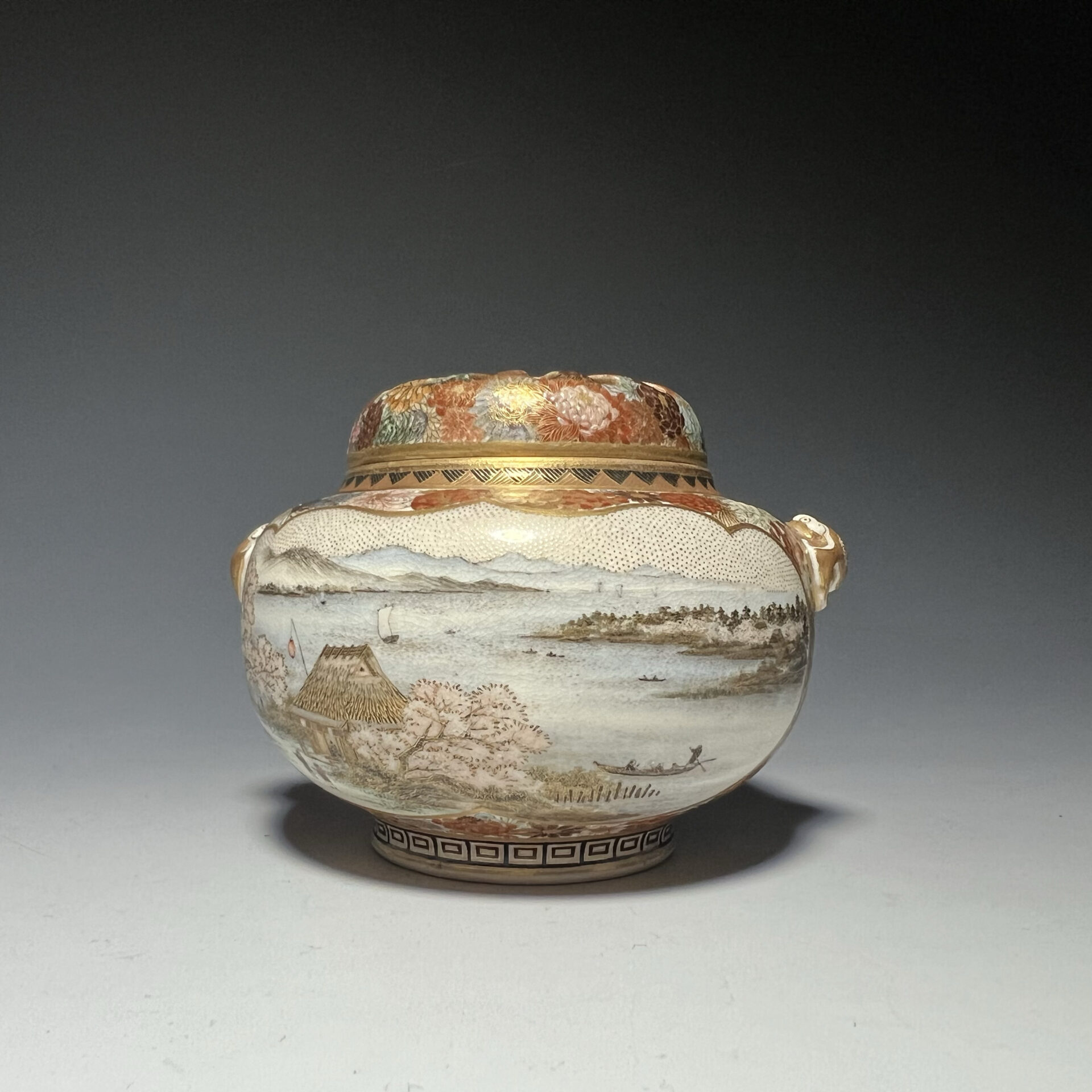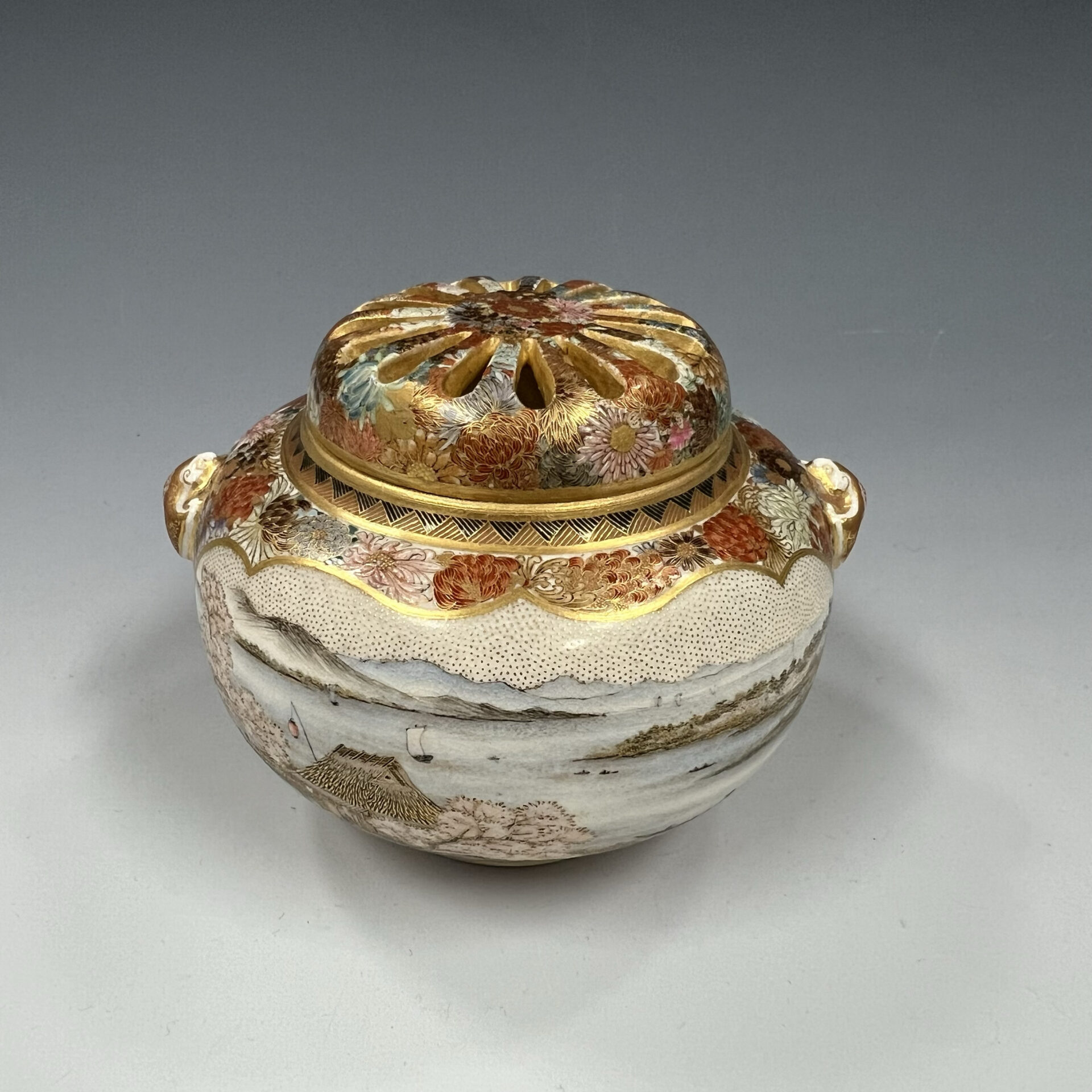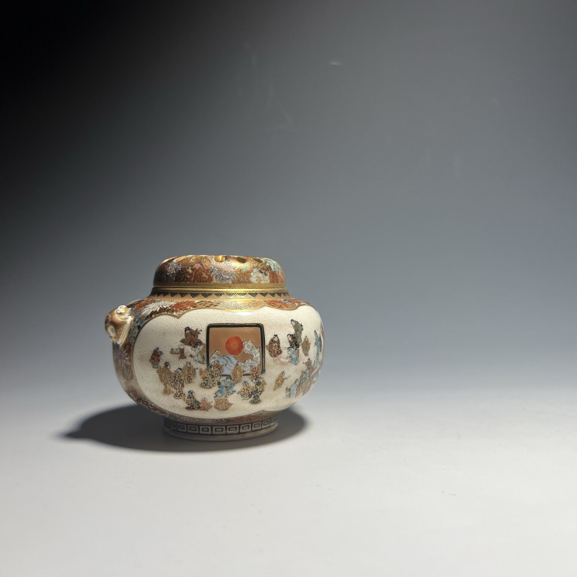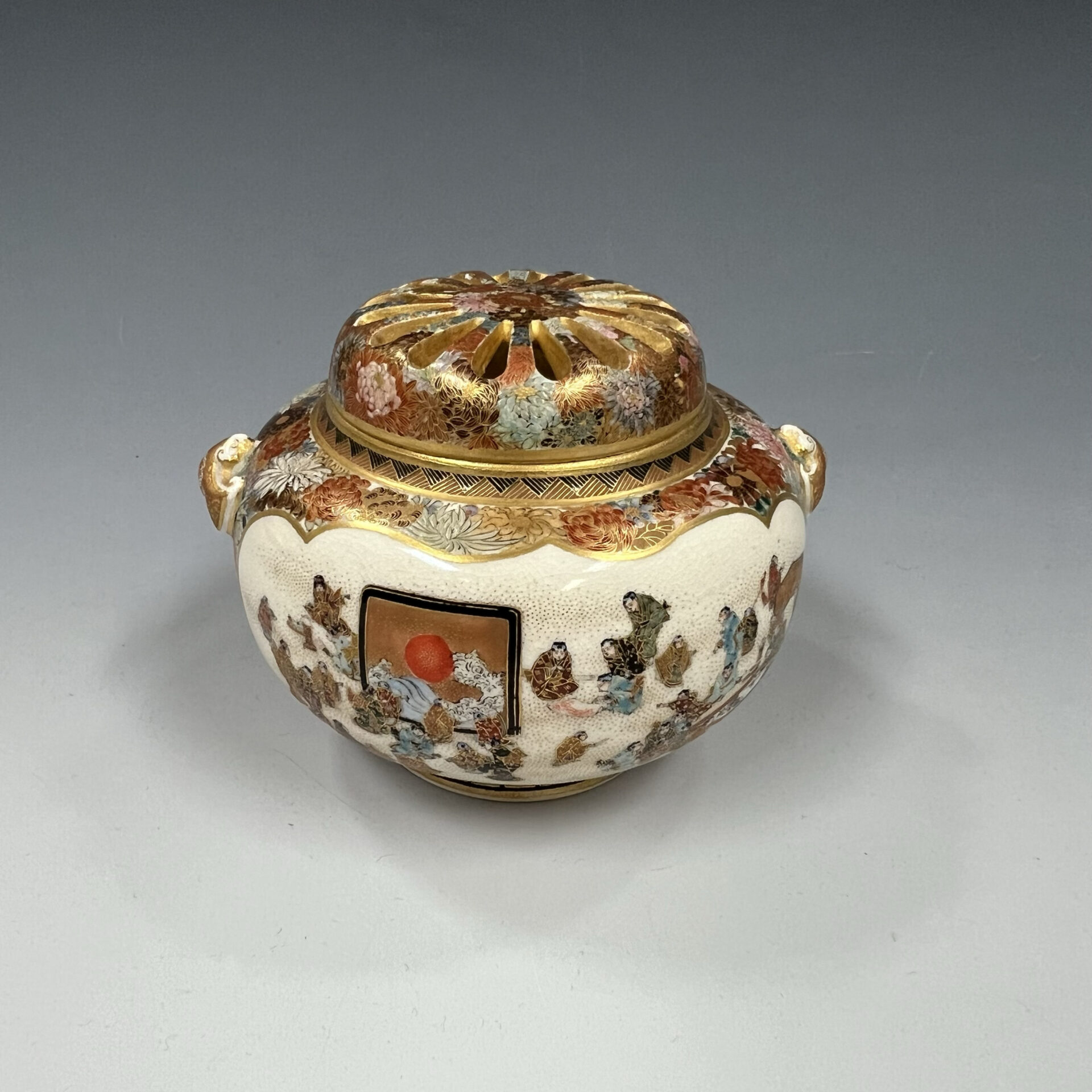 S057 藪明山造 菊花文風俗図香炉【SOLD】