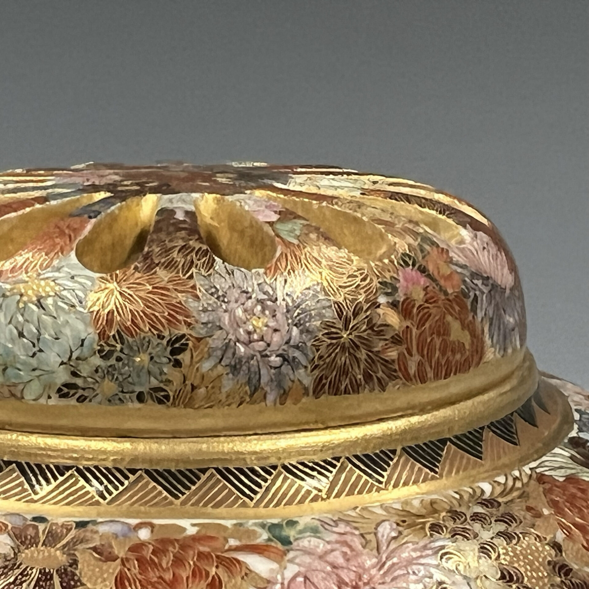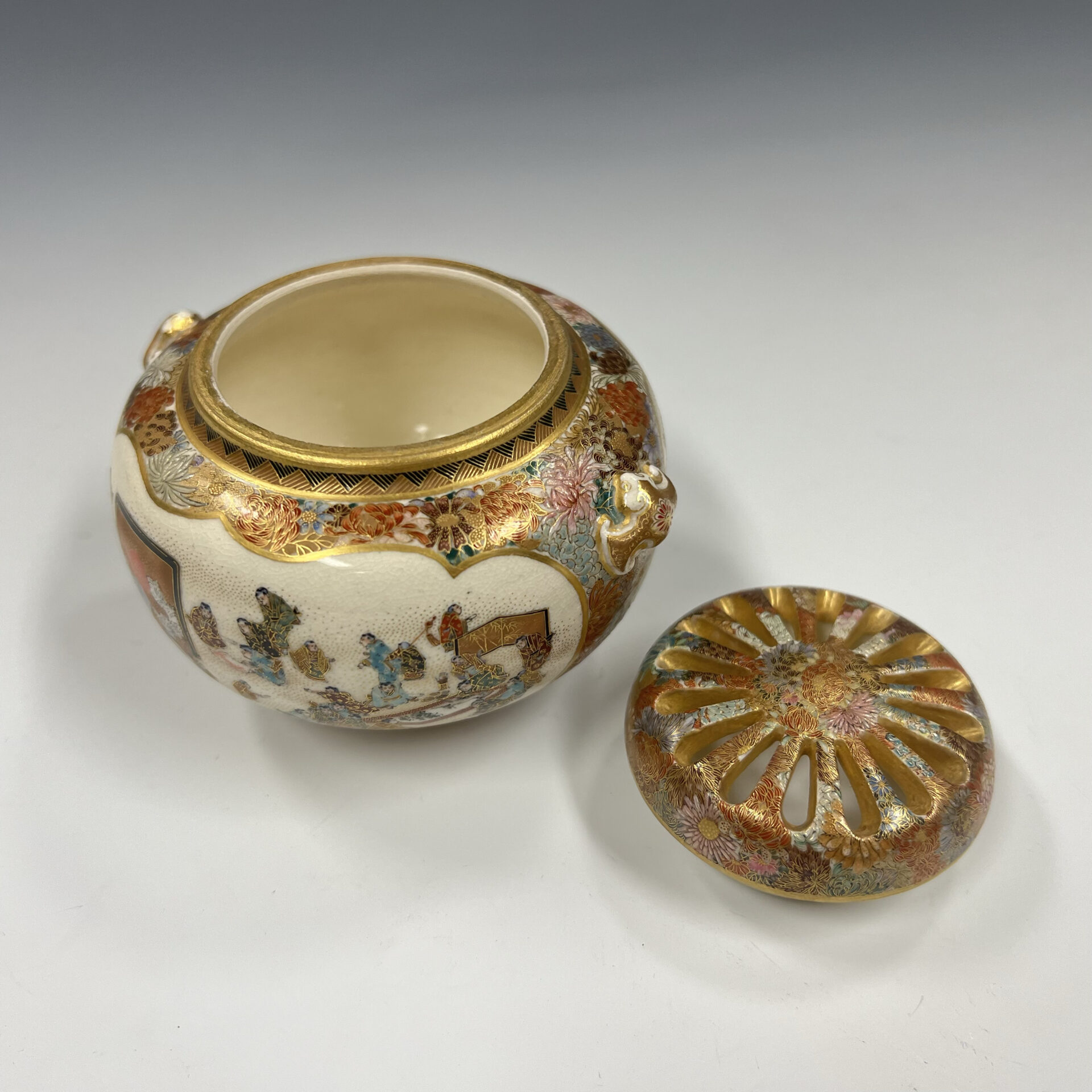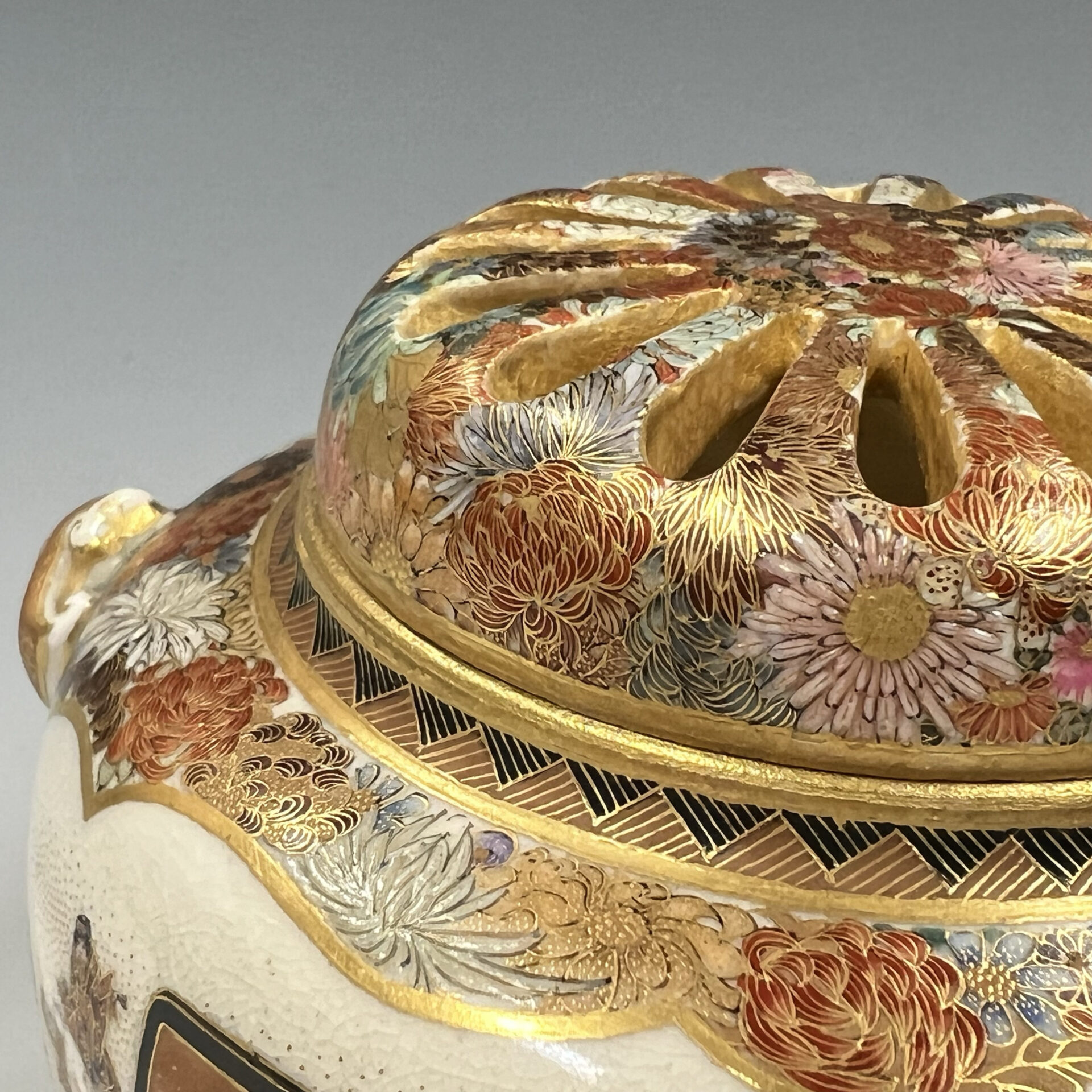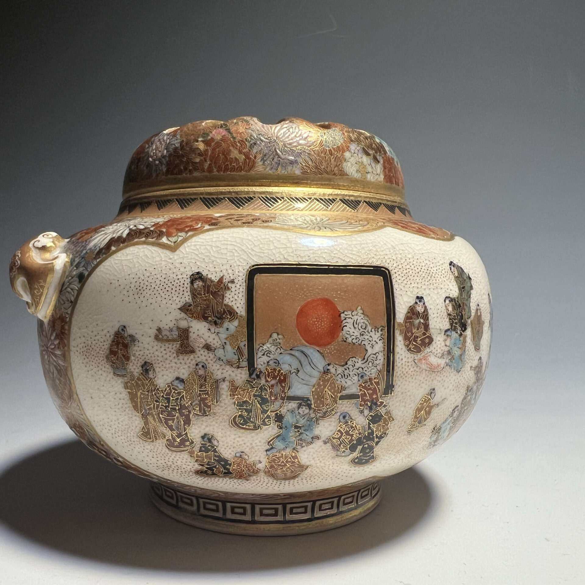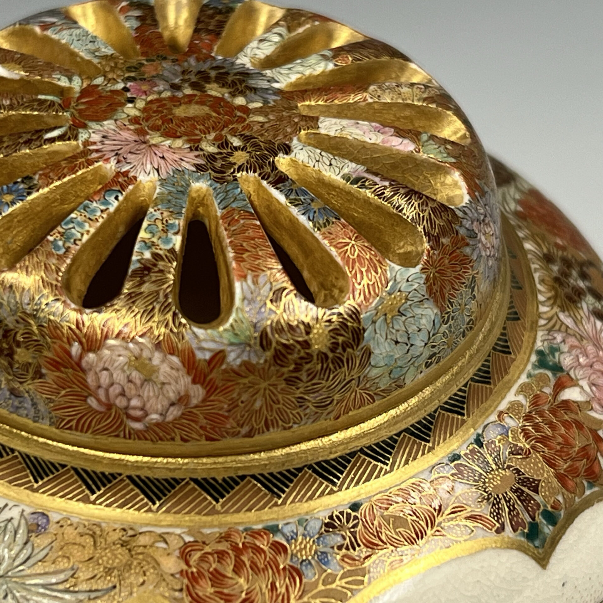 S057 藪明山造 菊花文風俗図香炉【SOLD】