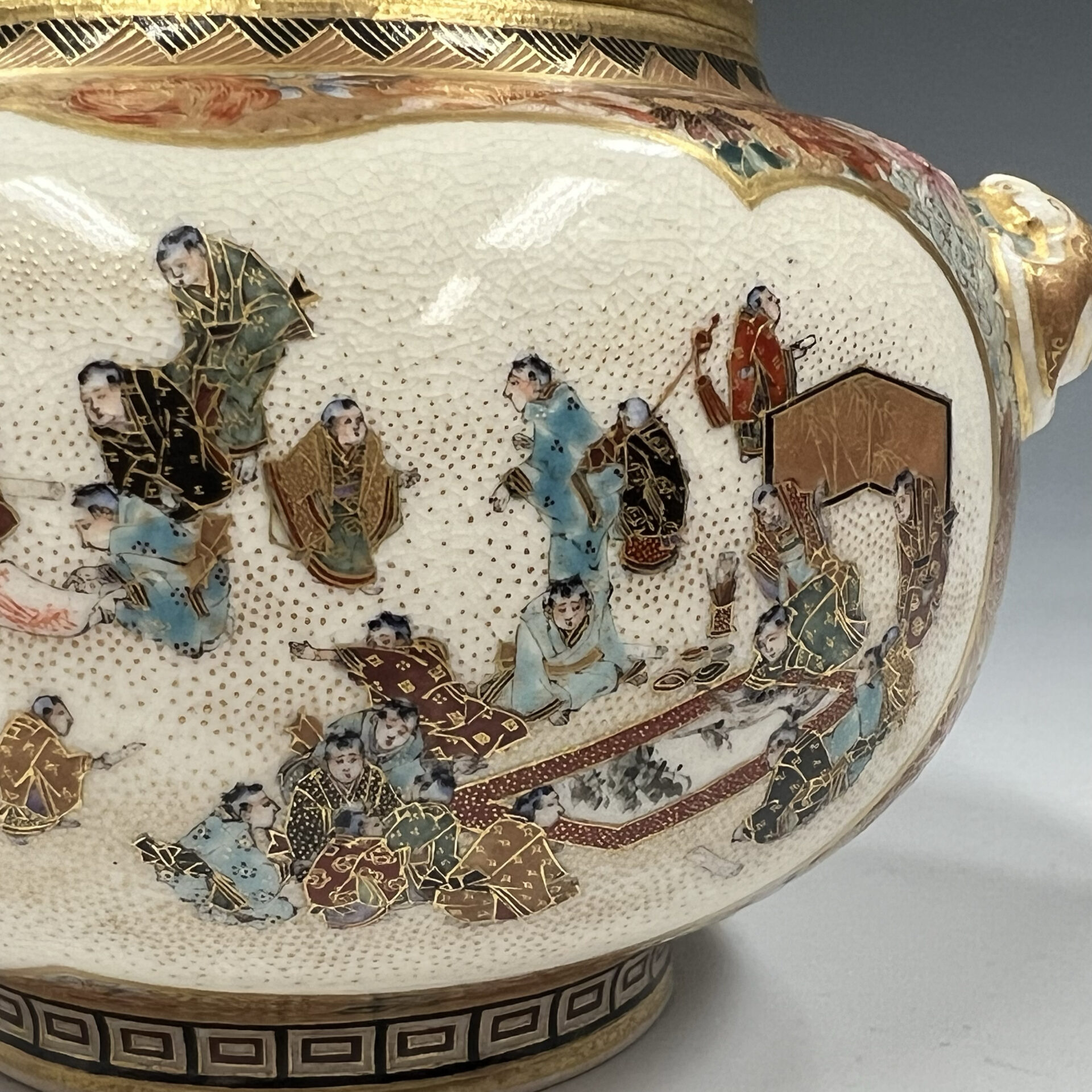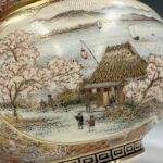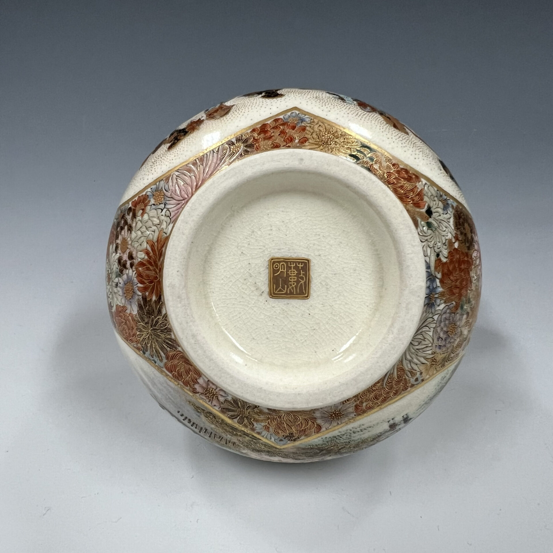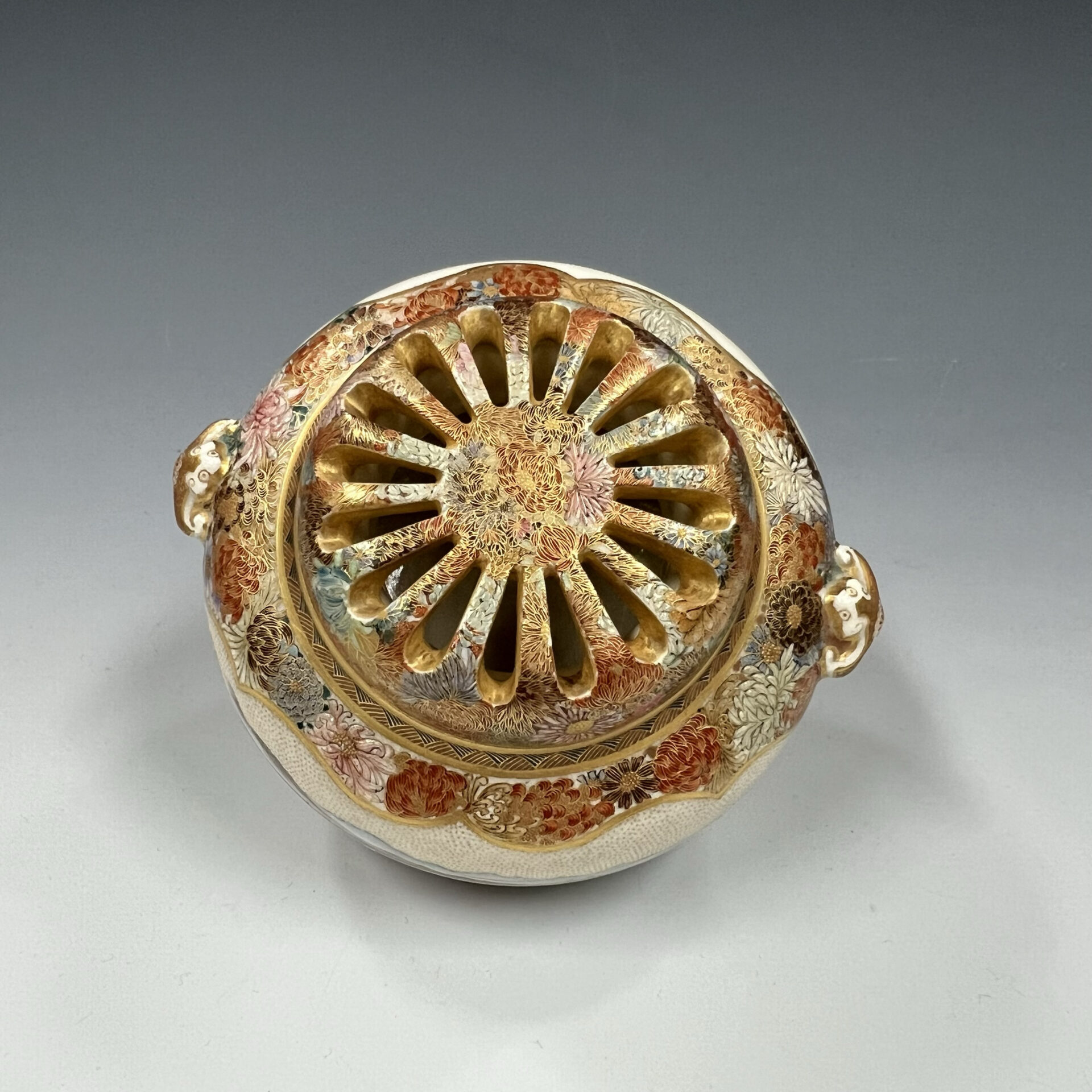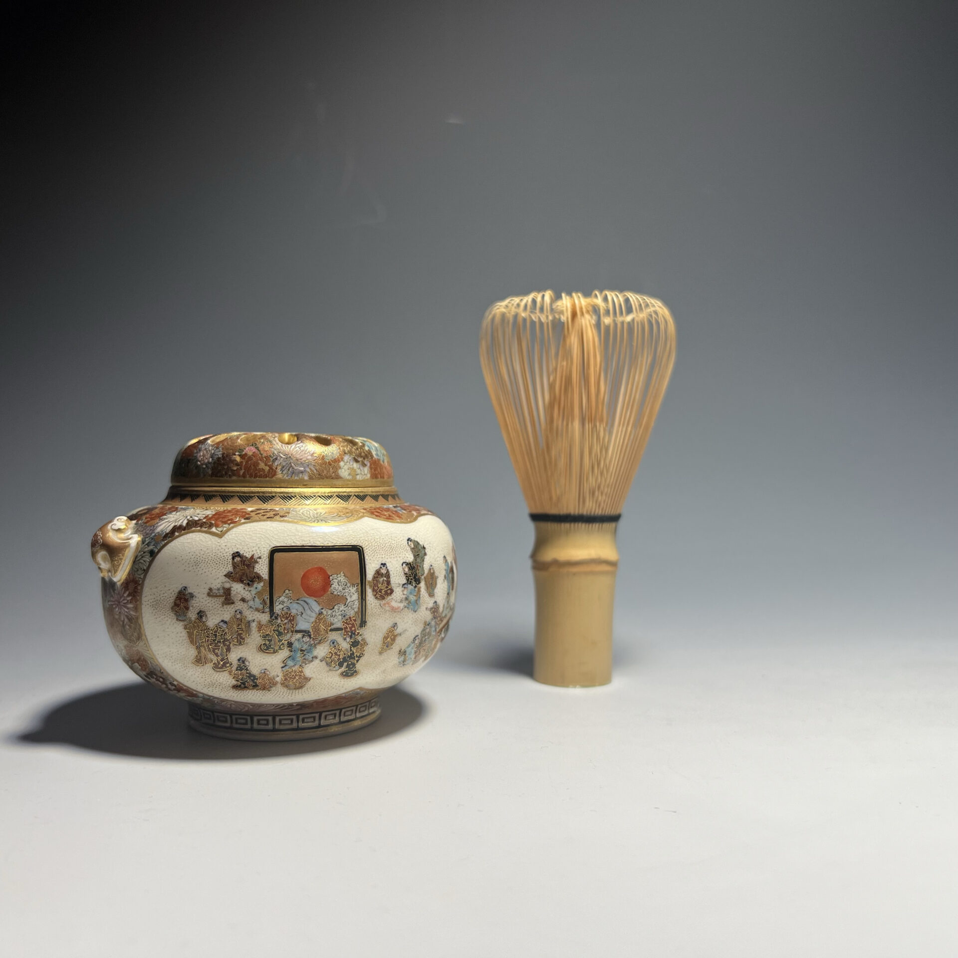 S057 藪明山造 菊花文風俗図香炉【SOLD】