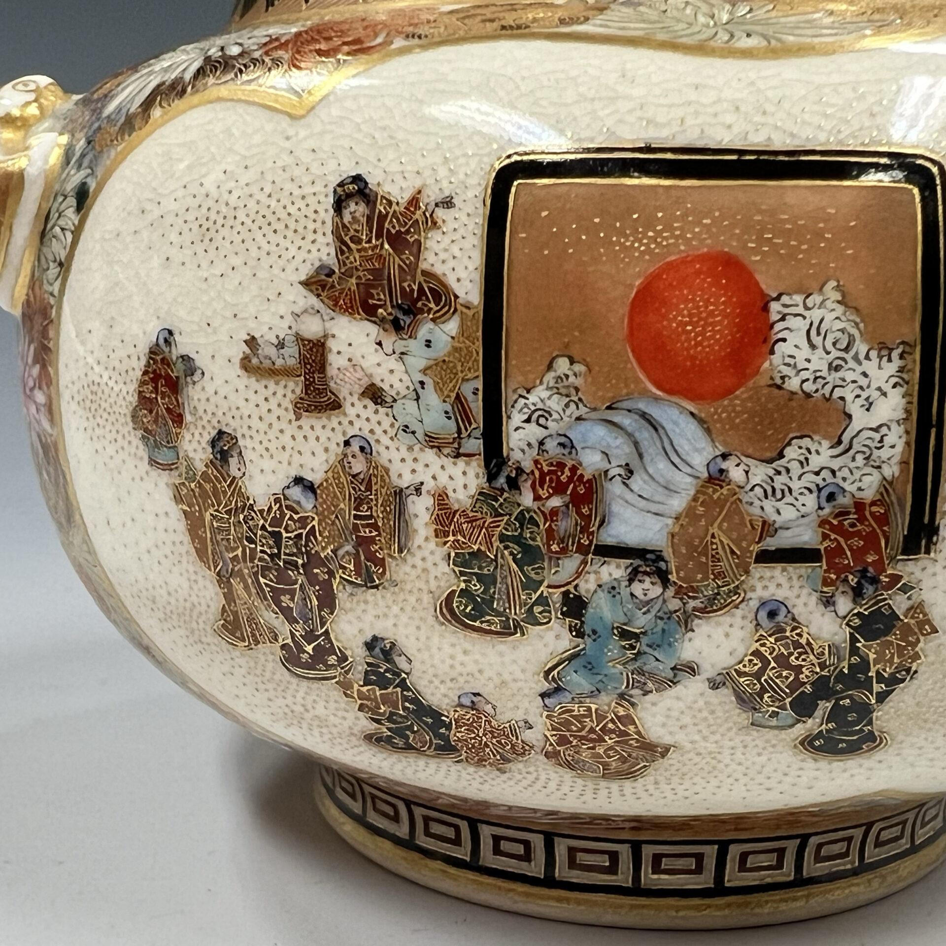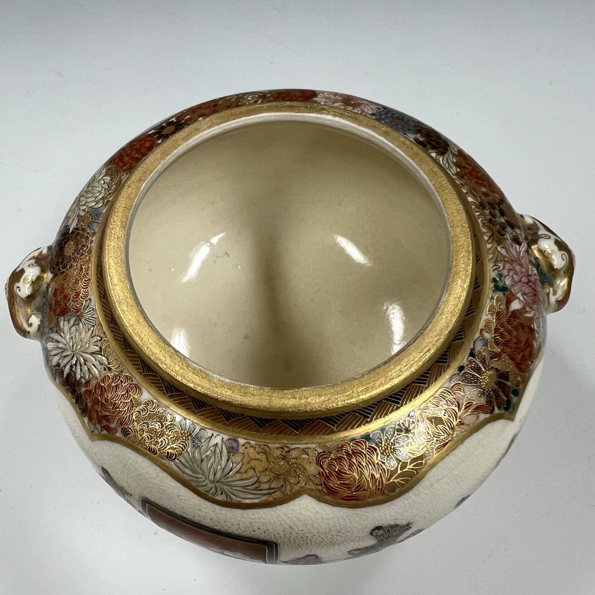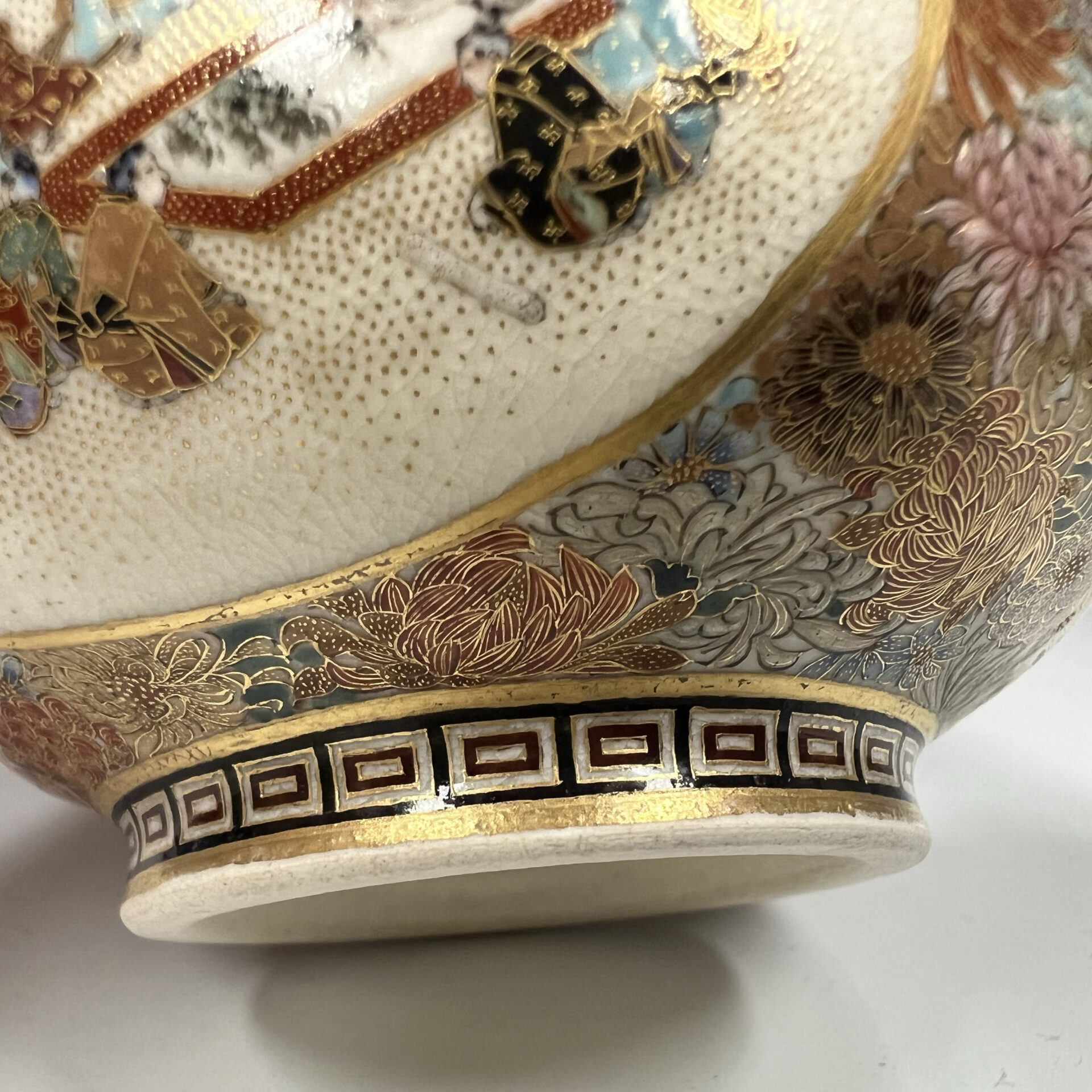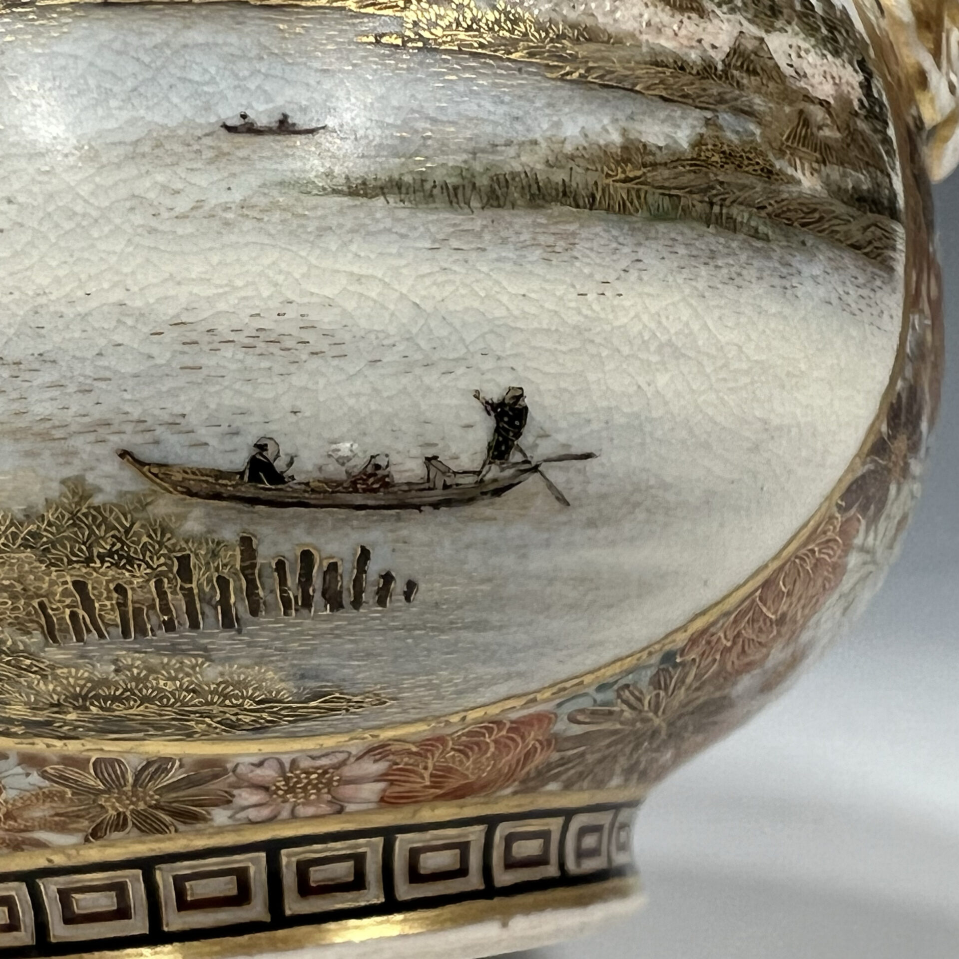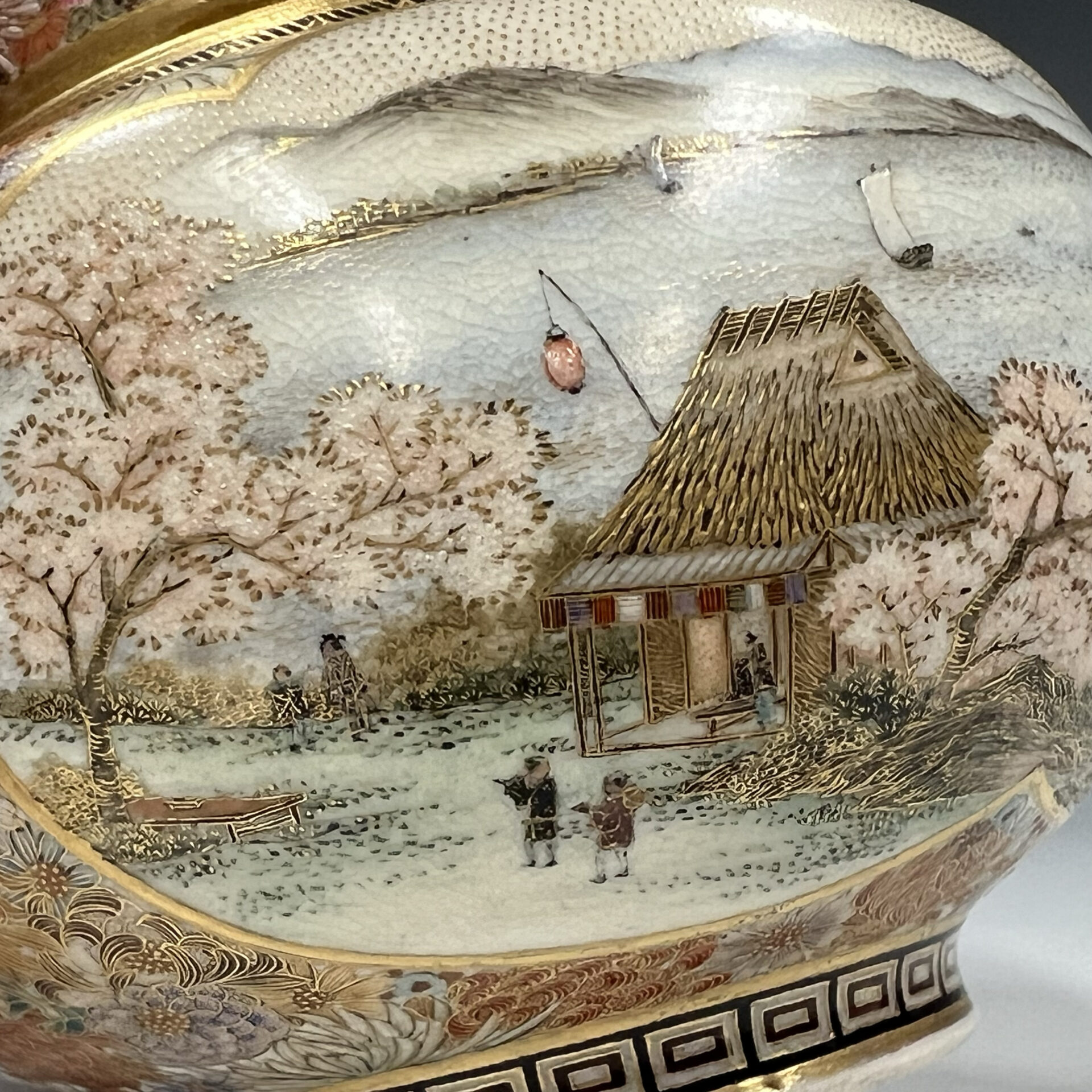S057 藪明山造 菊花文風俗図香炉【SOLD】