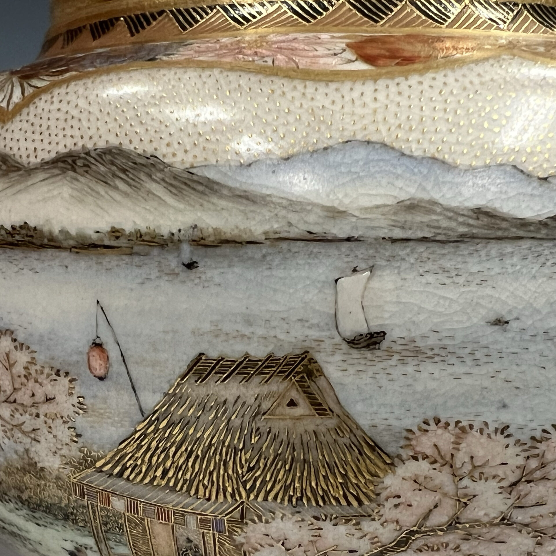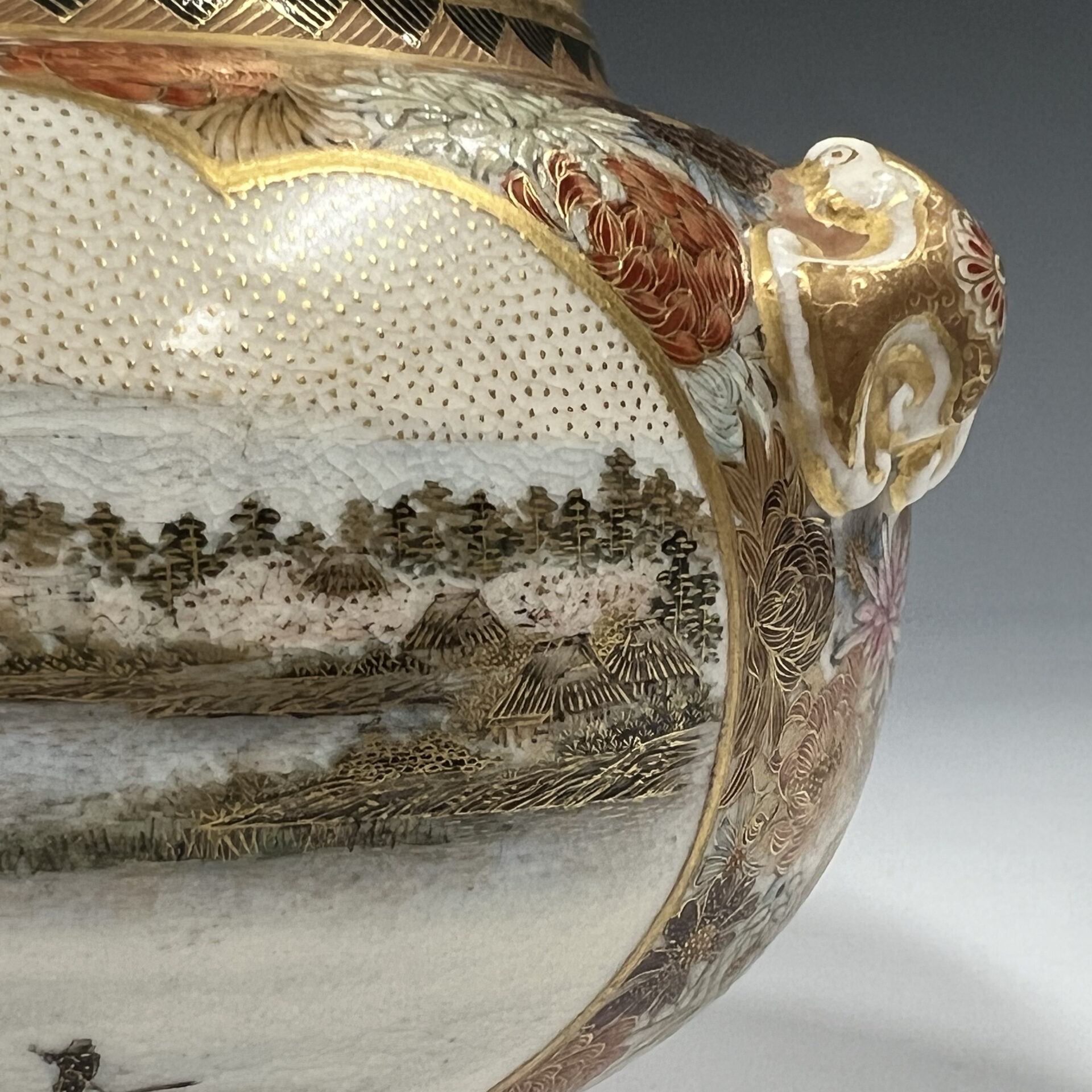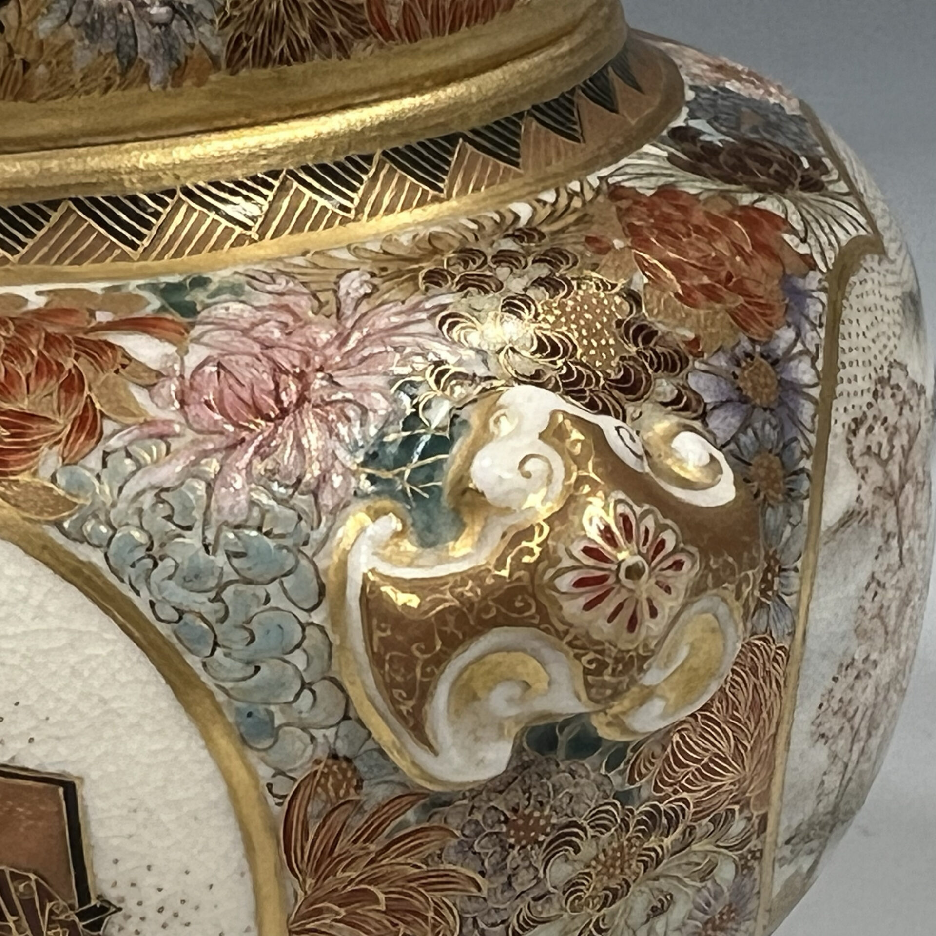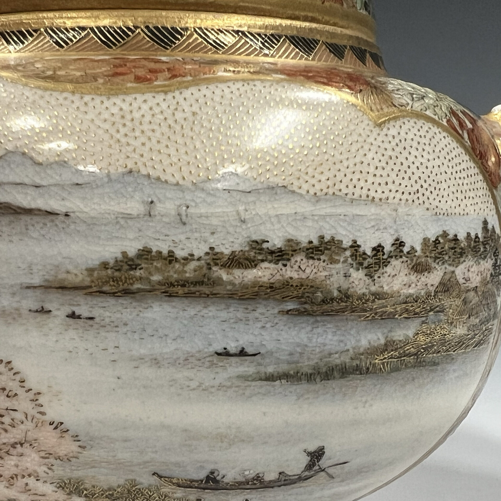 S057 藪明山造 菊花文風俗図香炉【SOLD】